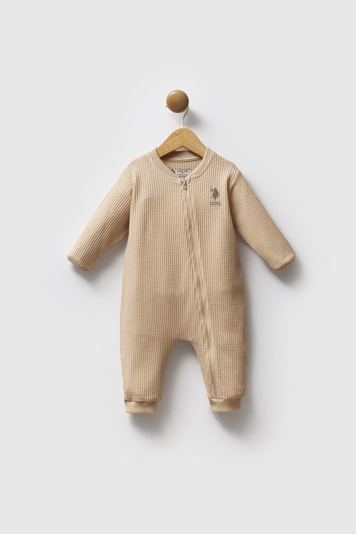 U.S. Polo Assn. Erkek Bebek Patikli Tulum %100 Pamuk İnterlok Örme Fermuarlı Yenidoğan Bebek Tulum
