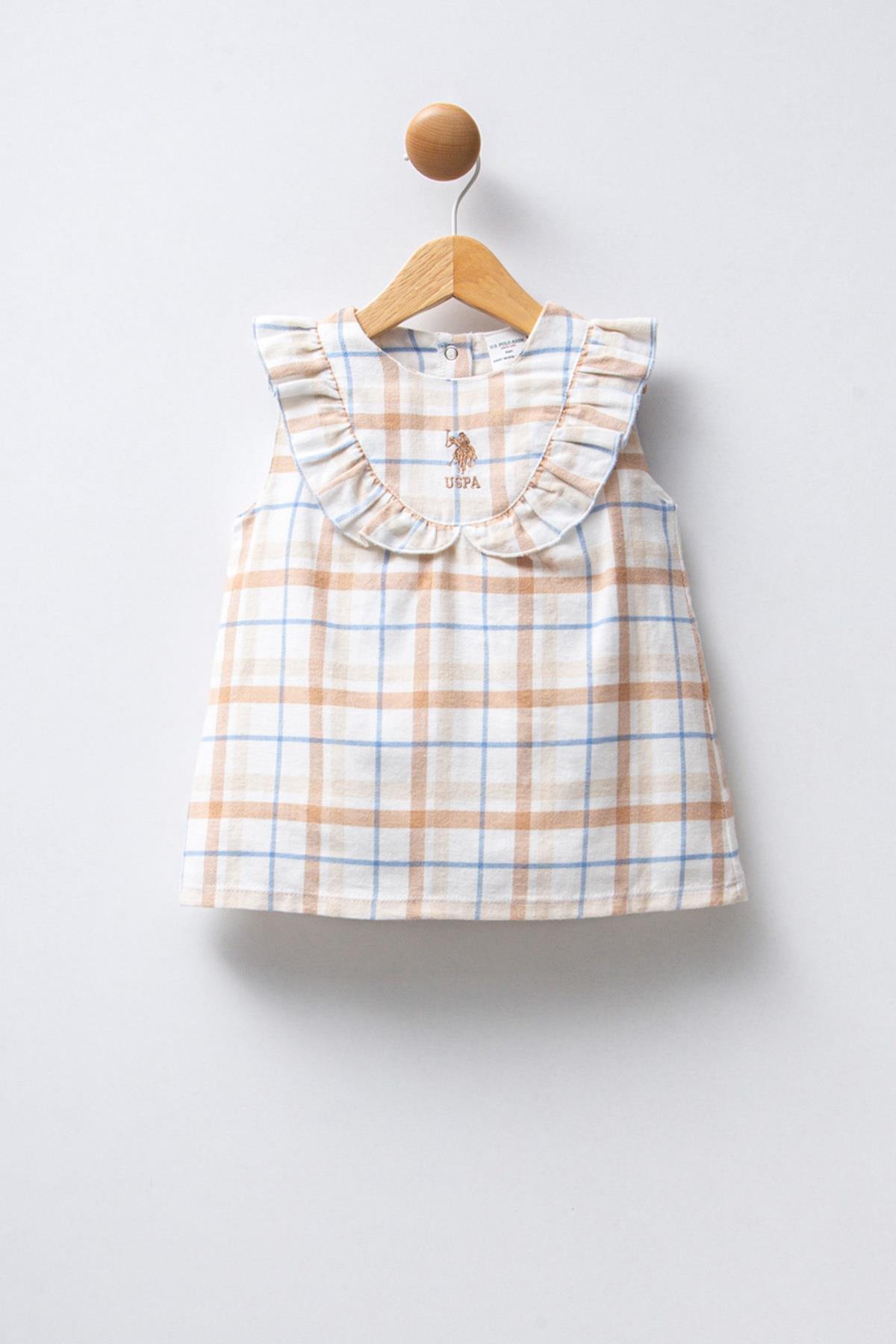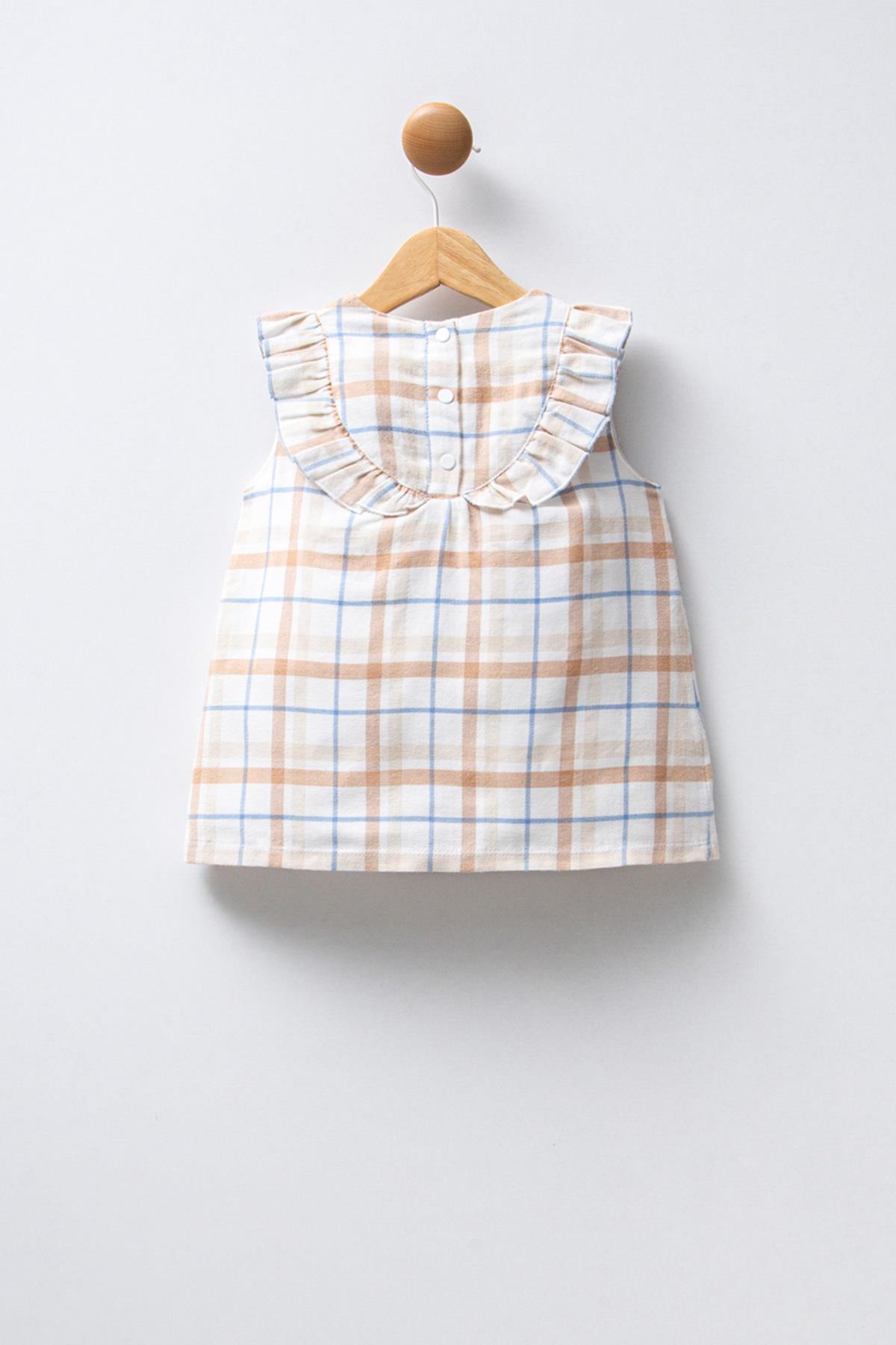 %100 Pamuk Dokuma Kız Bebek Ekoseli Elbise