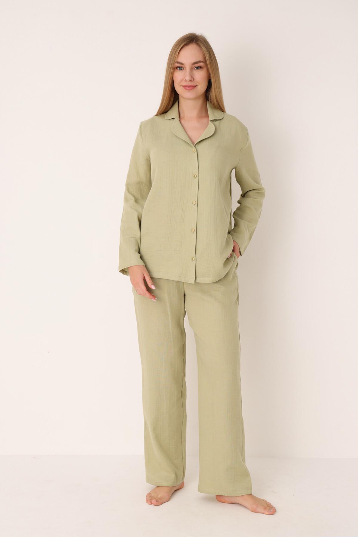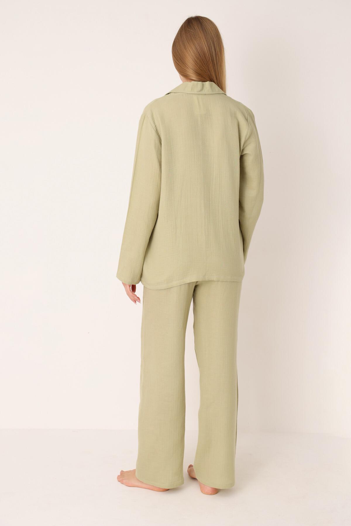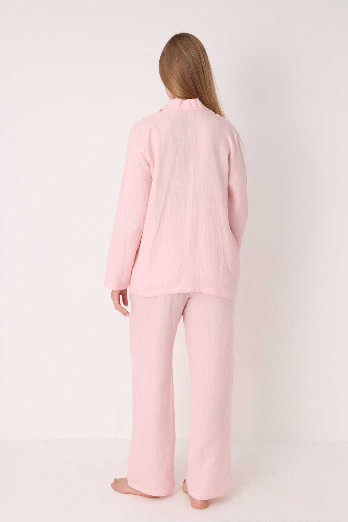%100 Pamuk, Müslin Dokuma, Önden Düğmeli, Gömlek Yakalı Kadın Pijama Takım
