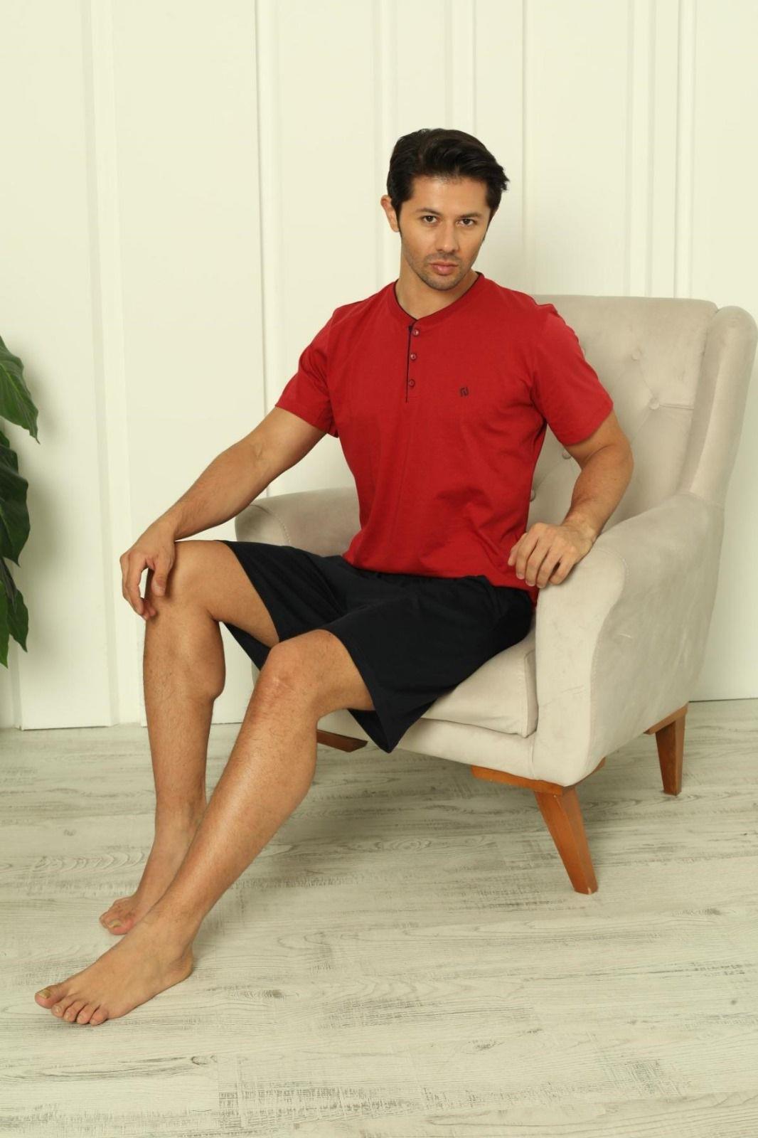 %100 Pamuk Penye 3'lü Erkek Pijama Takımı, Kısakollu, Pantolonu ve şortu cepli Erkek pijama takım
