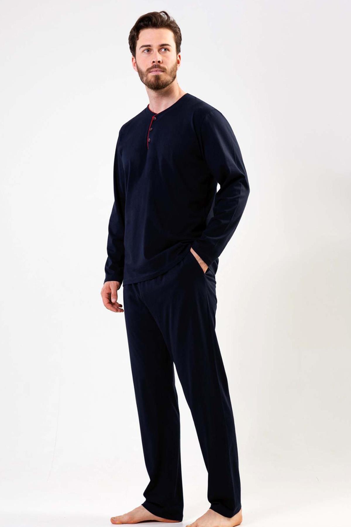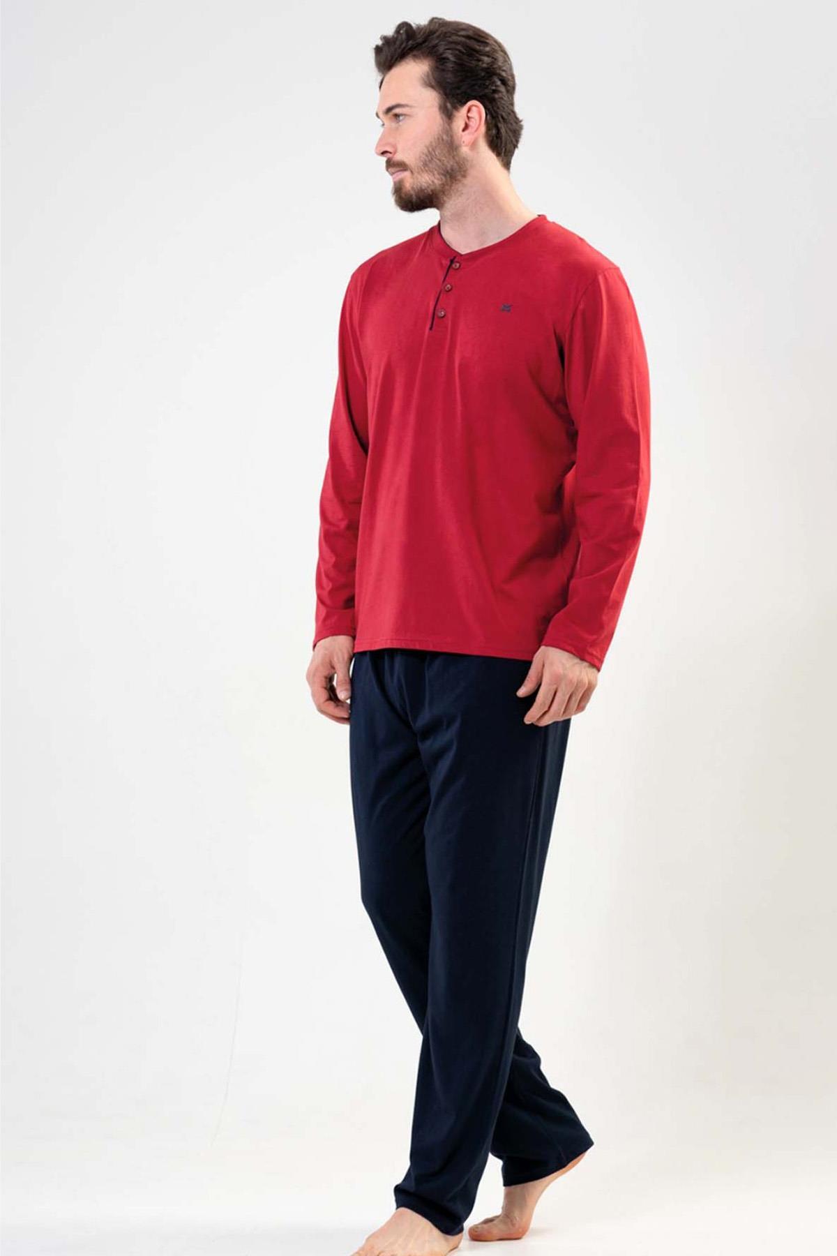 %100 Pamuk Yuvarlak Yaka Düğmeli Çeyizlik Mevsimlik Erkek Pijama Takım