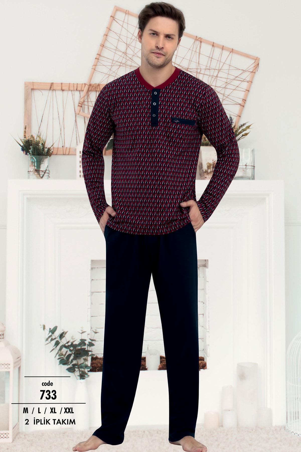 %100 Pamuklu Erkek Pijama Takım, Uzunkol 2 İplik dokuma