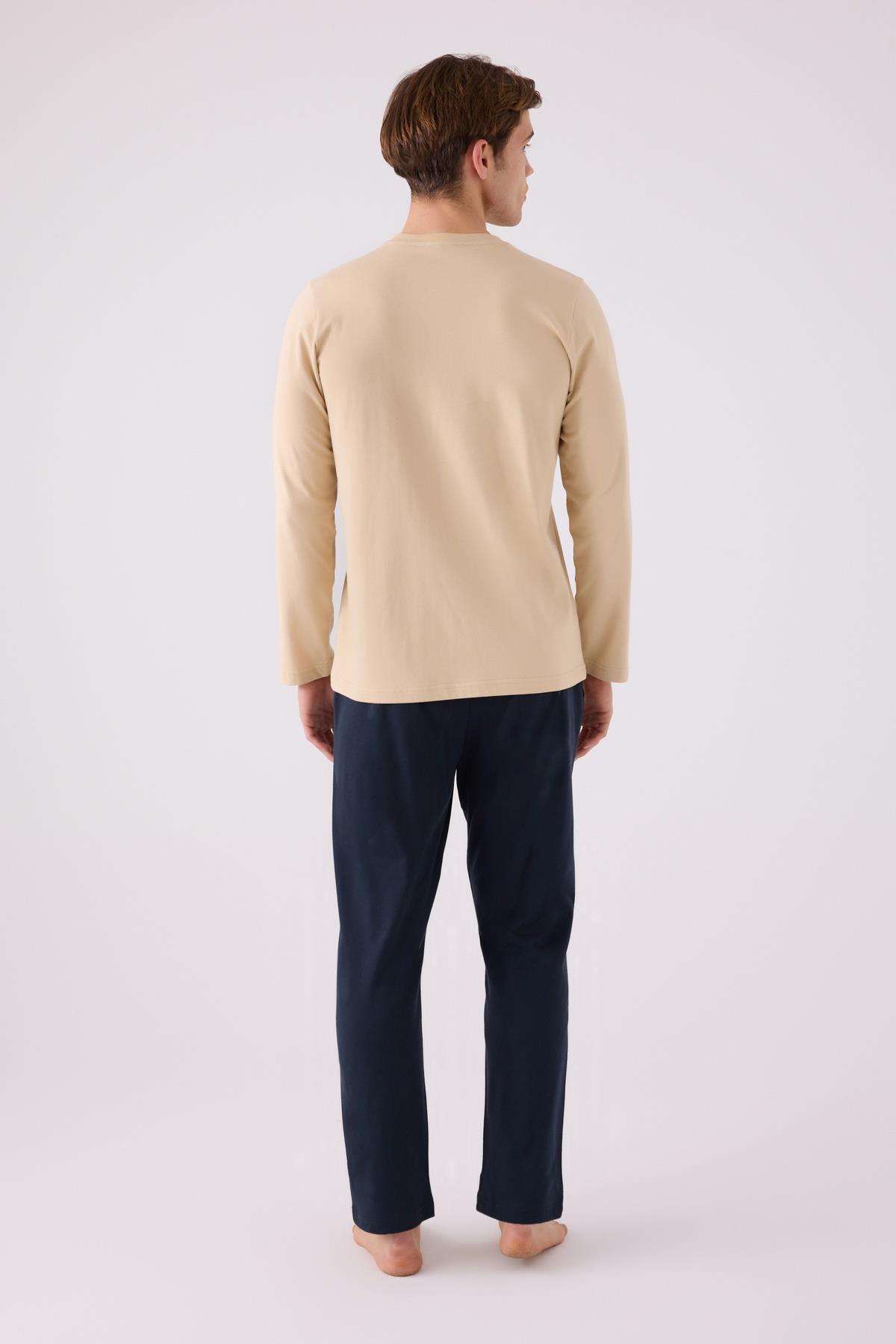 %100 Pamuklu Kışlık Erkek Pijama Takım, Cep Detaylı