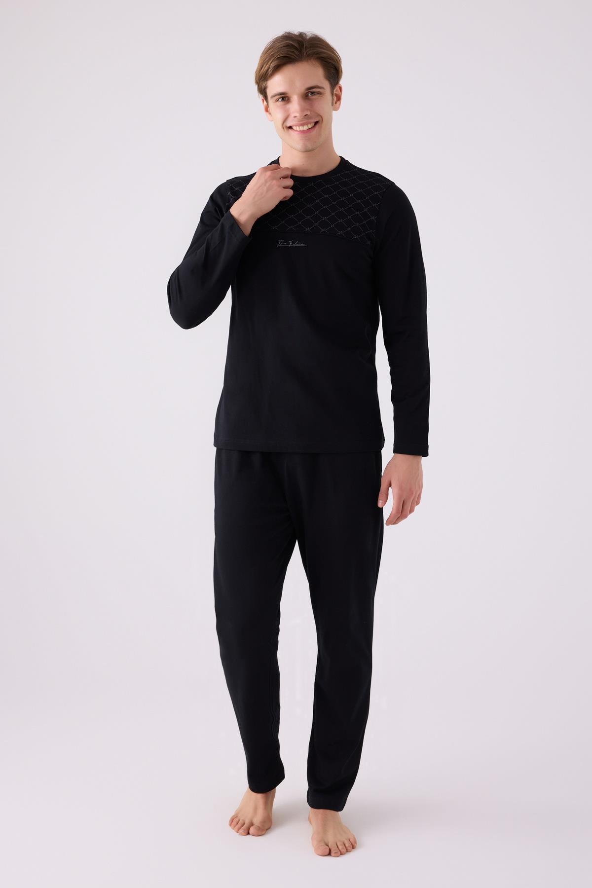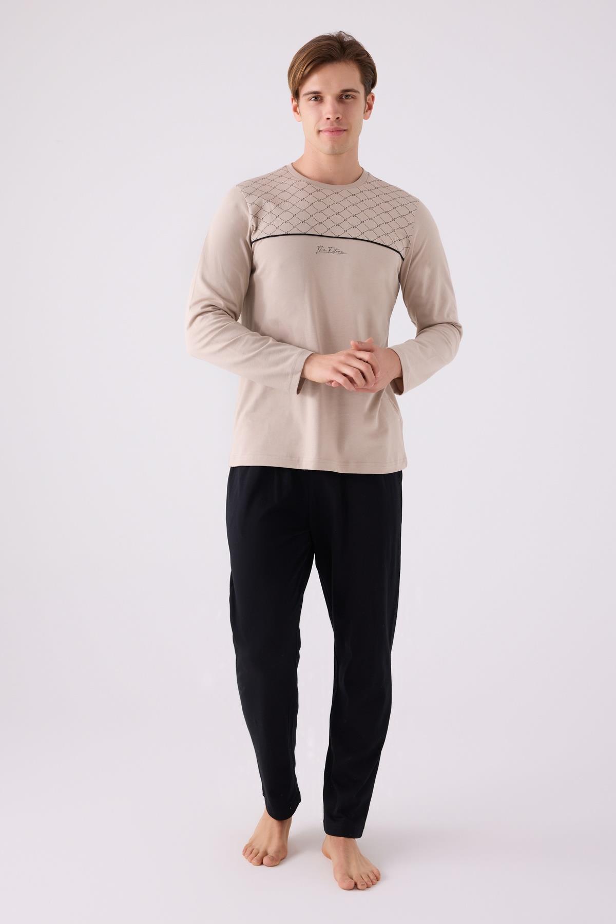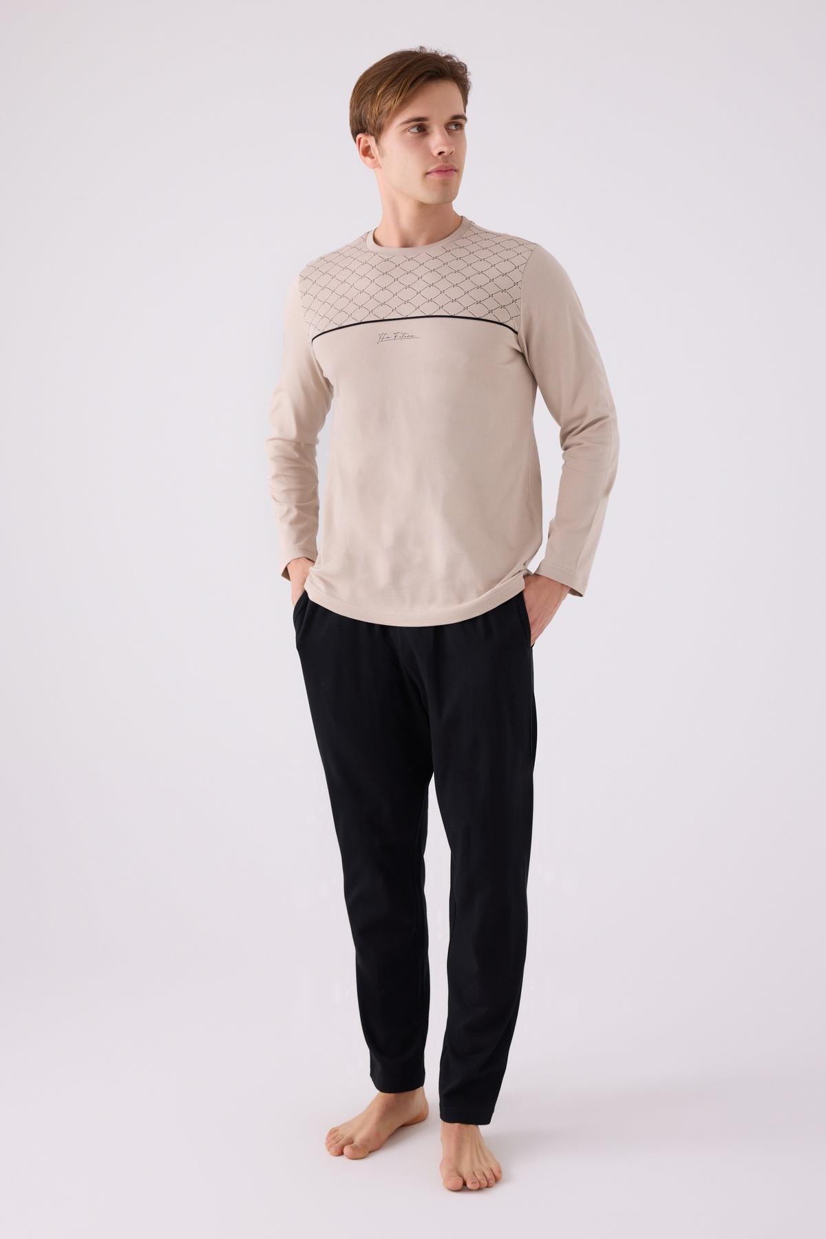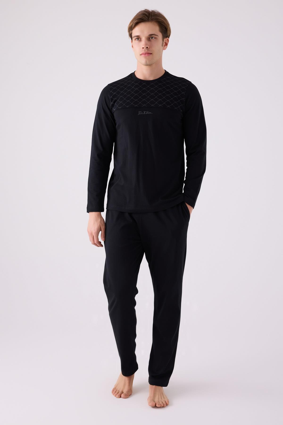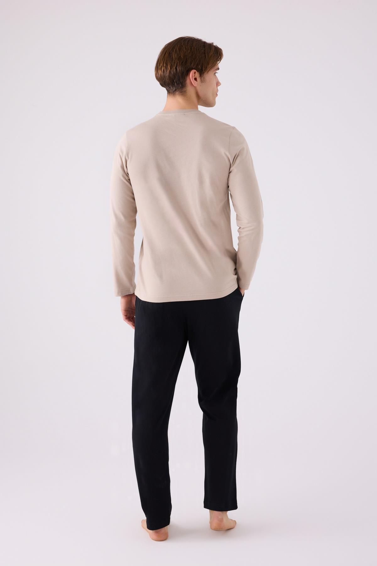 %100 Pamuklu Kışlık Erkek Pijama Takım, İçi Şardonlu, Uzunkol ve Cepli
