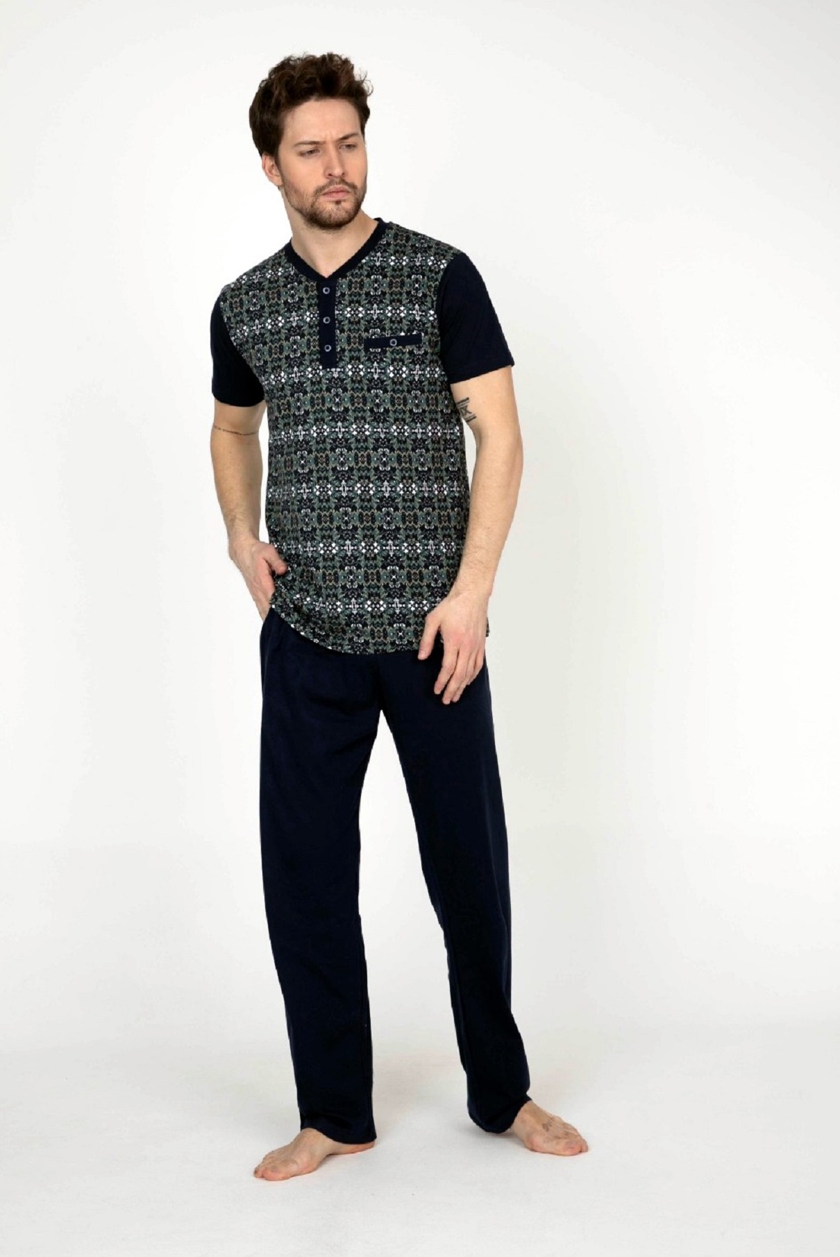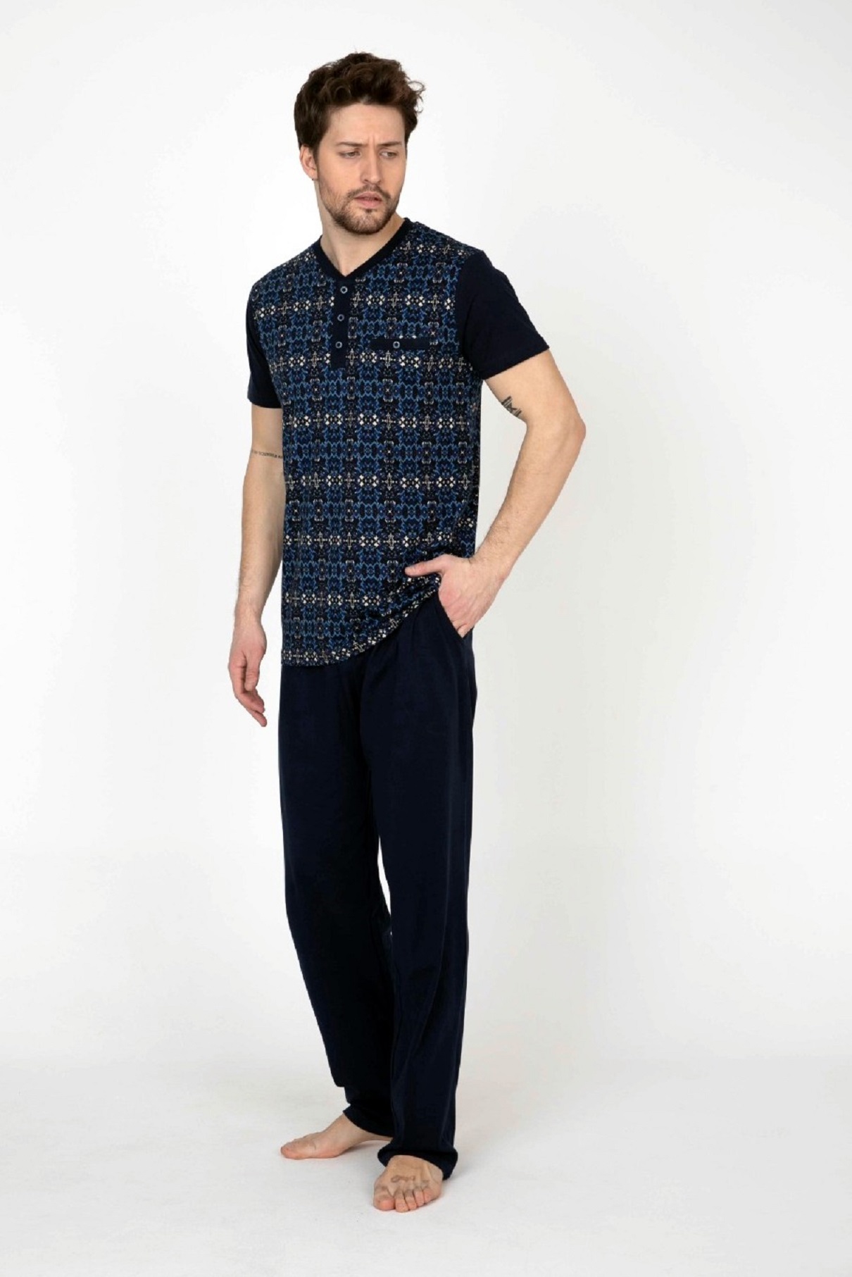 Erse, %100 Pamuklu, Süprem Penye Dokuma, Yakası Düğmeli, Kısa Kollu, Büyük Beden Erkek Pijama Takımı 1022