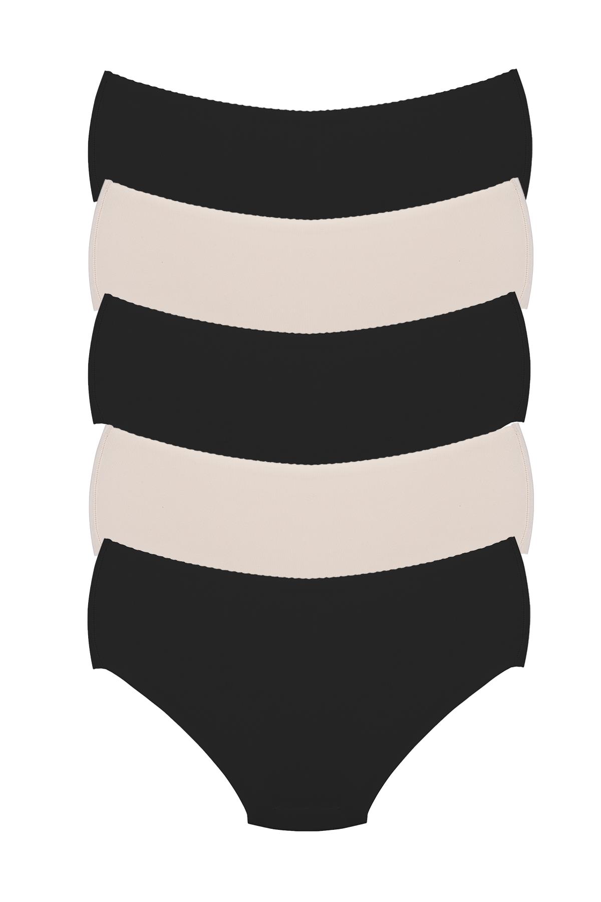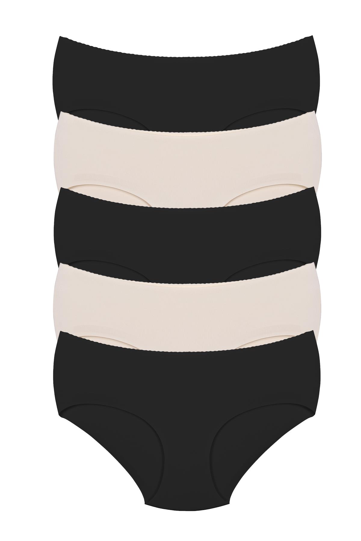 5 adet Karışık Renk İz Yapmayan Dikişsiz Lazer Kesim Görünmez Külot, Pamuklu Ağ,(3 siyah 2 ten)
