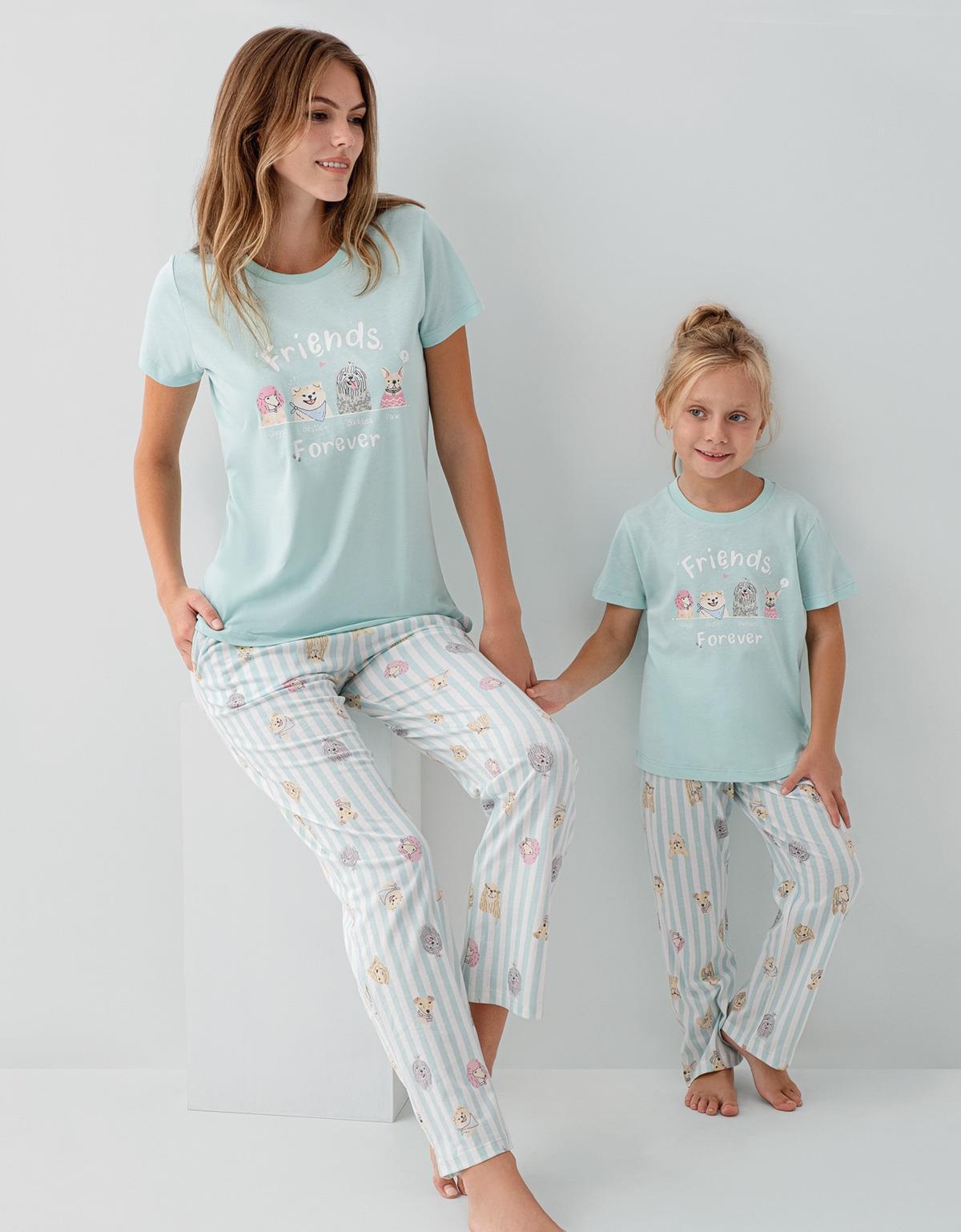 Anne Kız Pijama (Ayrı Ayrı Satılır) Takımı %100 Pamuk – Kısa Kollu Kombin