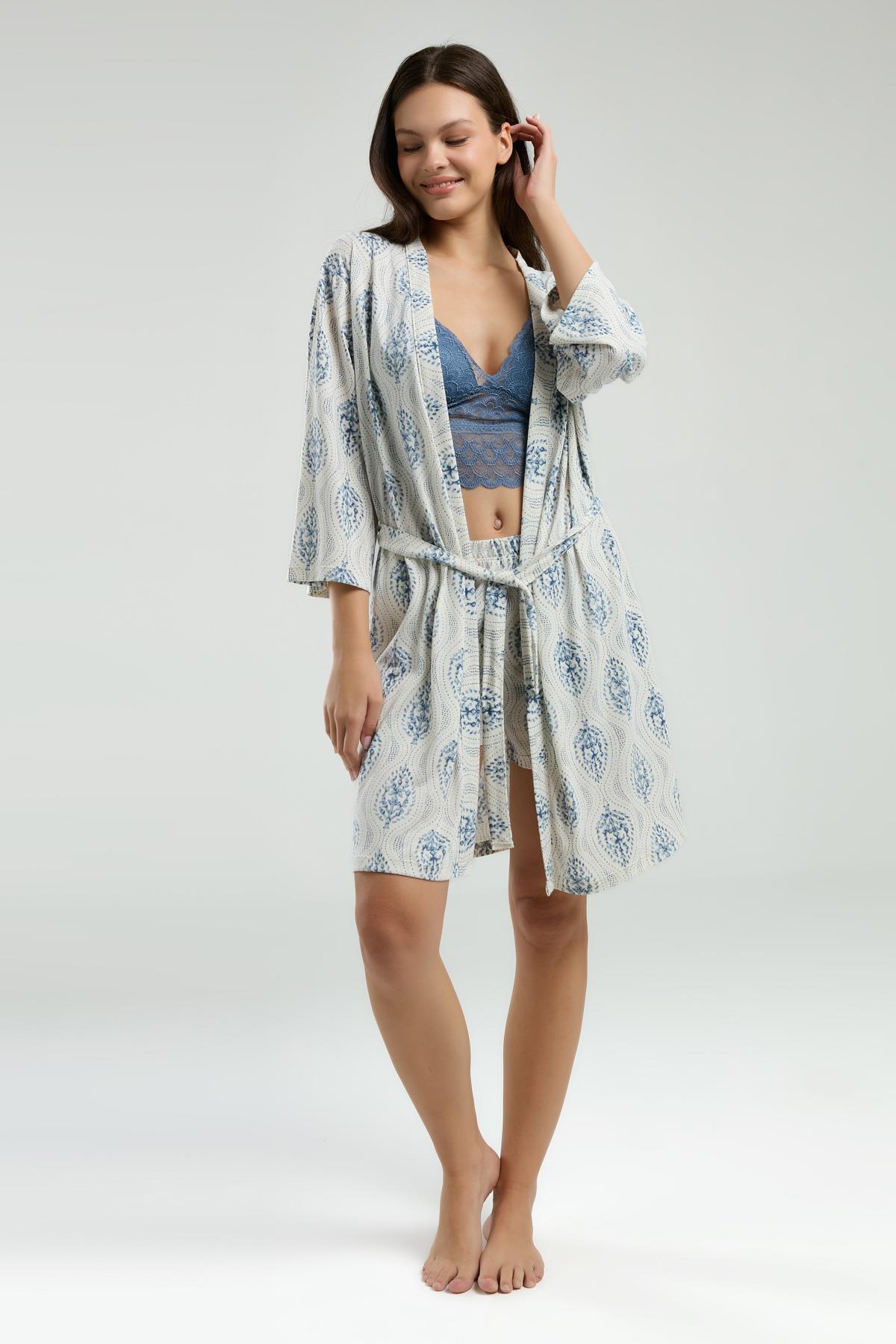 Arnetta 3'lü Ev Giyim, Sabahlık, Dantelli Bralet, Şort Set