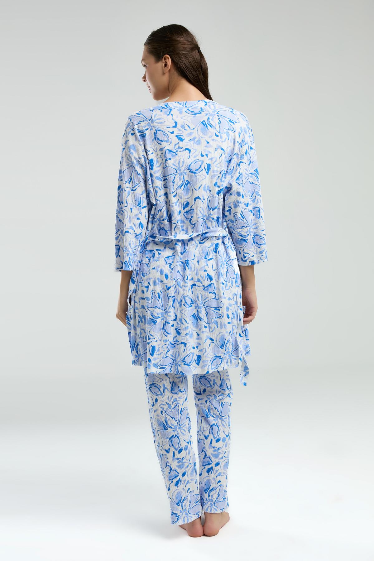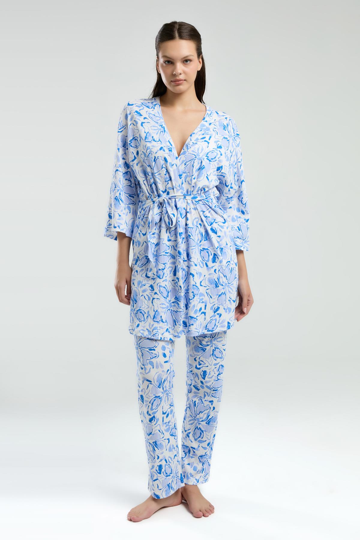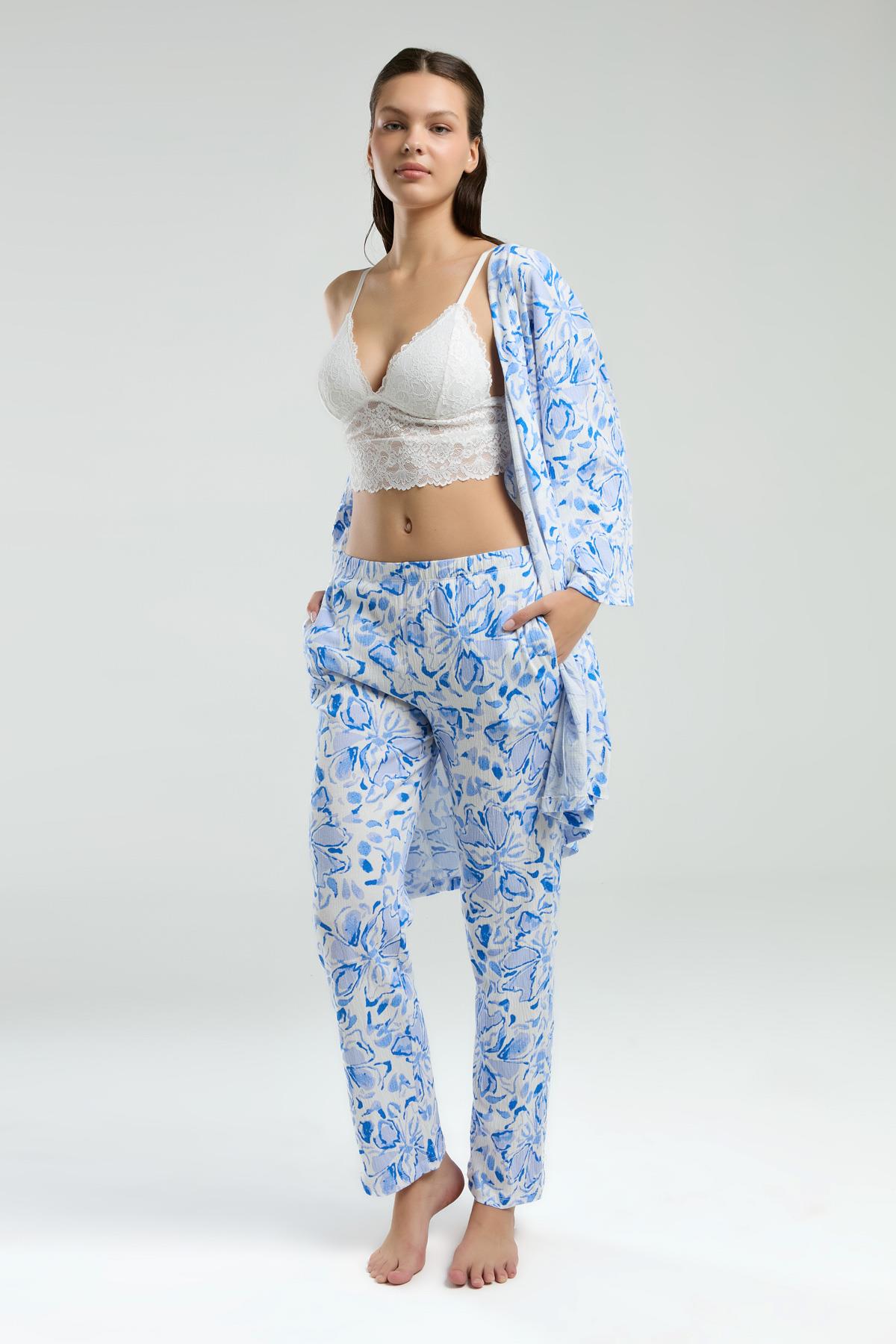 Arnetta 3'lü Takım, Sabahlık, Dantelli Bralet, Cepli Alt Pijama