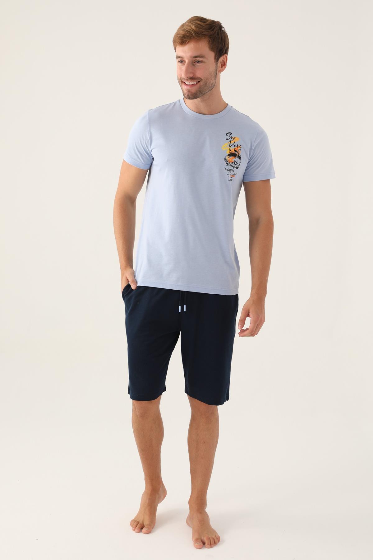 Pierre Cardin Erkek Şort Pijama Takımı %100 Pamuk Baskılı Tişört – Yazlık Rahat Kesim