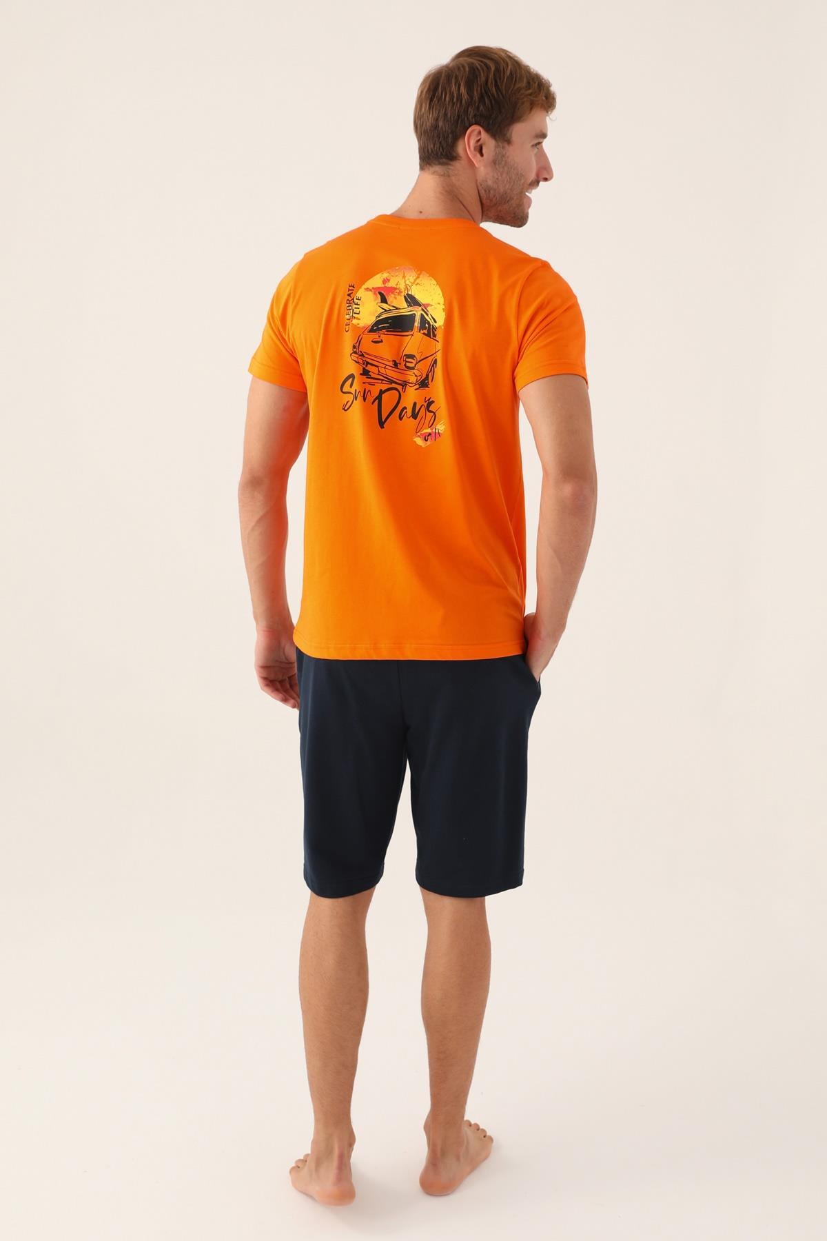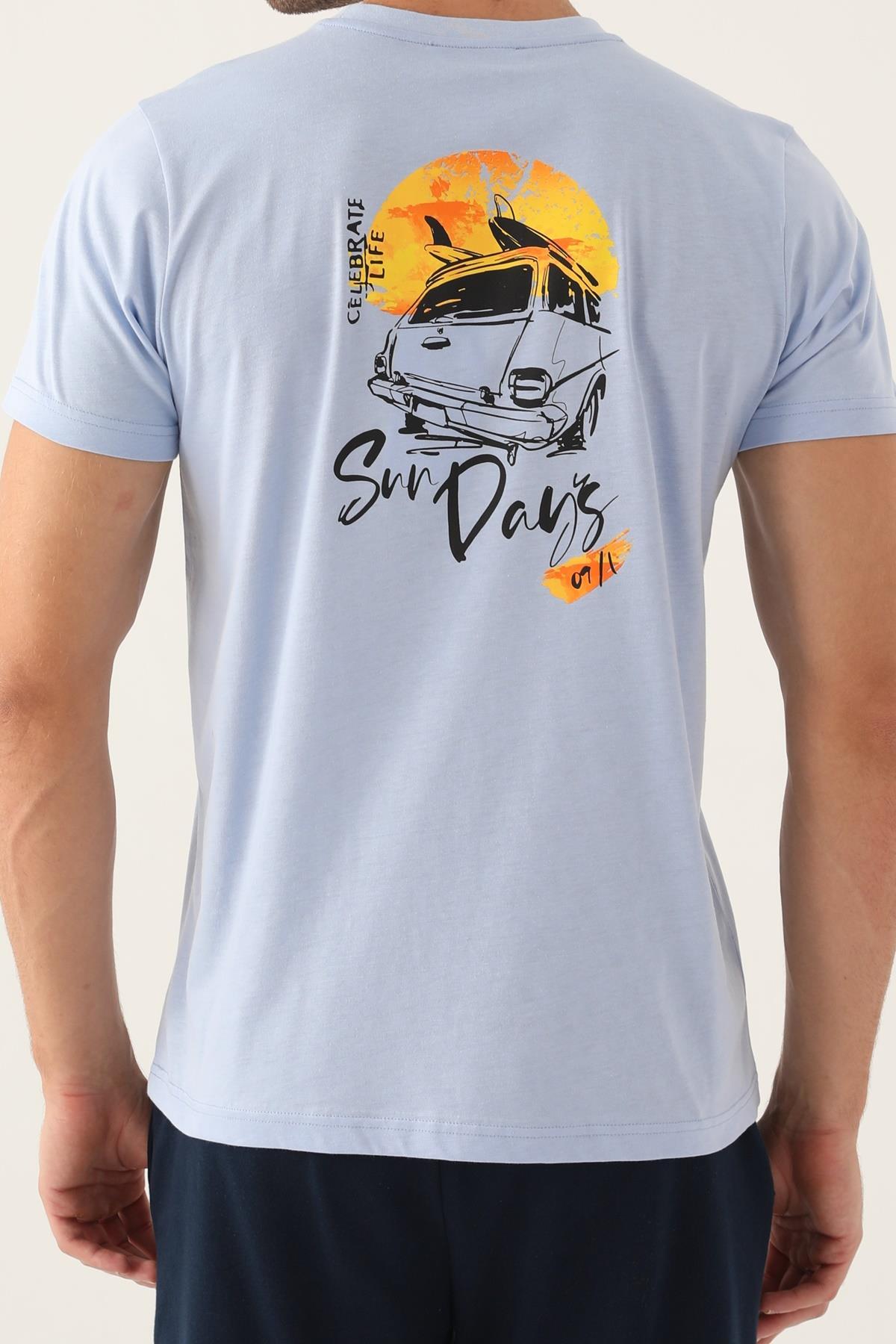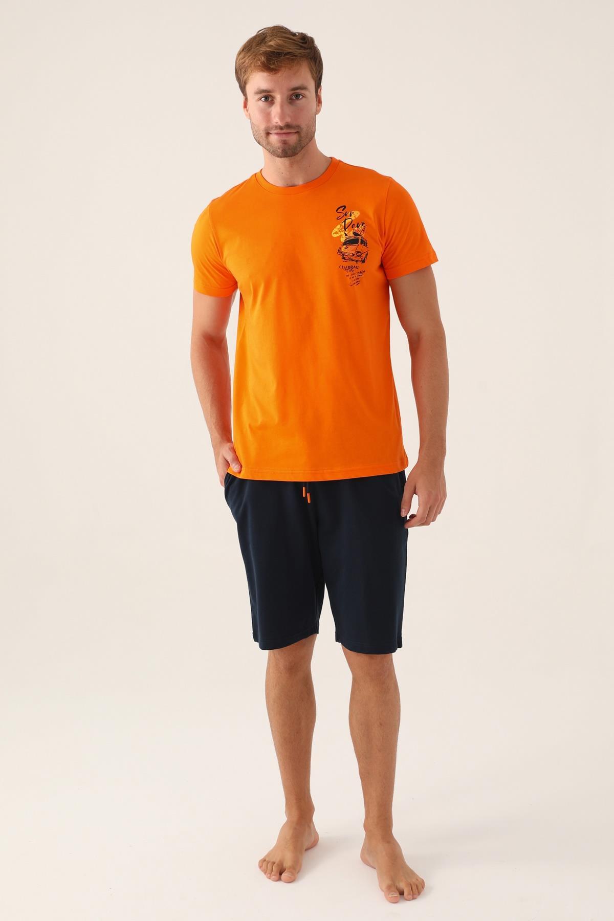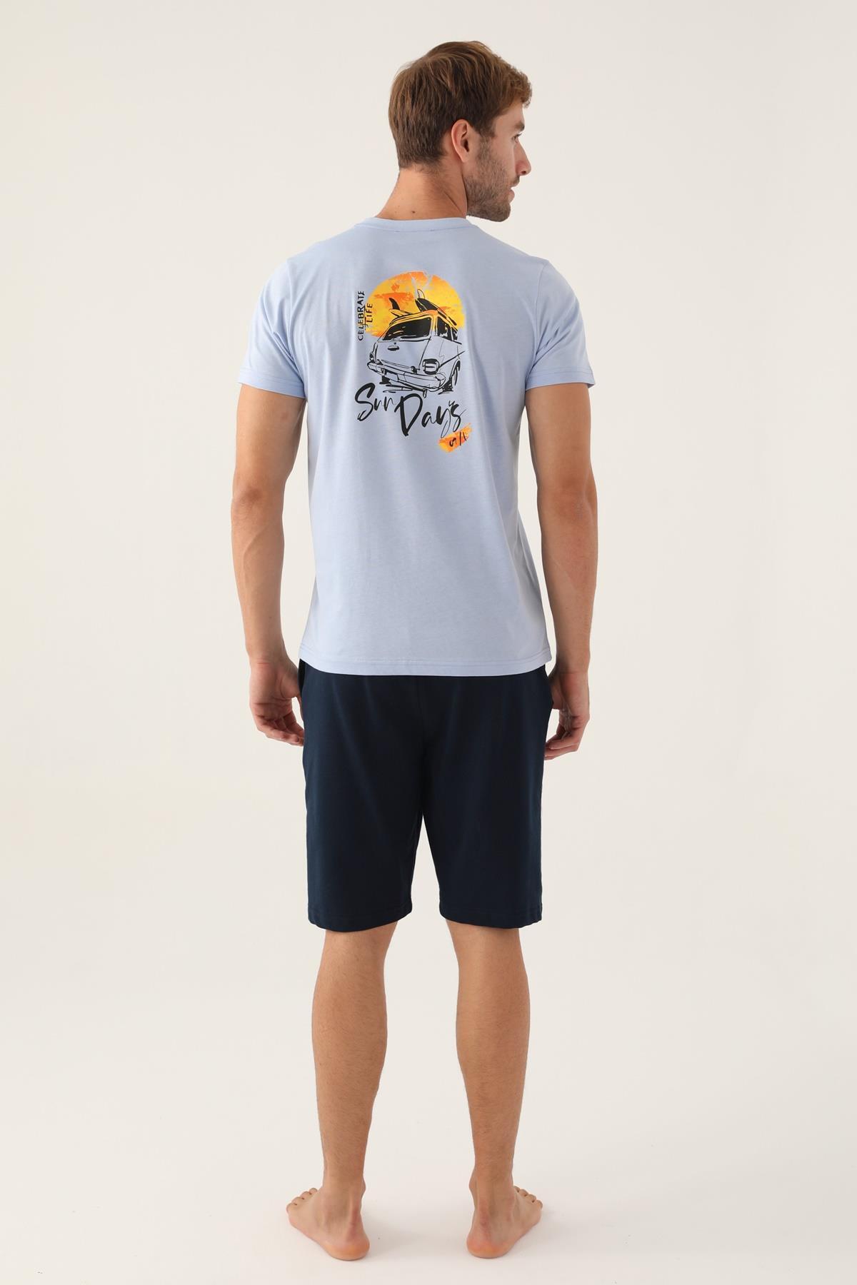 Erkek %100 Pamuk Şort Takımı – Kısa Kollu T-Shirt & Desenli Şort | Dış Giyime Uygun