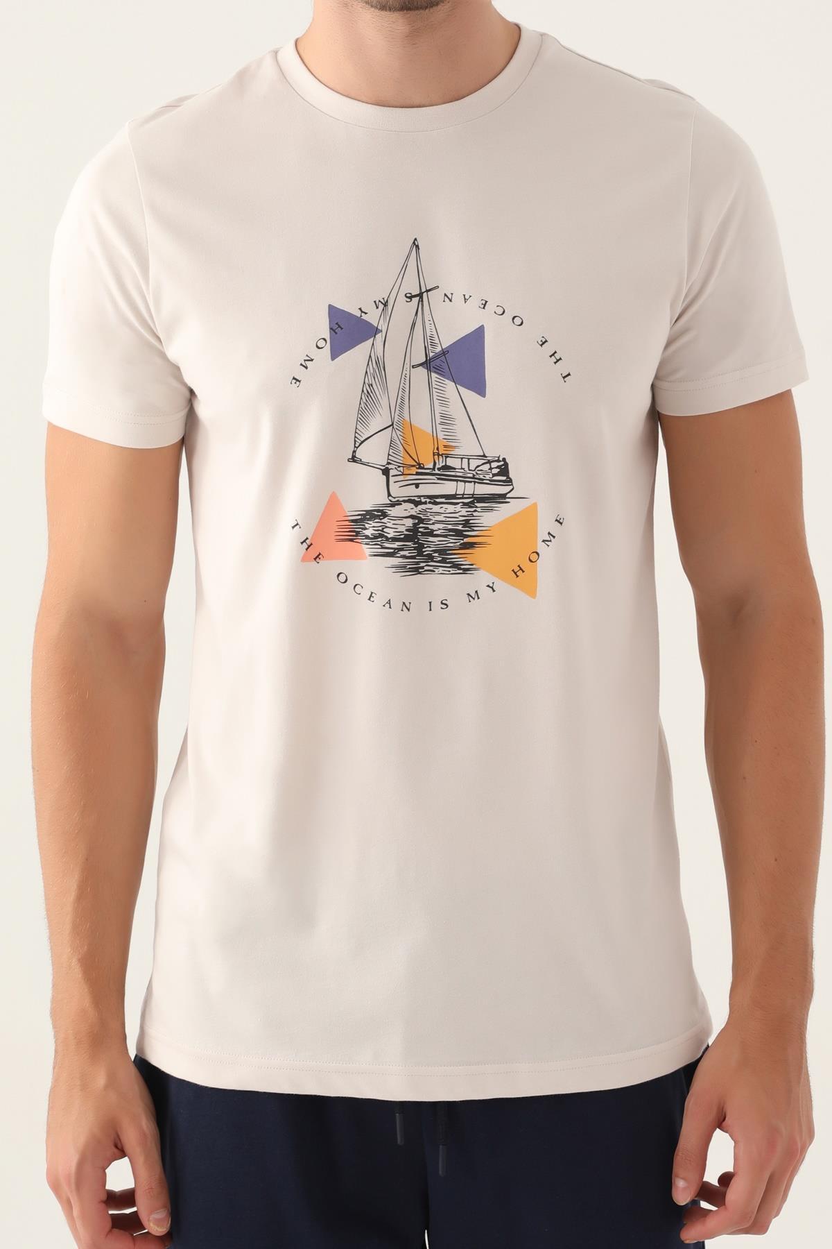 Erkek %100 Pamuk Şort Takımı – Kısa Kollu T-Shirt & Desenli Şort | Dış Giyime Uygun