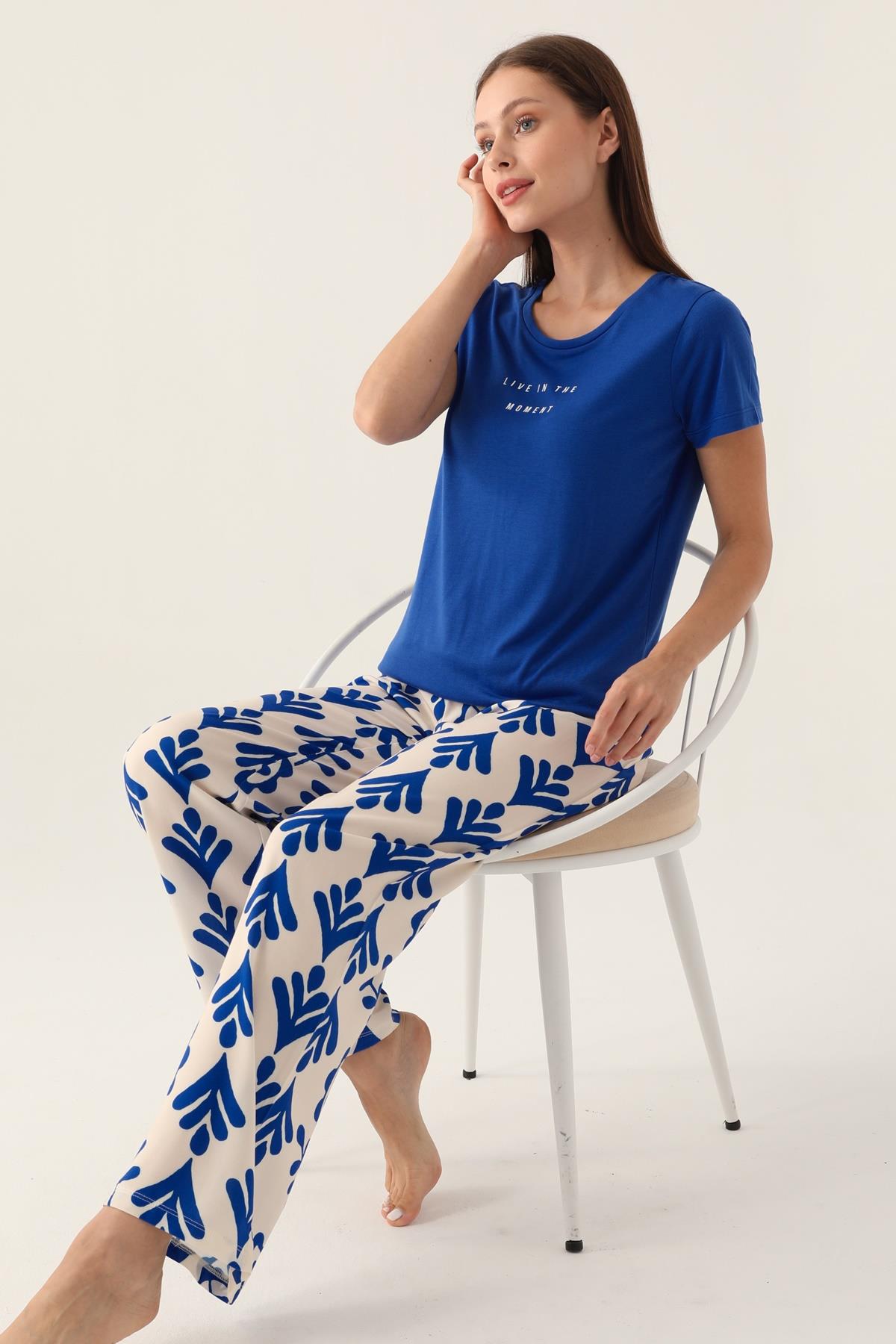 Arnetta Bisiklet Yaka Cepli Yazlık Kadın Pijama Takımı, %100 Pamuk