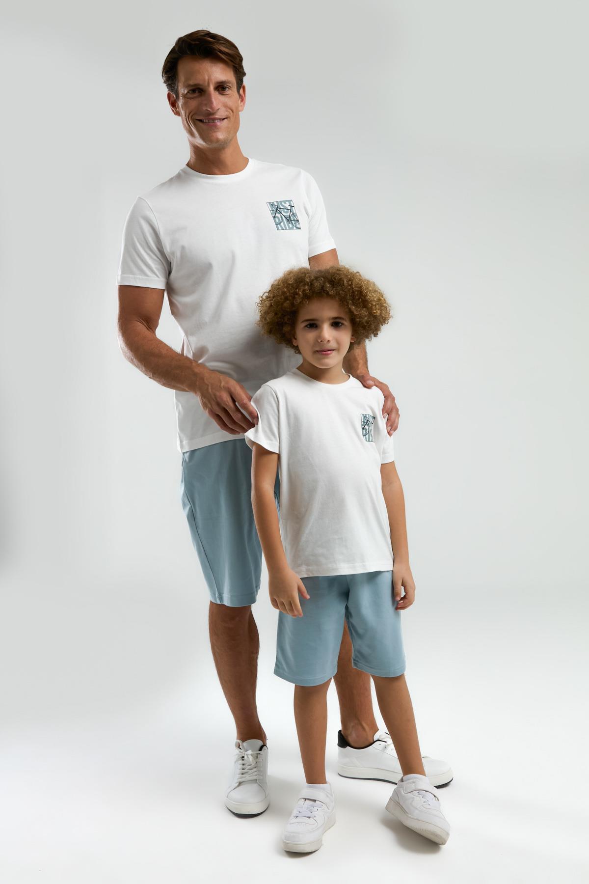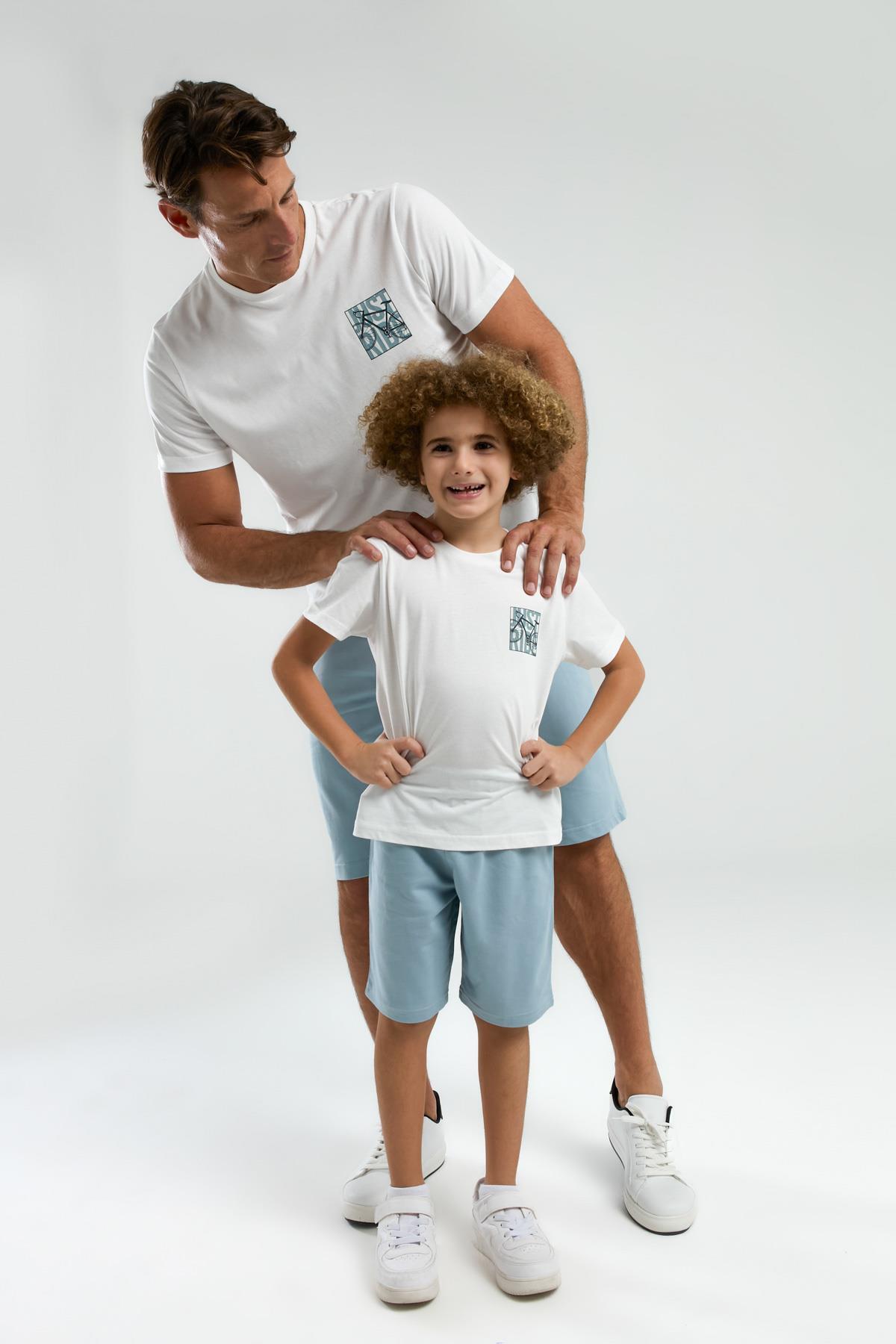 Beyaz Erkek & Çocuk Şort Takımlar Ayrı Ayrı Satılır | %100 Pamuk Baba Oğul Yazlık Takım Kombin