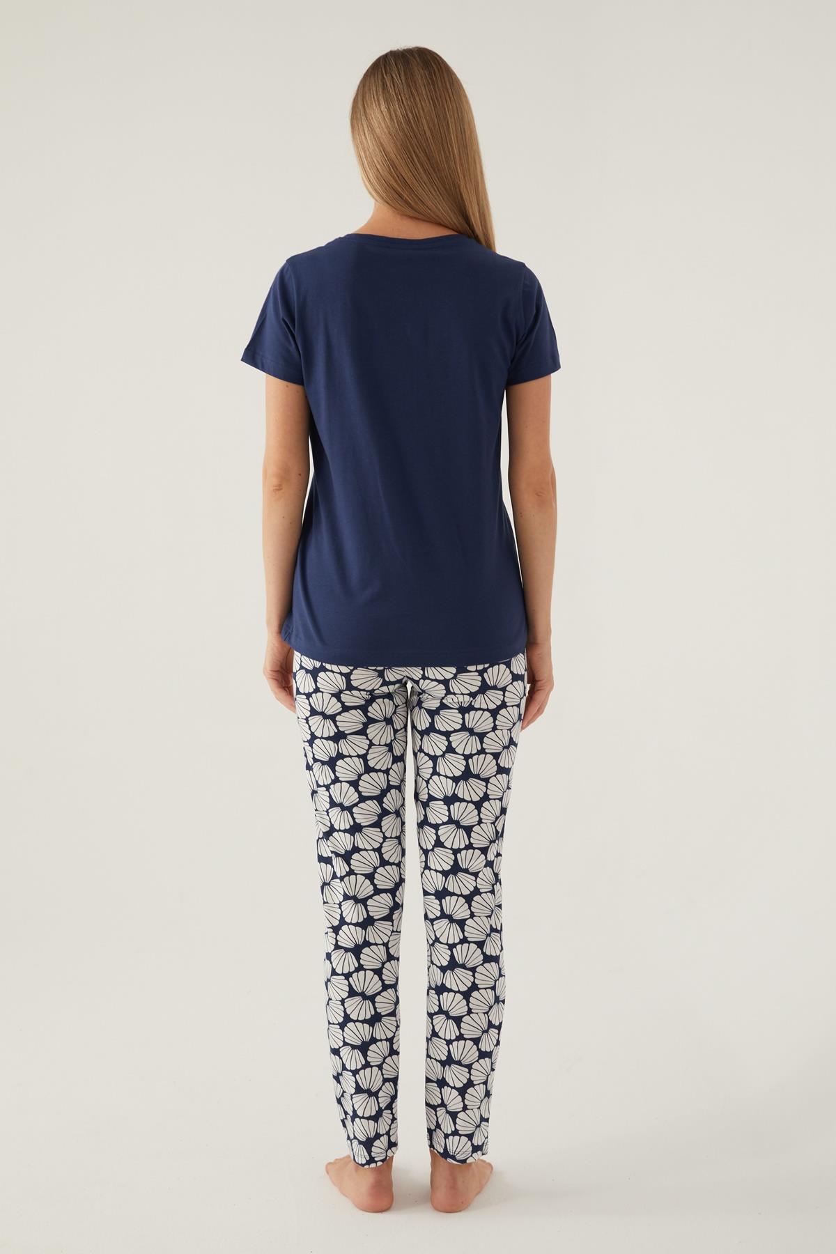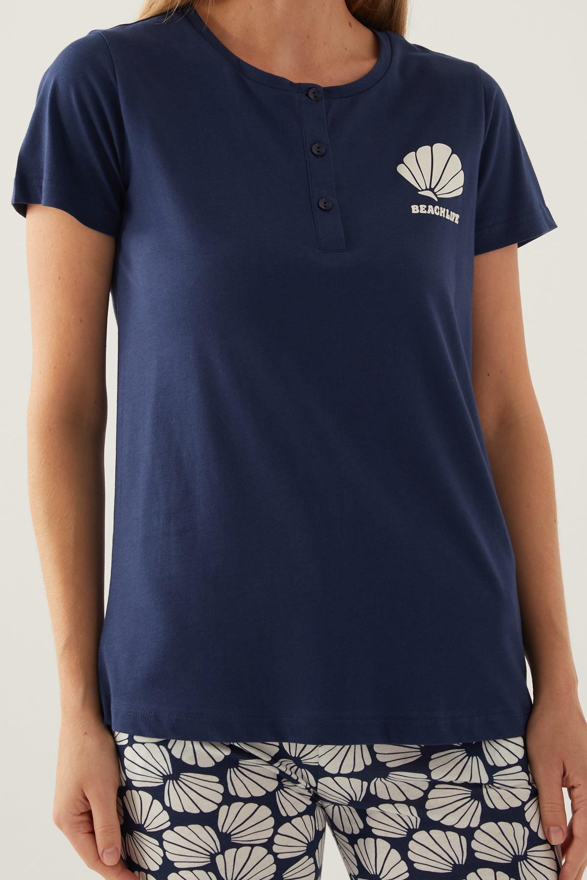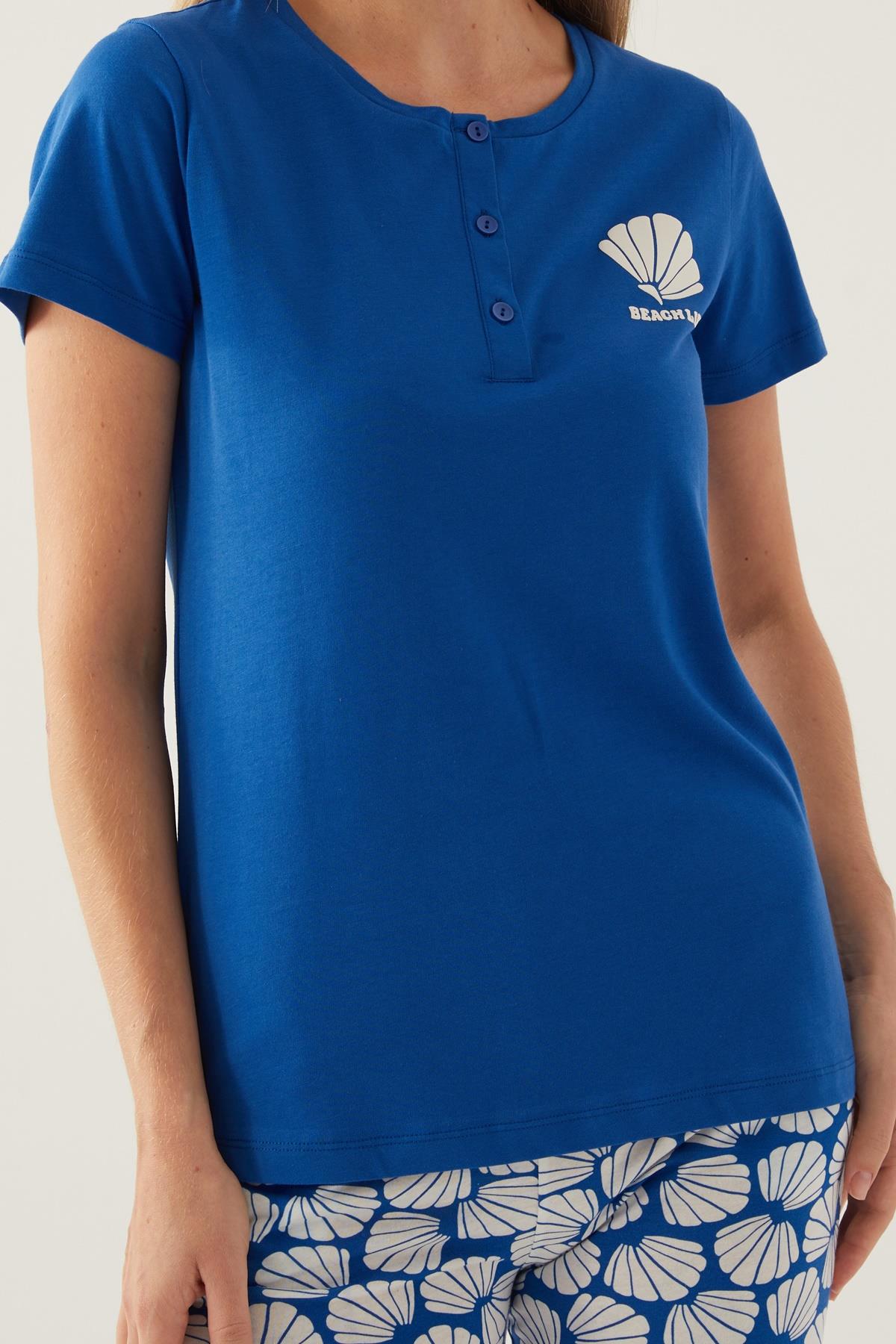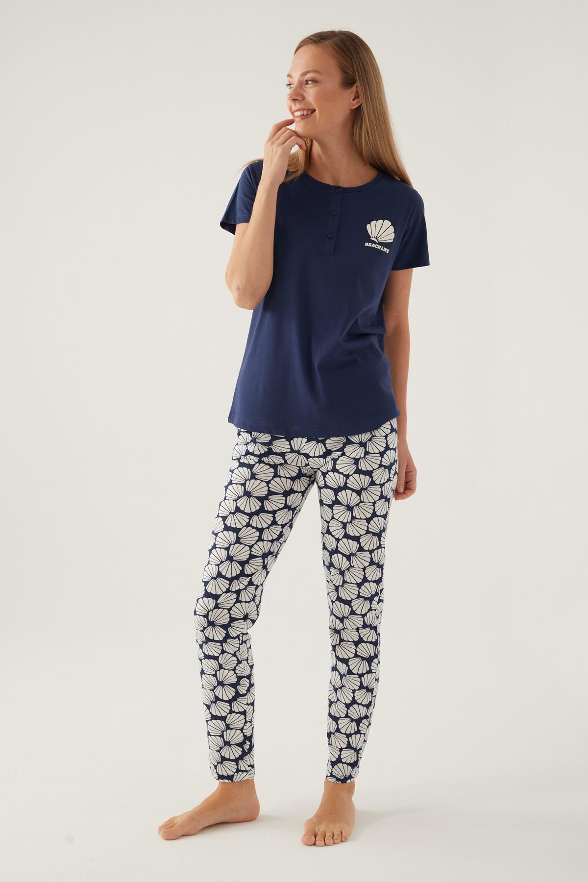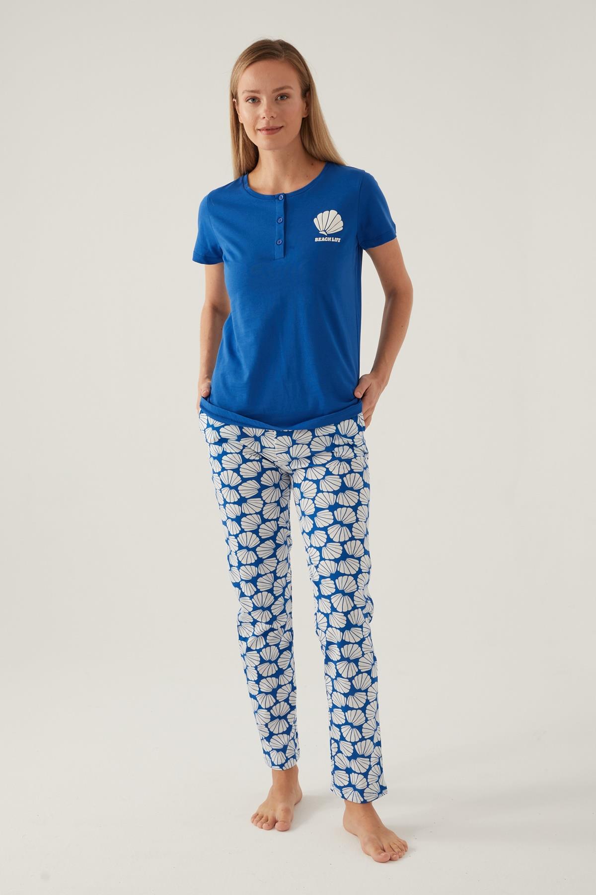 Arnetta Düğmeli Yaka Cepli Kadın Pijama Takımı, %100 Pamuklu Pijama Takımı