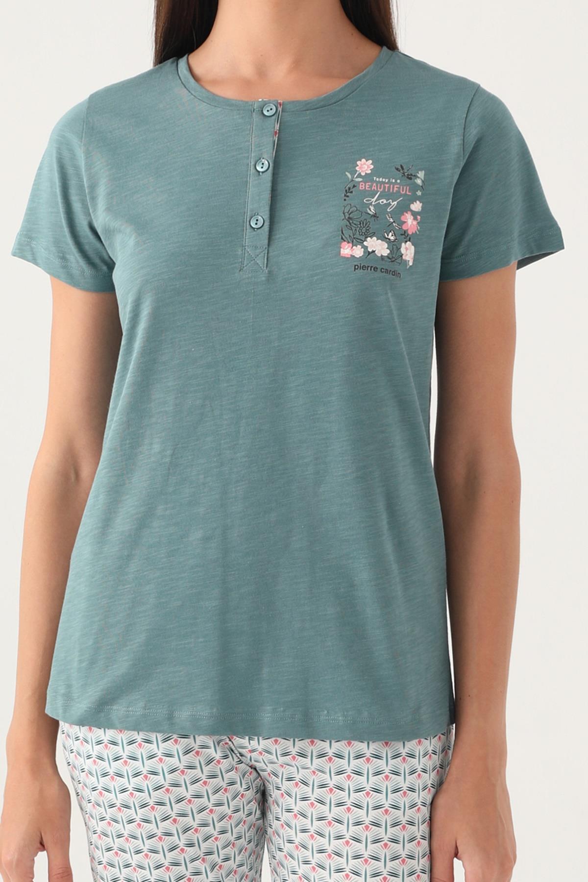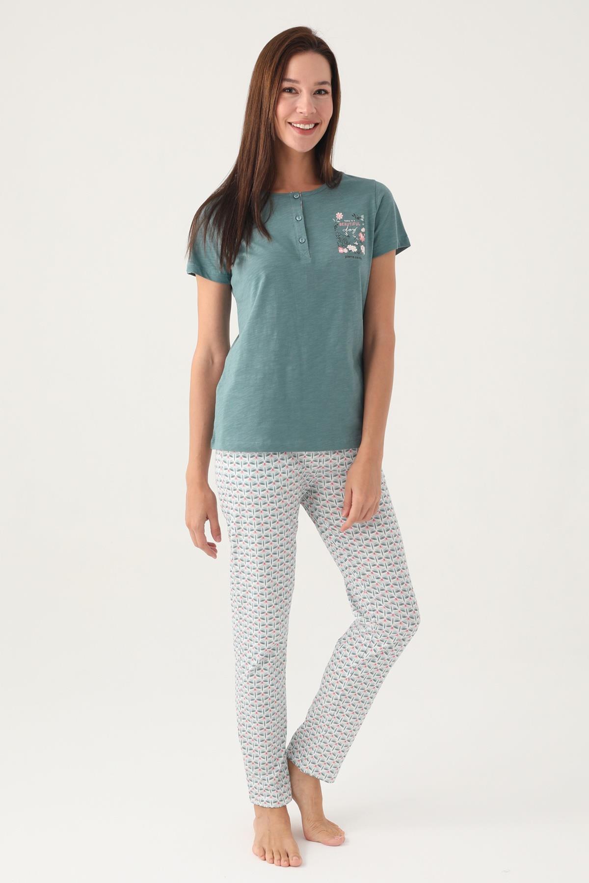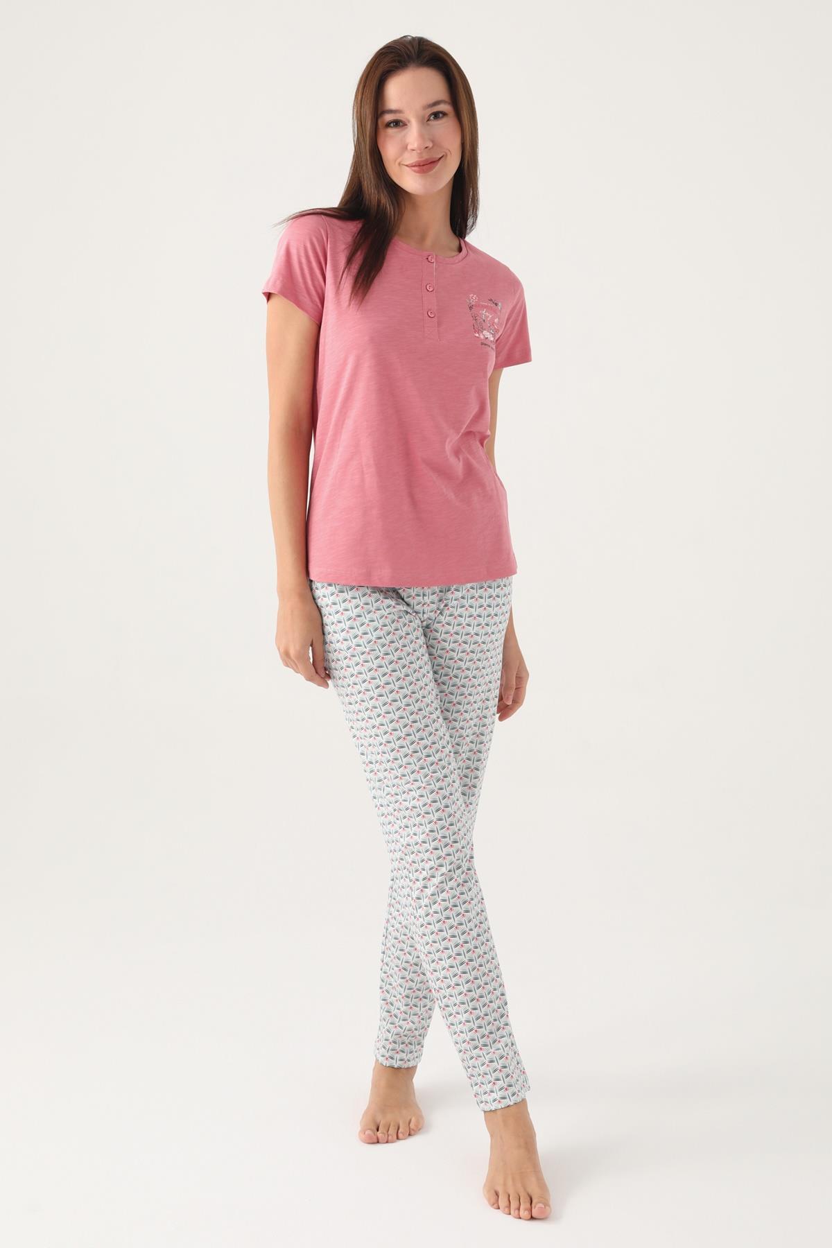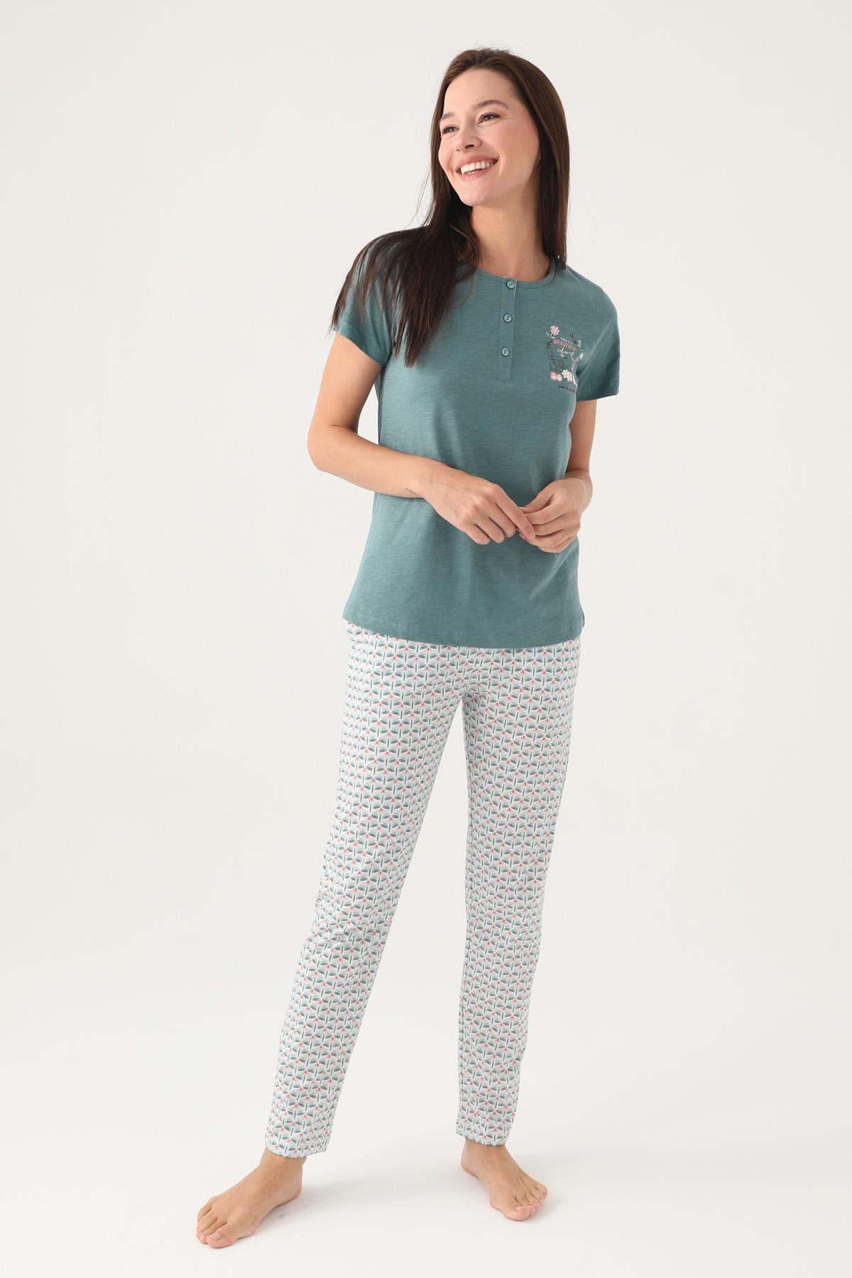 Arnetta Düğmeli Yaka Cepli Kadın Pijama Takımı, Büyük Beden Pijama Takımı, %100 Pamuk Kadın Pijama