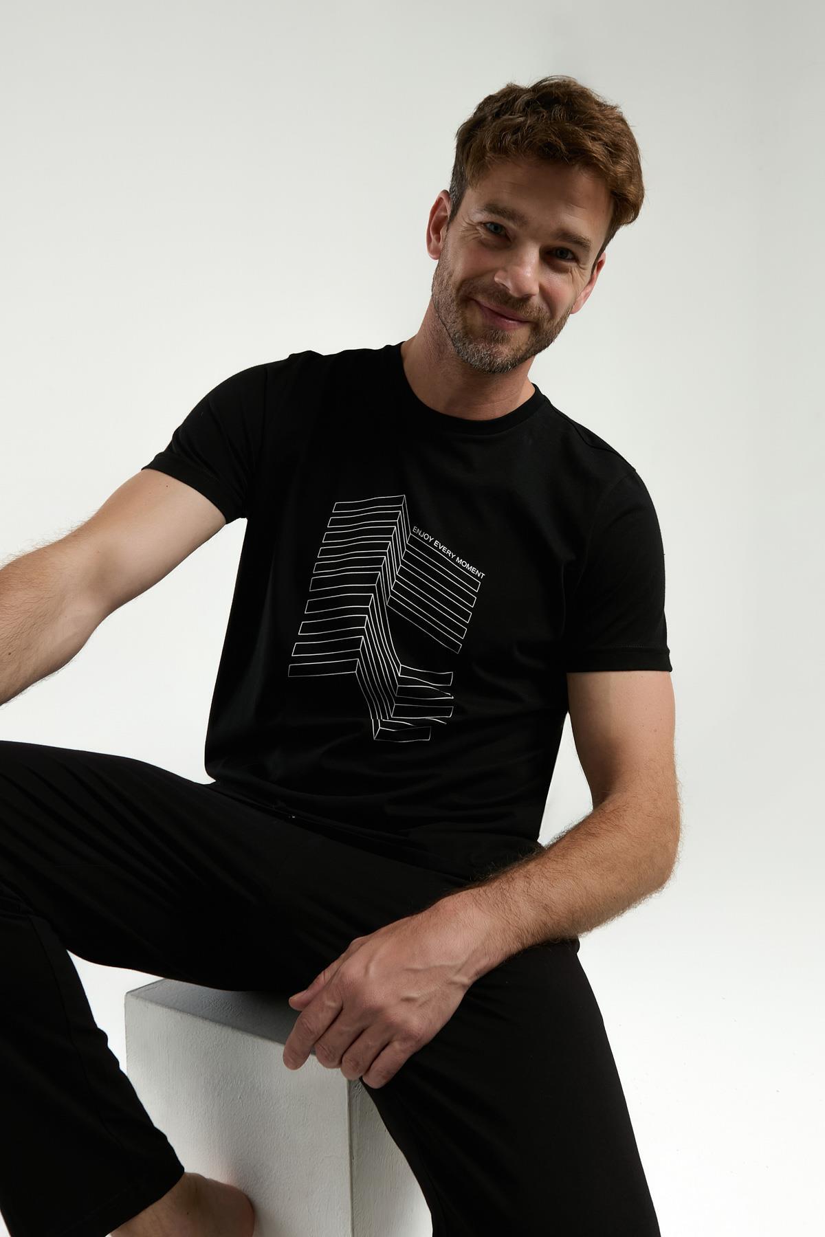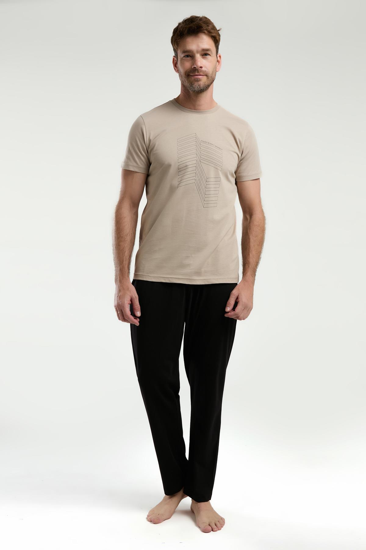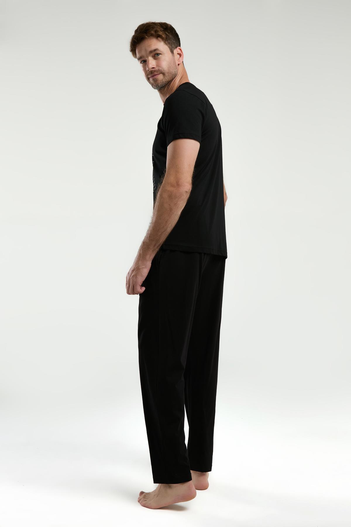 Erkek %100 Pamuk Pijama Takımı – Kısa Kollu T-Shirt & Uzun Pijama Altı