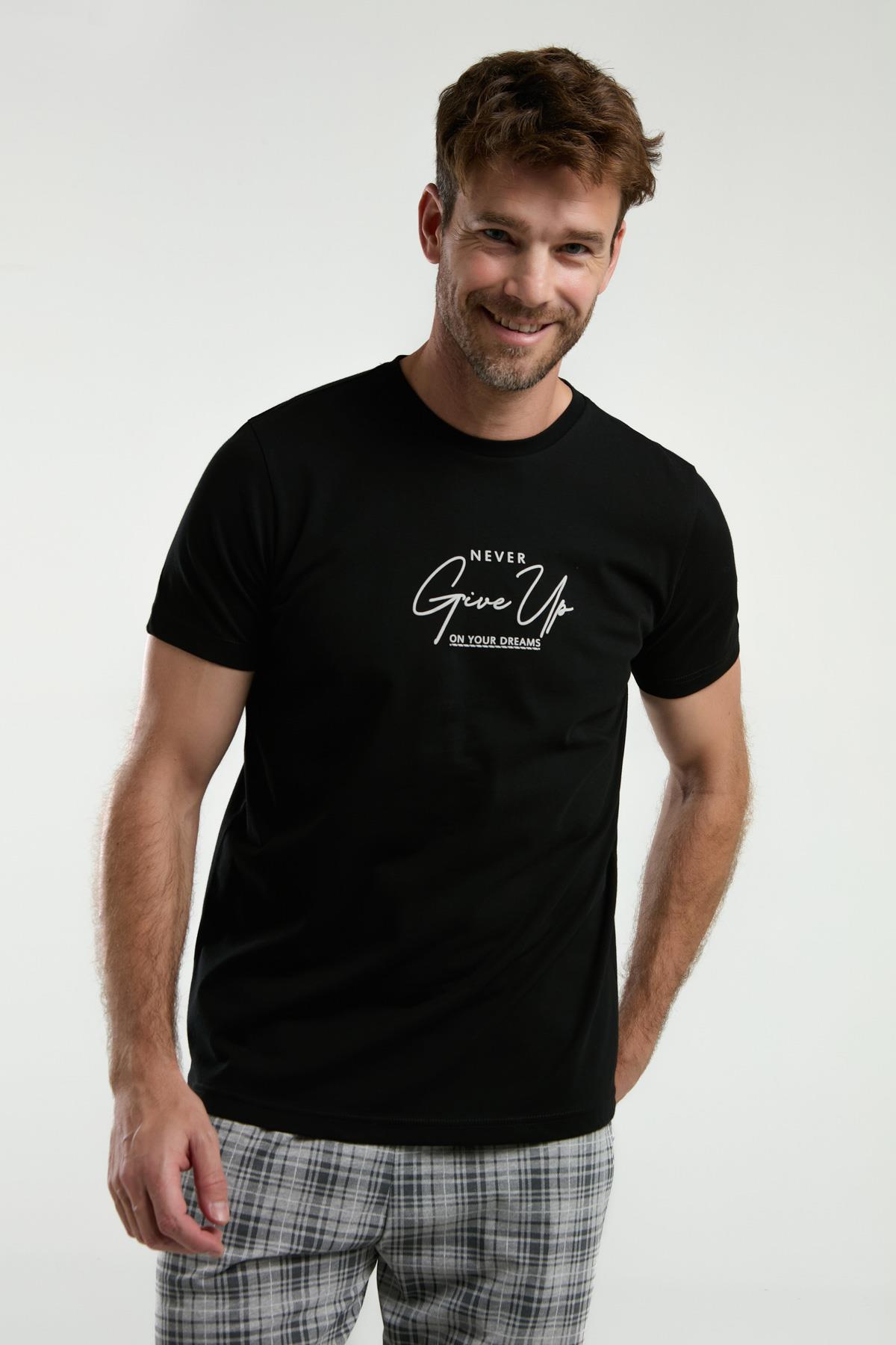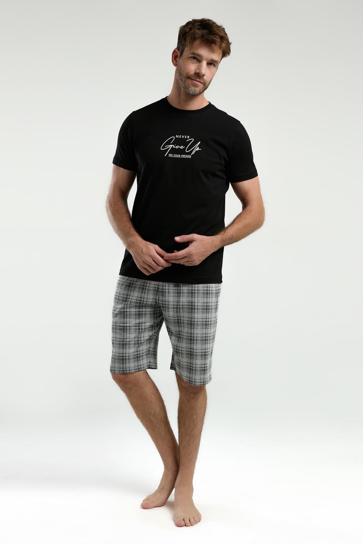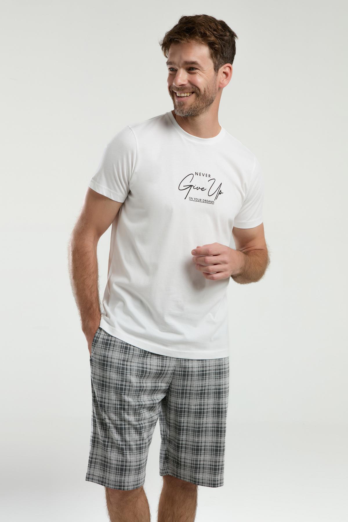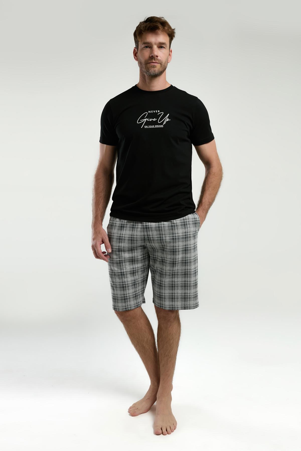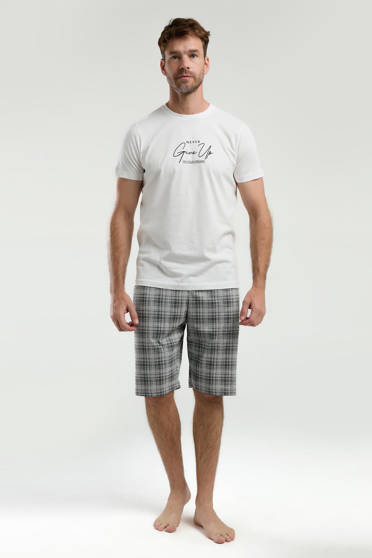Arnetta Erkek Büyük Beden Ekoseli Bermuda Şort ve T-shirt Takım, %100 Pamuk, cep Detaylı