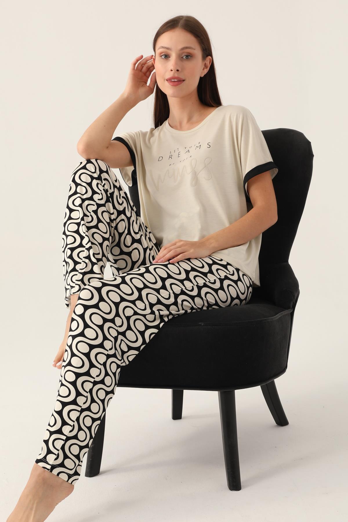 Arnetta Geometrik Desenli Cepli Yazlık Kadın Pijama Takımı, %100 pamuk