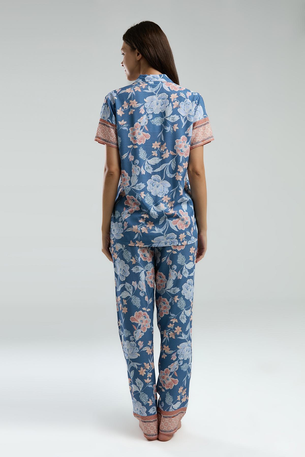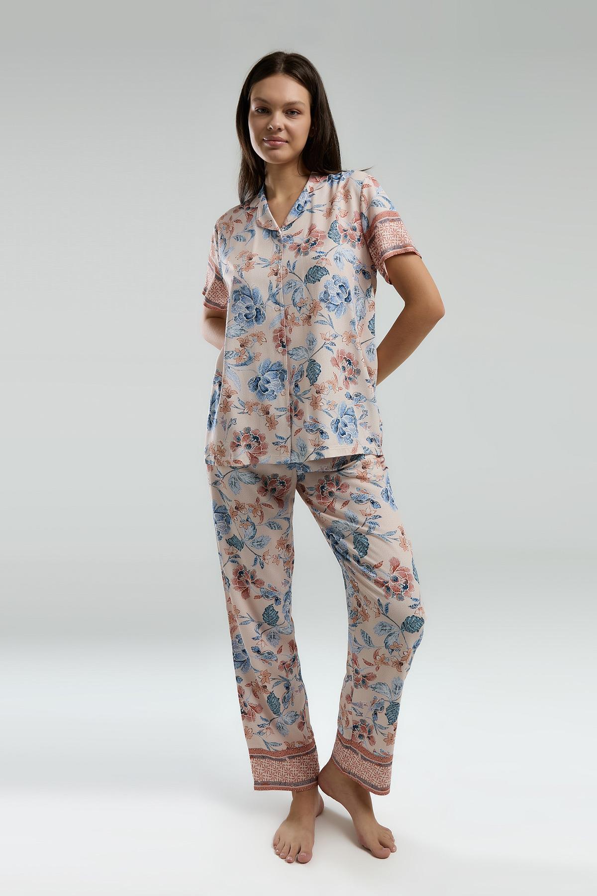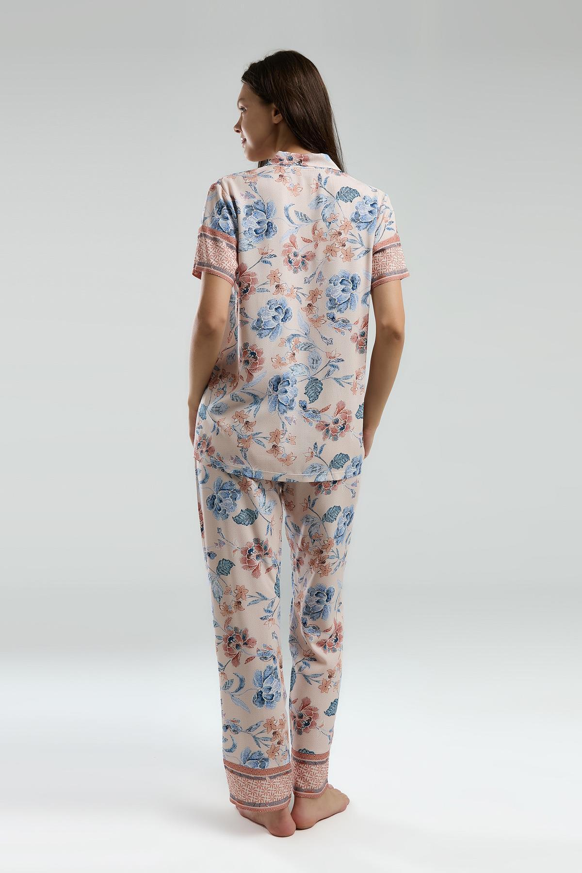 Çiçek Baskılı düğmeli ve cepli kadın yazlık pijama takım