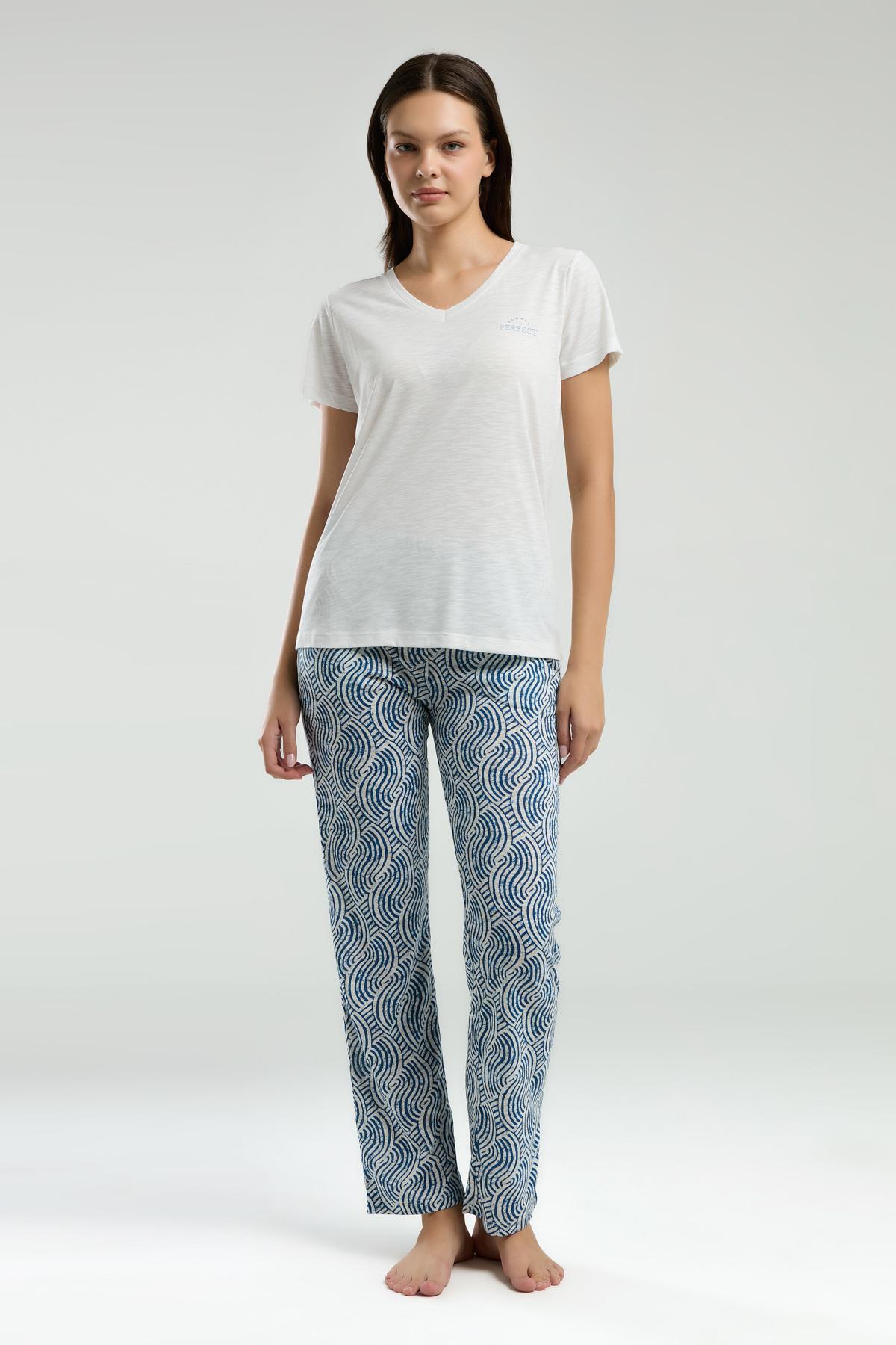 Arnetta Kadın Büyük Beden Yazlık Pijama Takım, V Yaka, Kısakollu Cep Detaylı