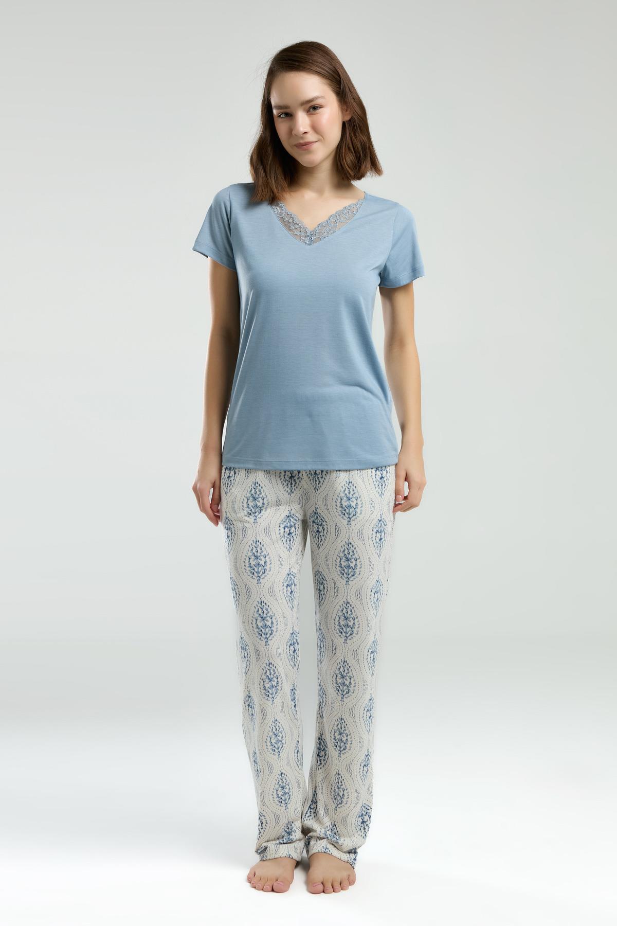 Arnetta Kadın Dantel V Yaka Yazlık Pijama Takım