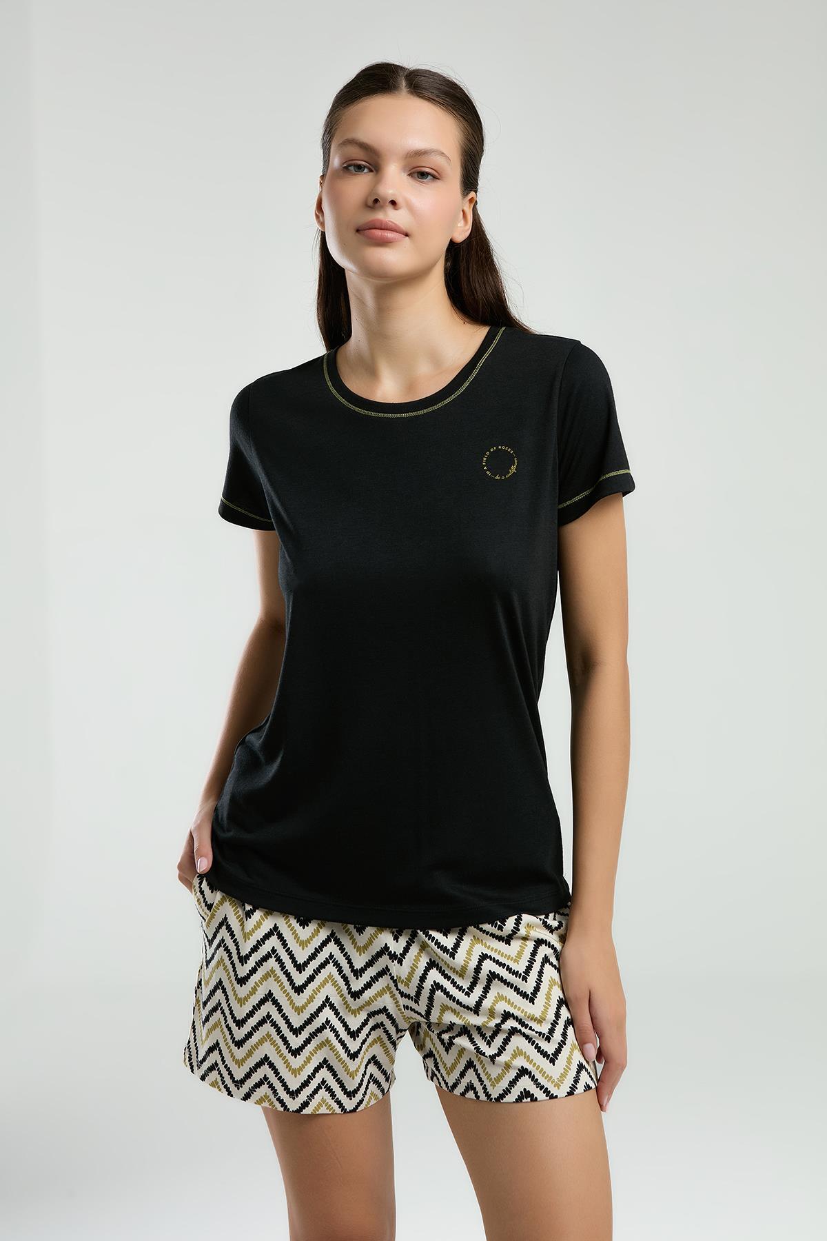 Evde Şıklığı Yeniden Tanımlayan Kadın Şortlu Pijama Takımı – %50 Modal %50 Pamuk, Modern Desen