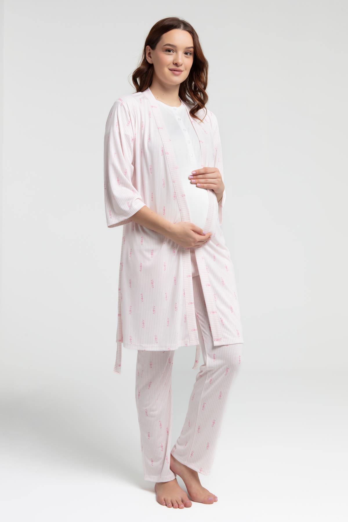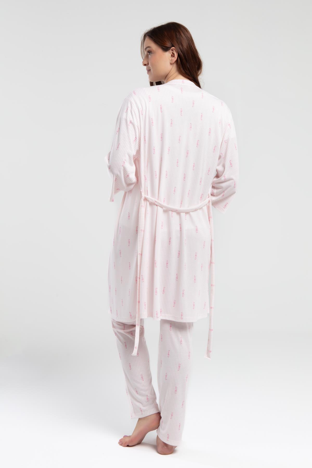 Arnetta Pembe Çizgili 3'lü Lohusa Pijama Seti