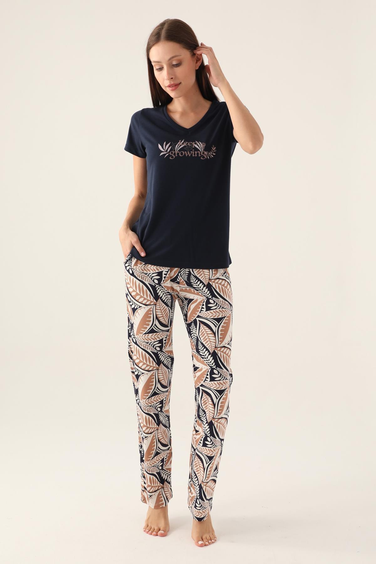 Arnetta V Yaka Yandan Cepli Kadın Pijama Takımı, %100 Pamuklu Pijama Takımı