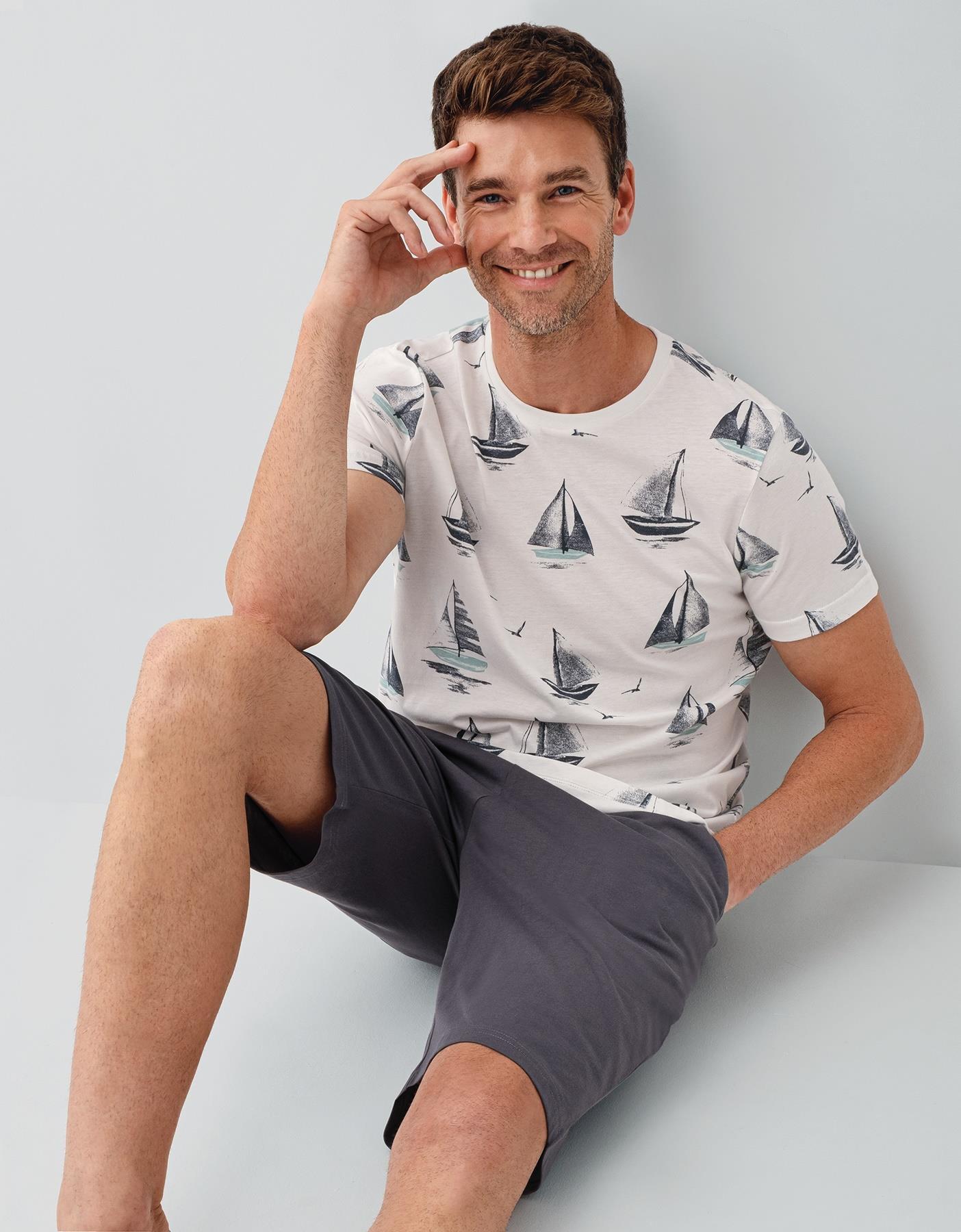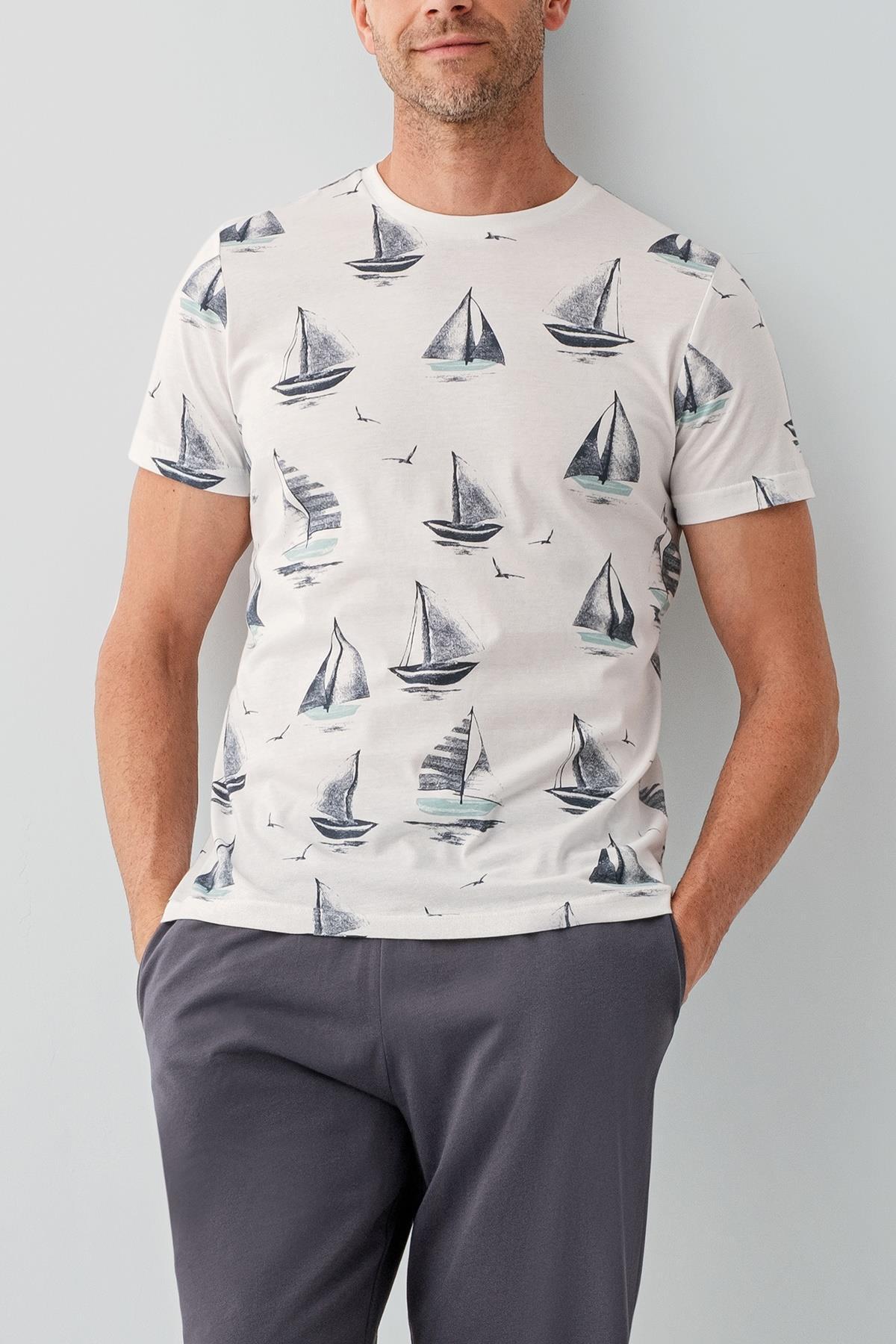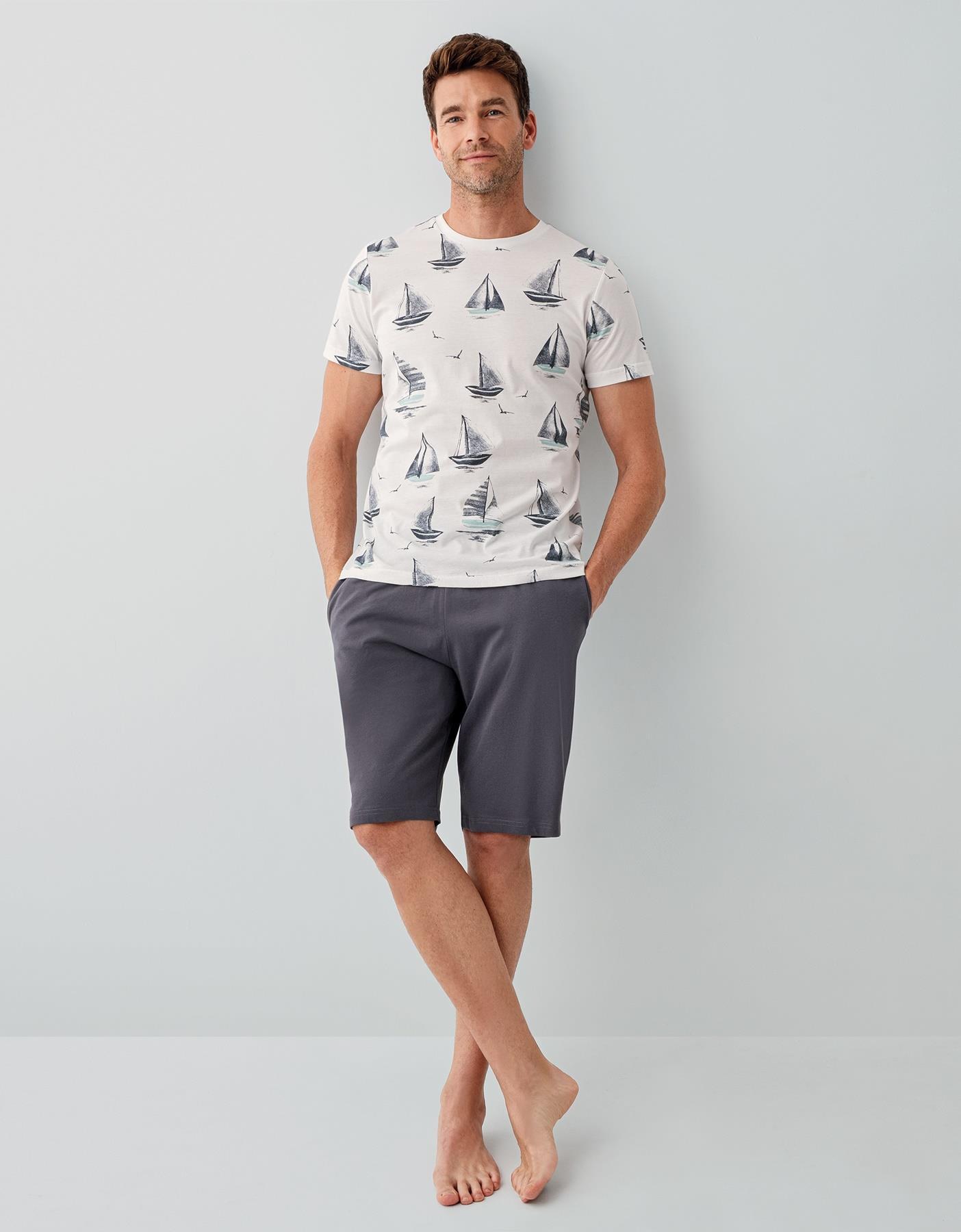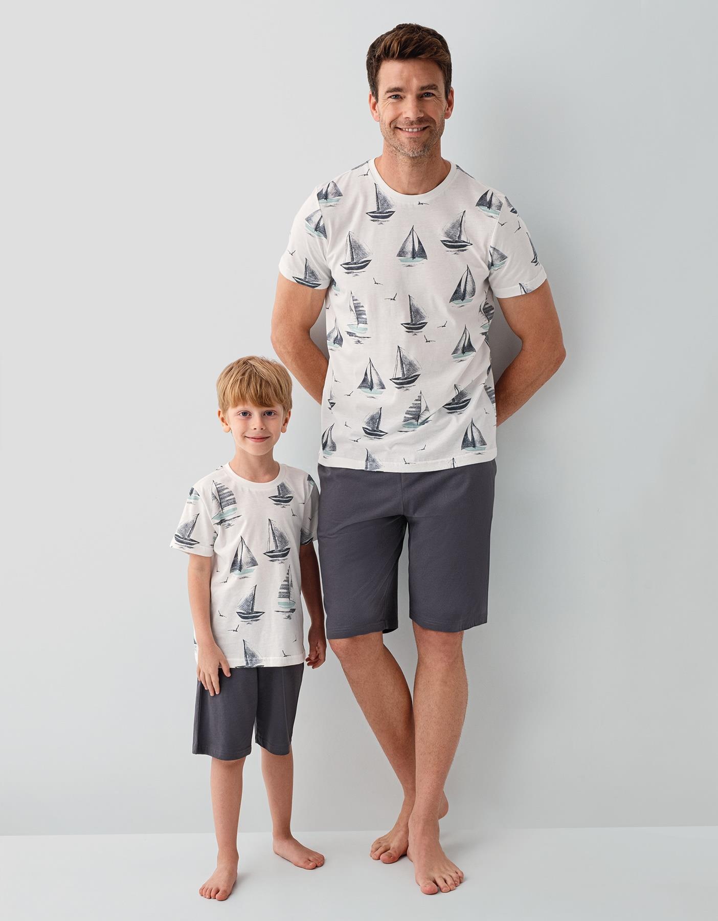 Baba Oğul Yazlık Şort Takımı – Yelken Desenli, %100 Pamuk, Kısa Kollu Aile Kombini