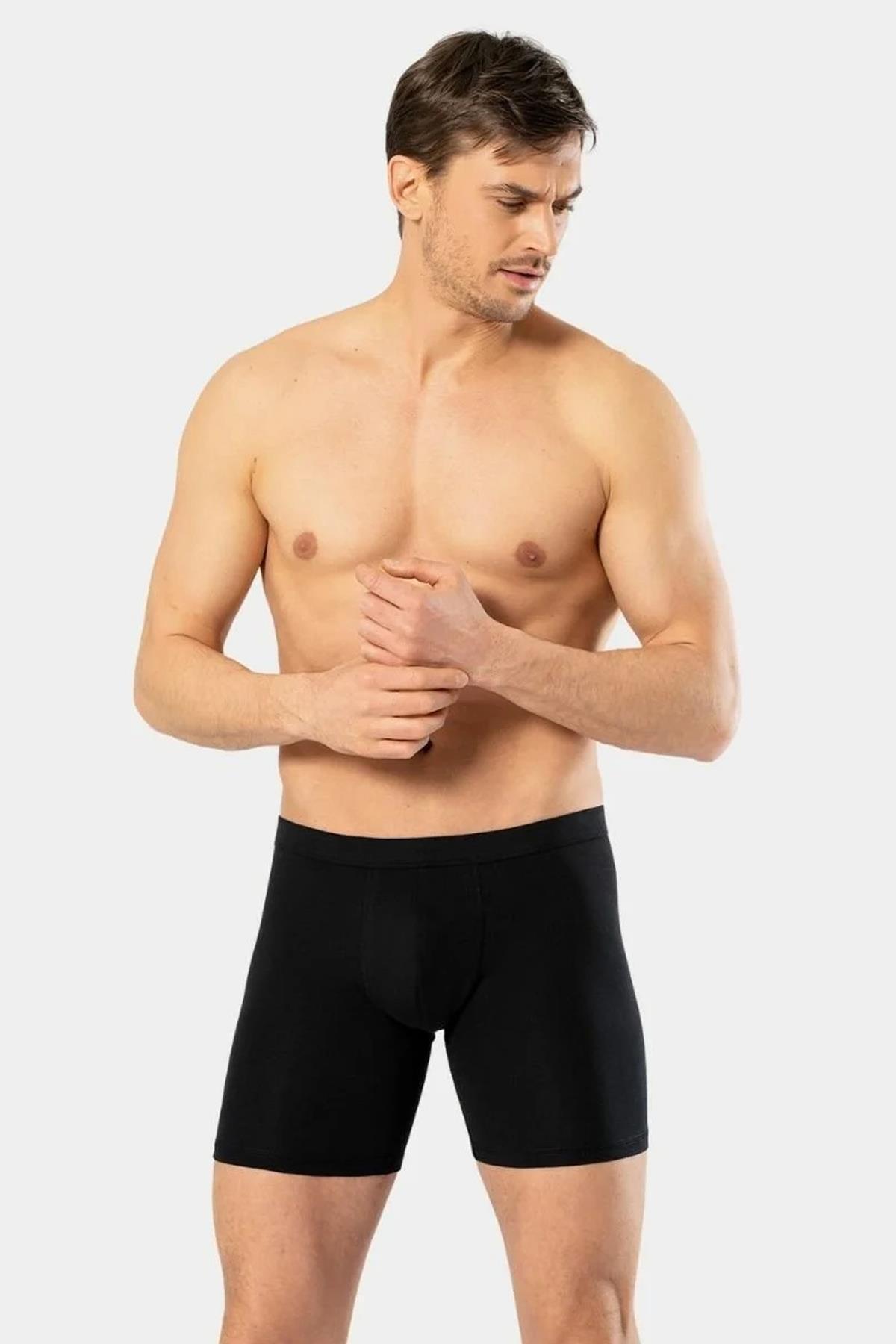 Erkek Büyük Beden 3'lü Uzun Paça Boxer, %95 Pamuk %5 Elastan