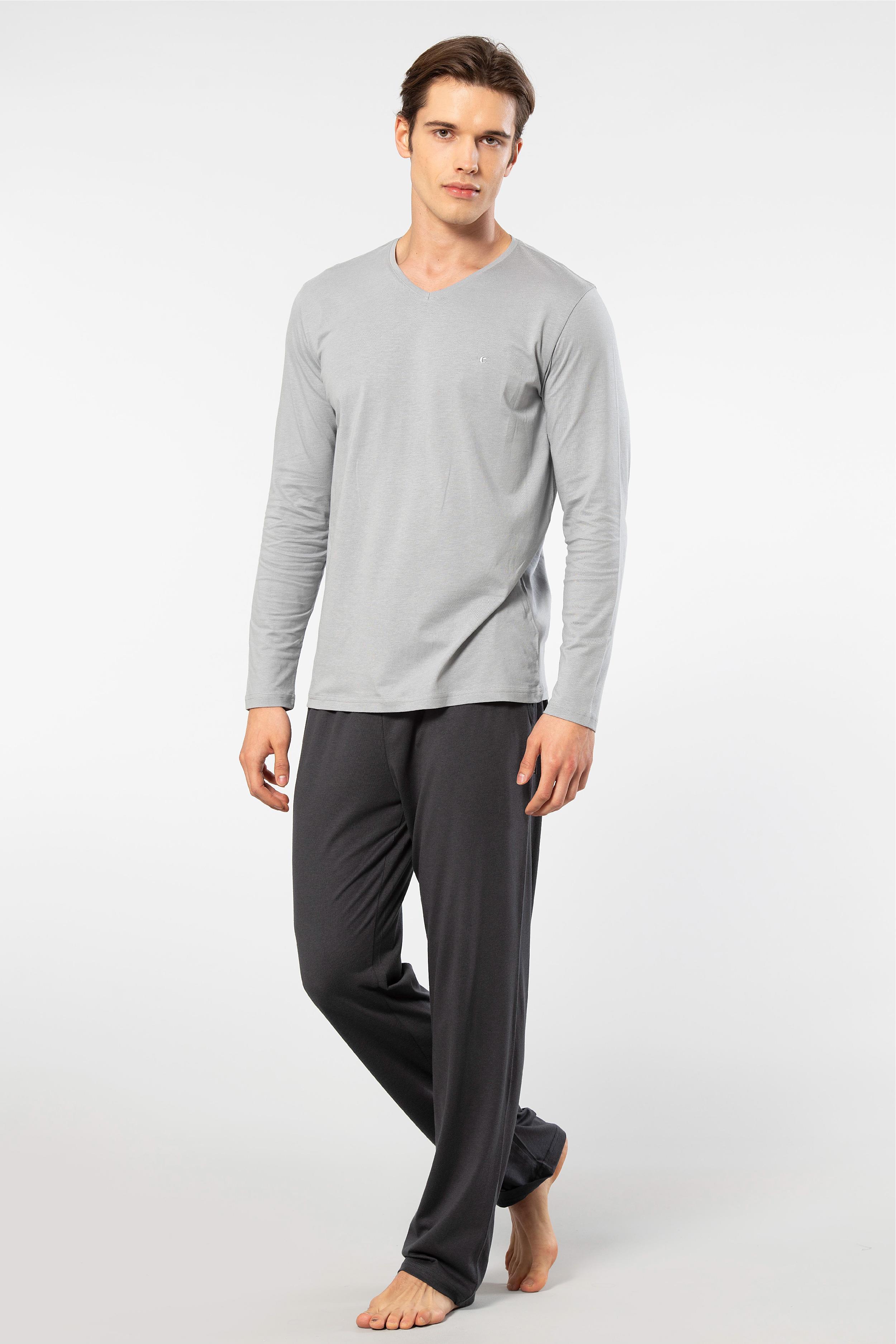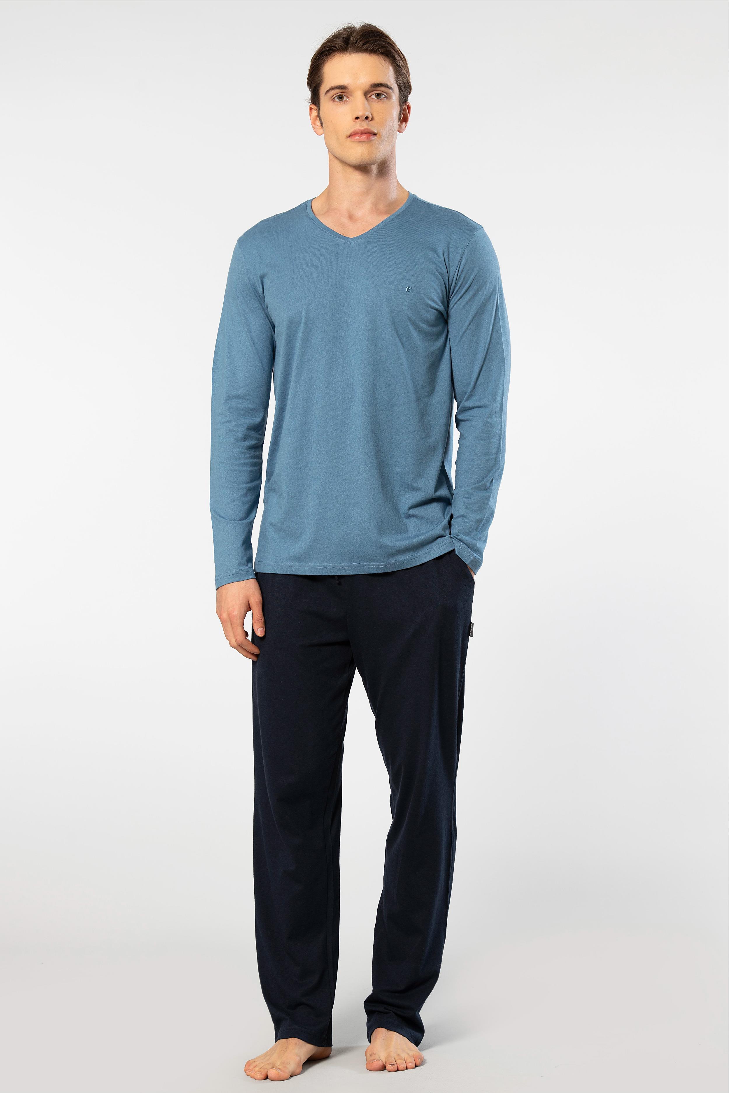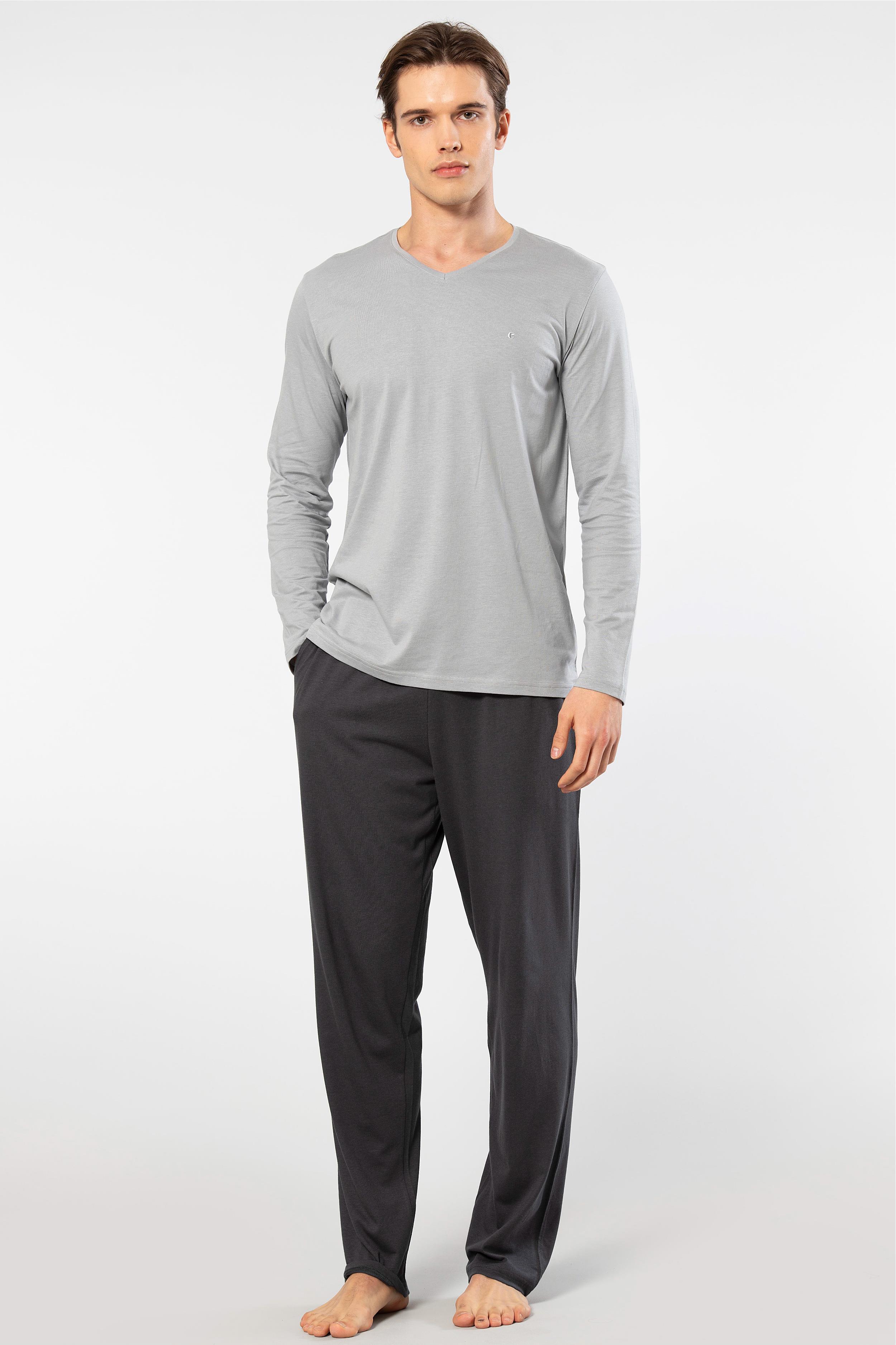 Cacharel Erkek V Yaka Uzunkol Pijama Takım, %50 Modal, %50 Pamuk Alt Pijama ceplidir