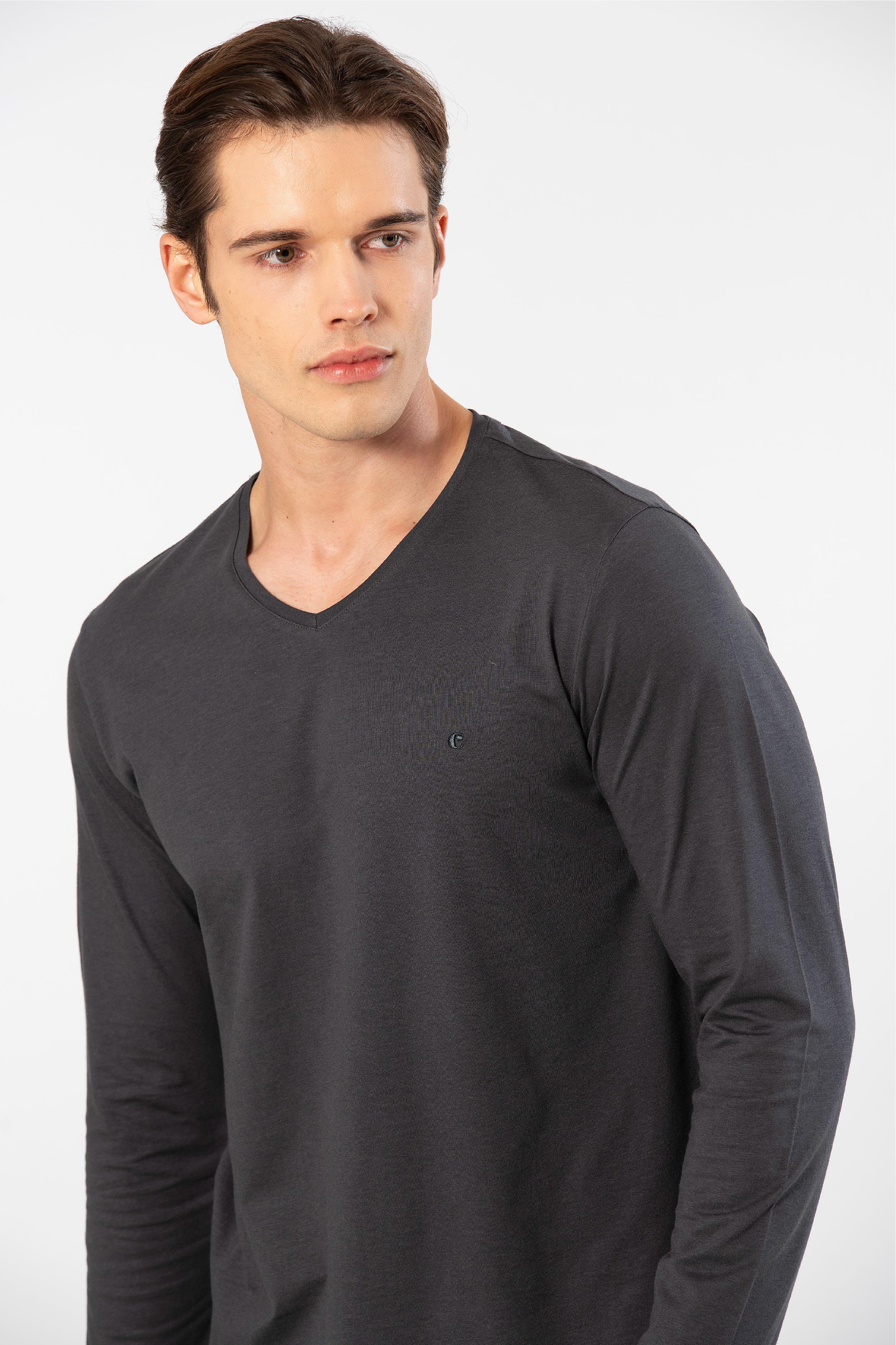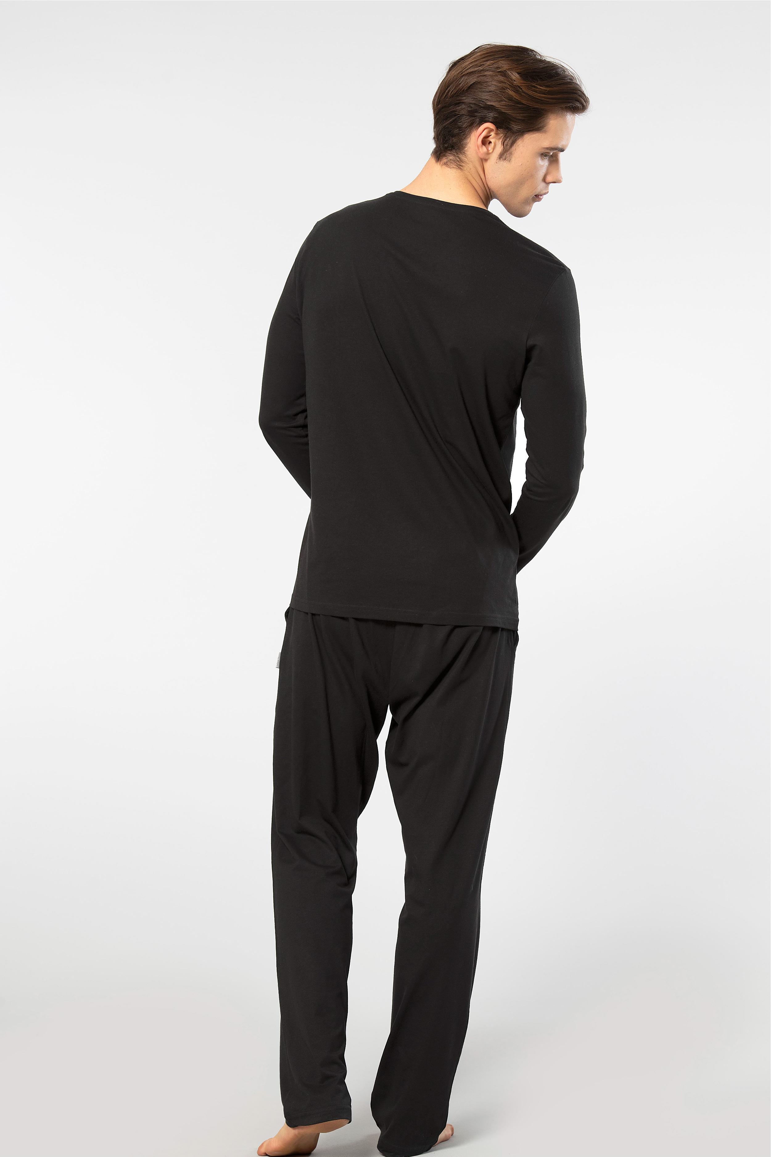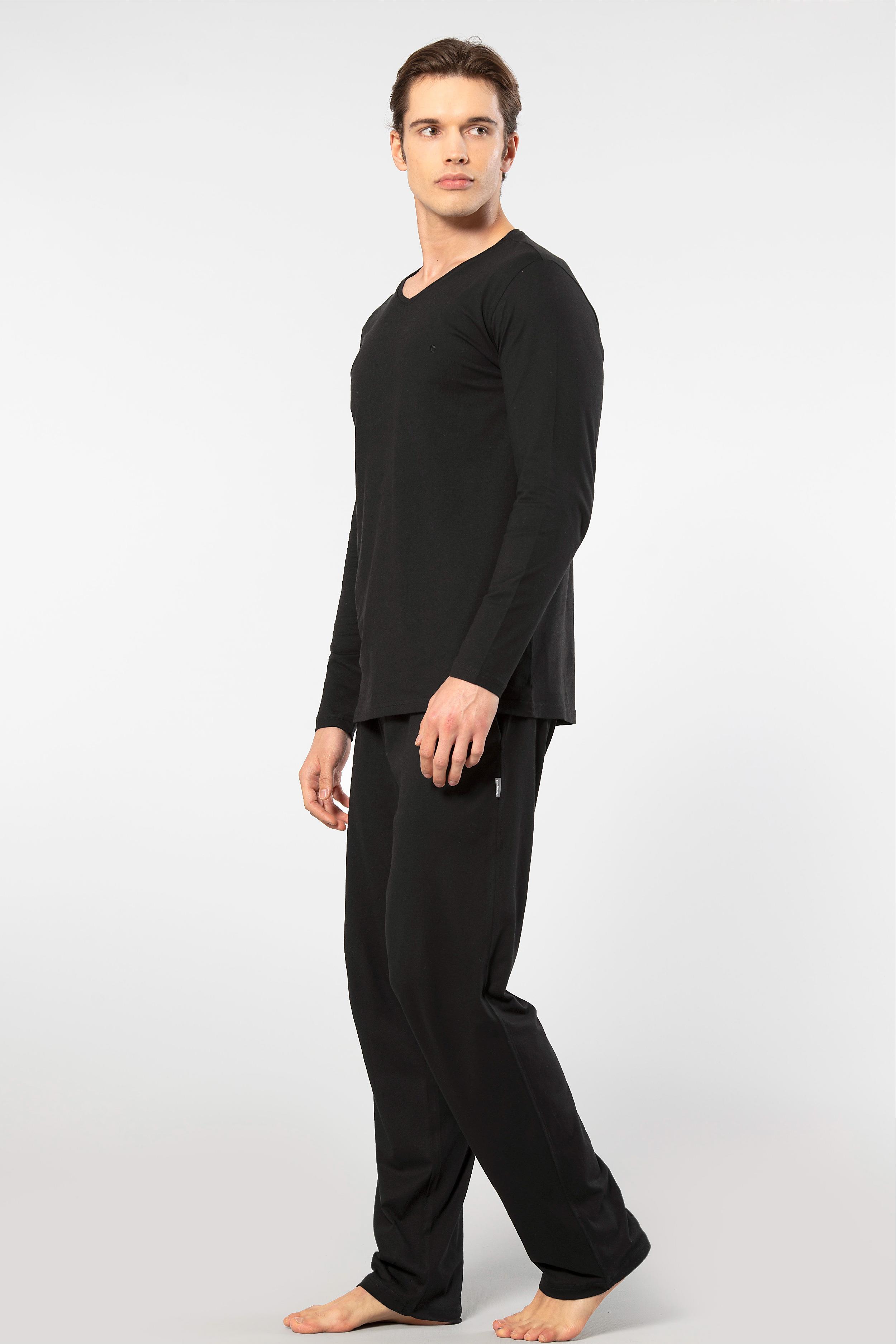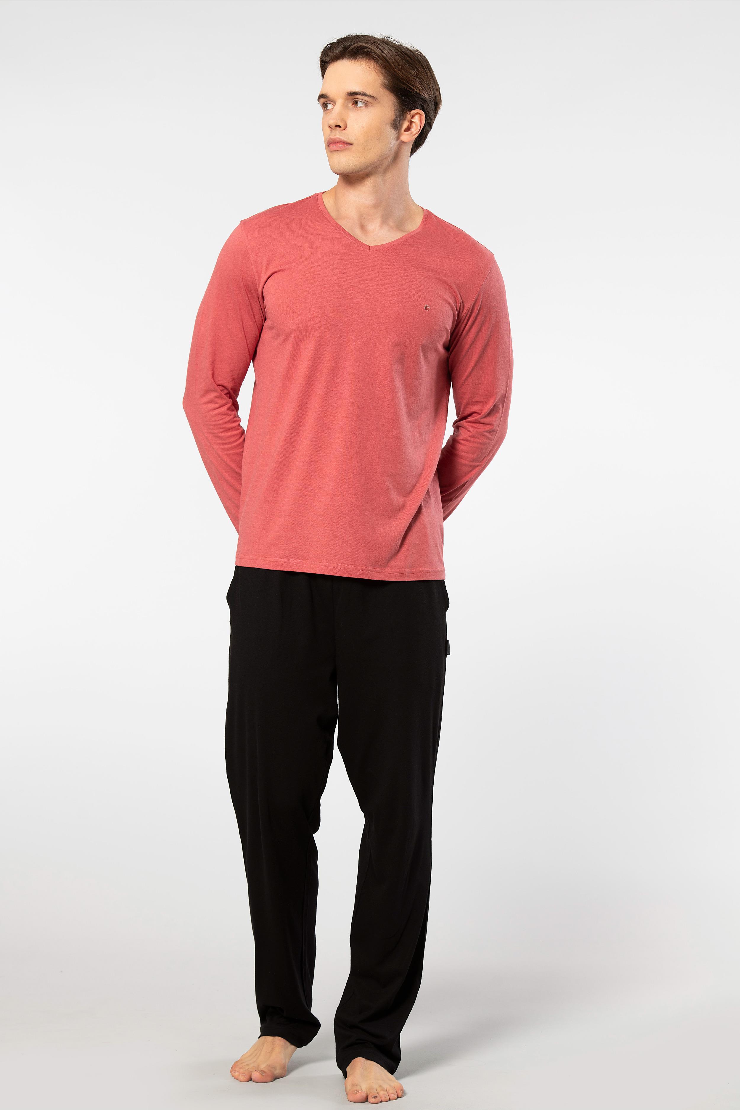 Cacharel Erkek V Yaka Uzunkol Pijama Takım, %50 Modal, %50 Pamuk Alt Pijama ceplidir