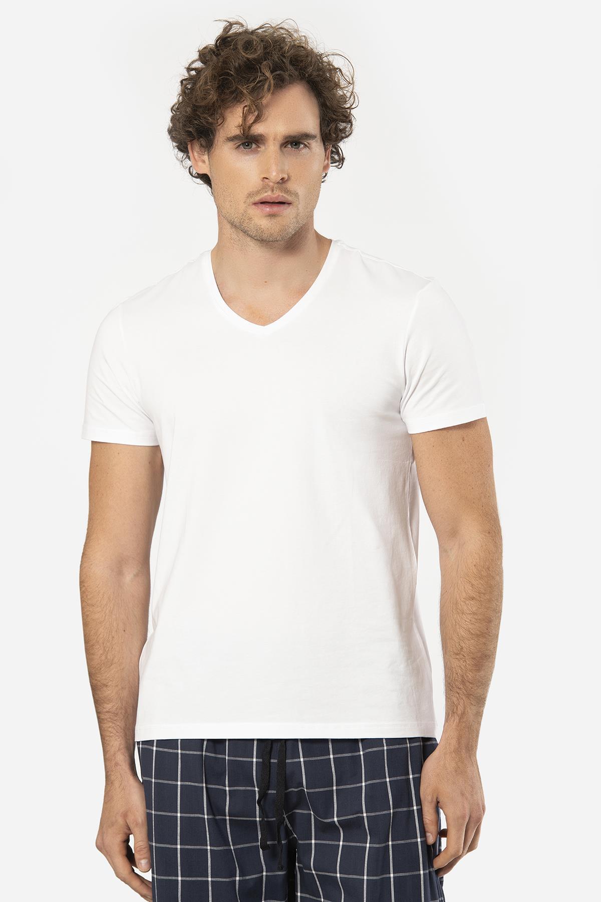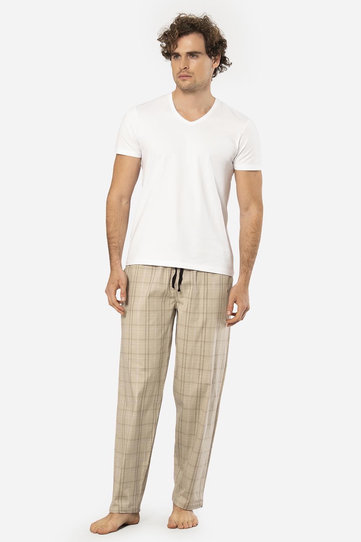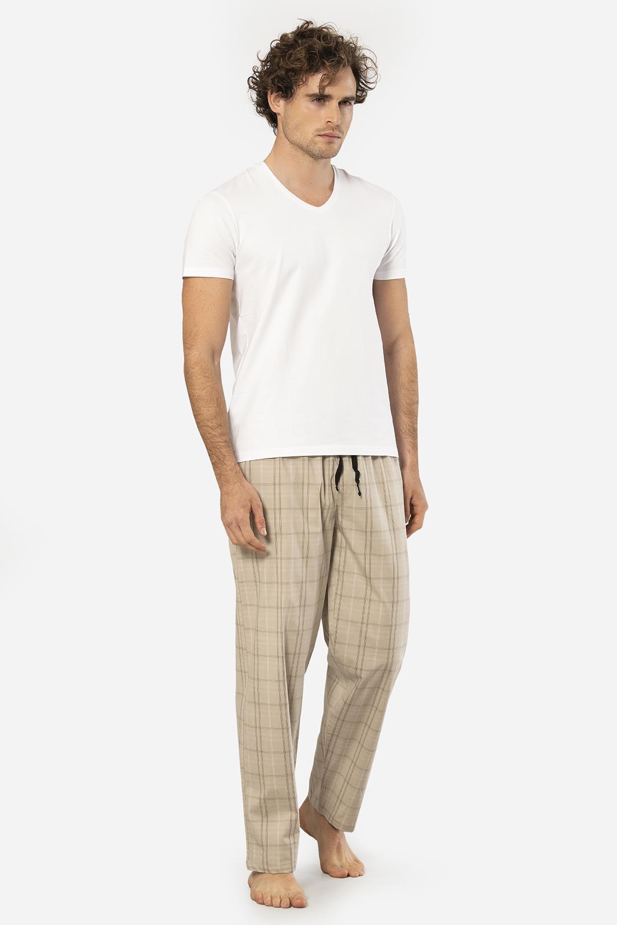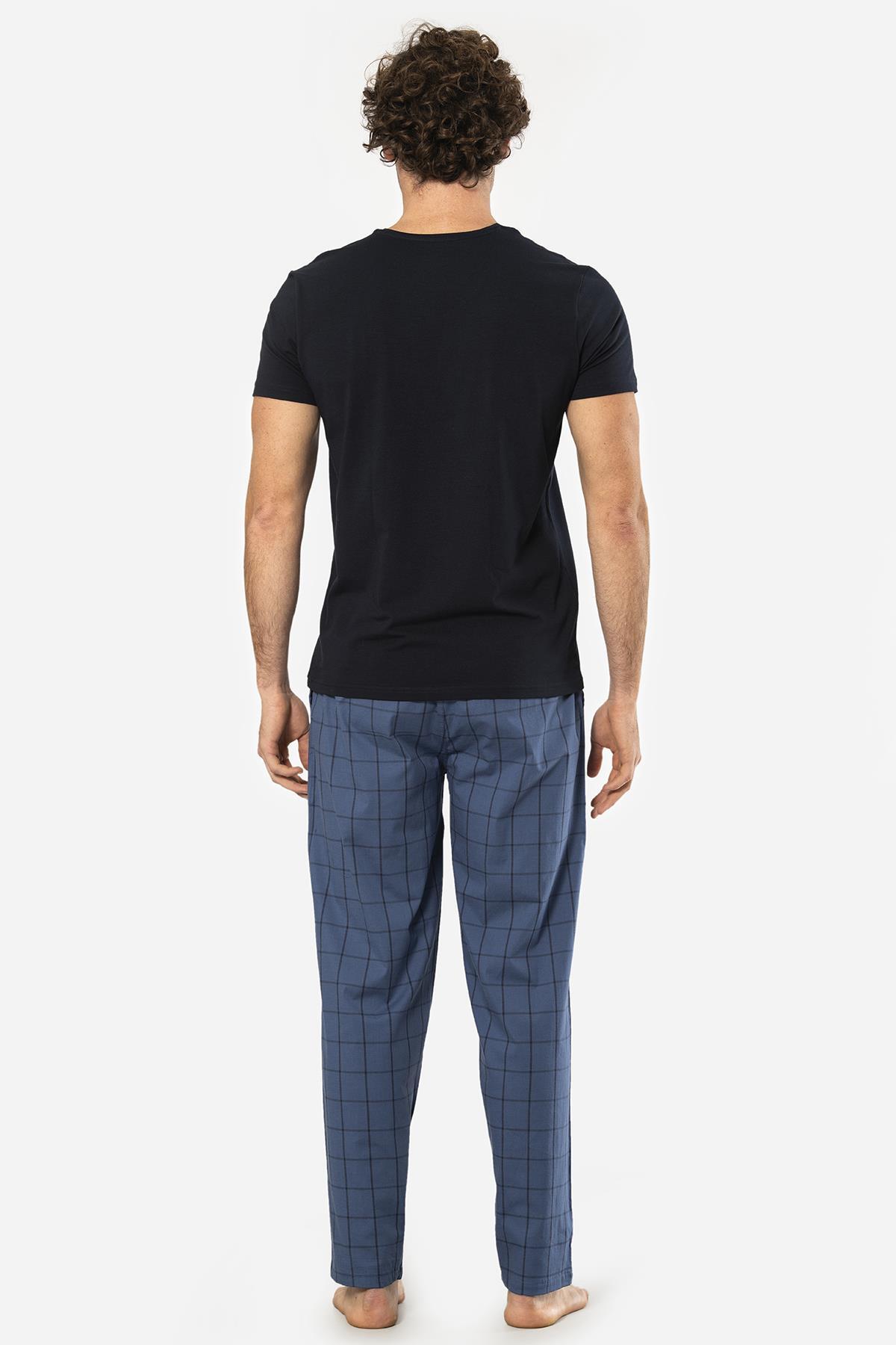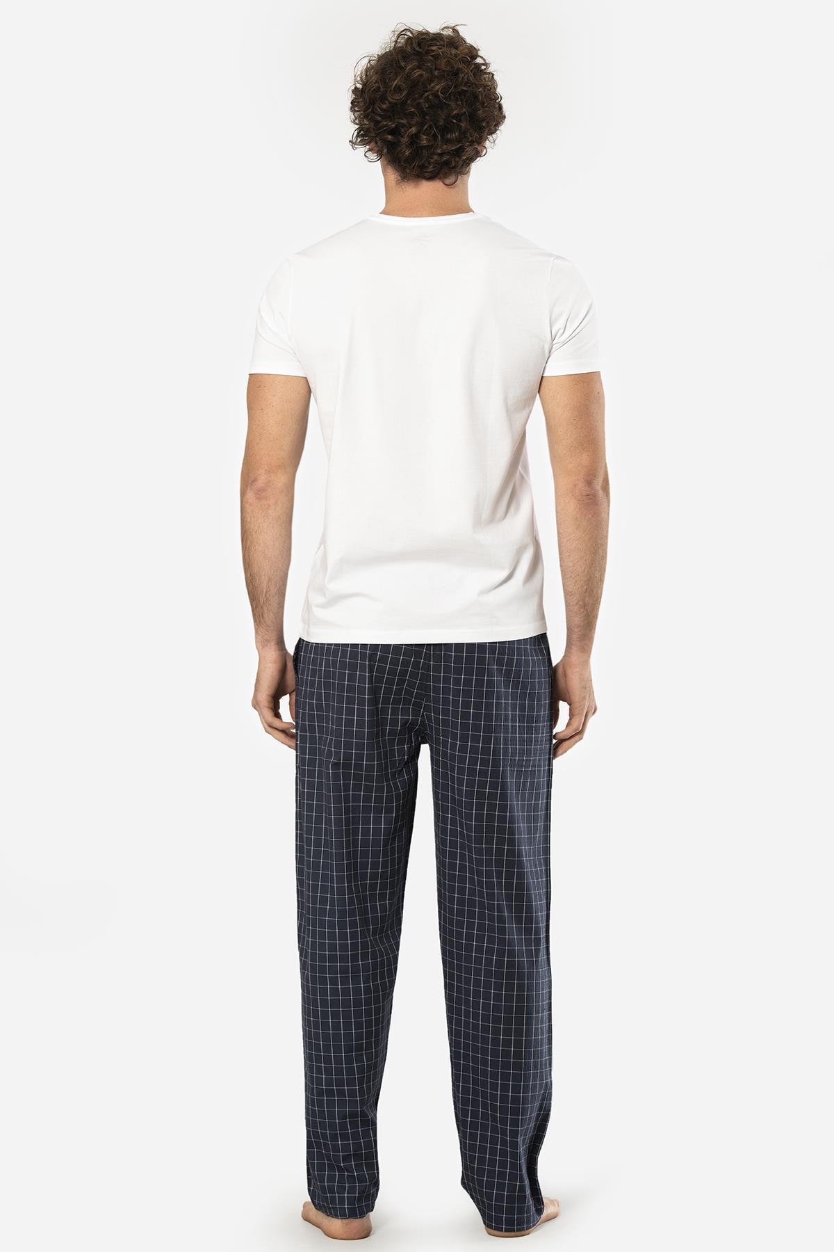 Cacharel V Yaka Kısa Kol T-shirt ve Cepli Ekoseli Alt Pijama Takım