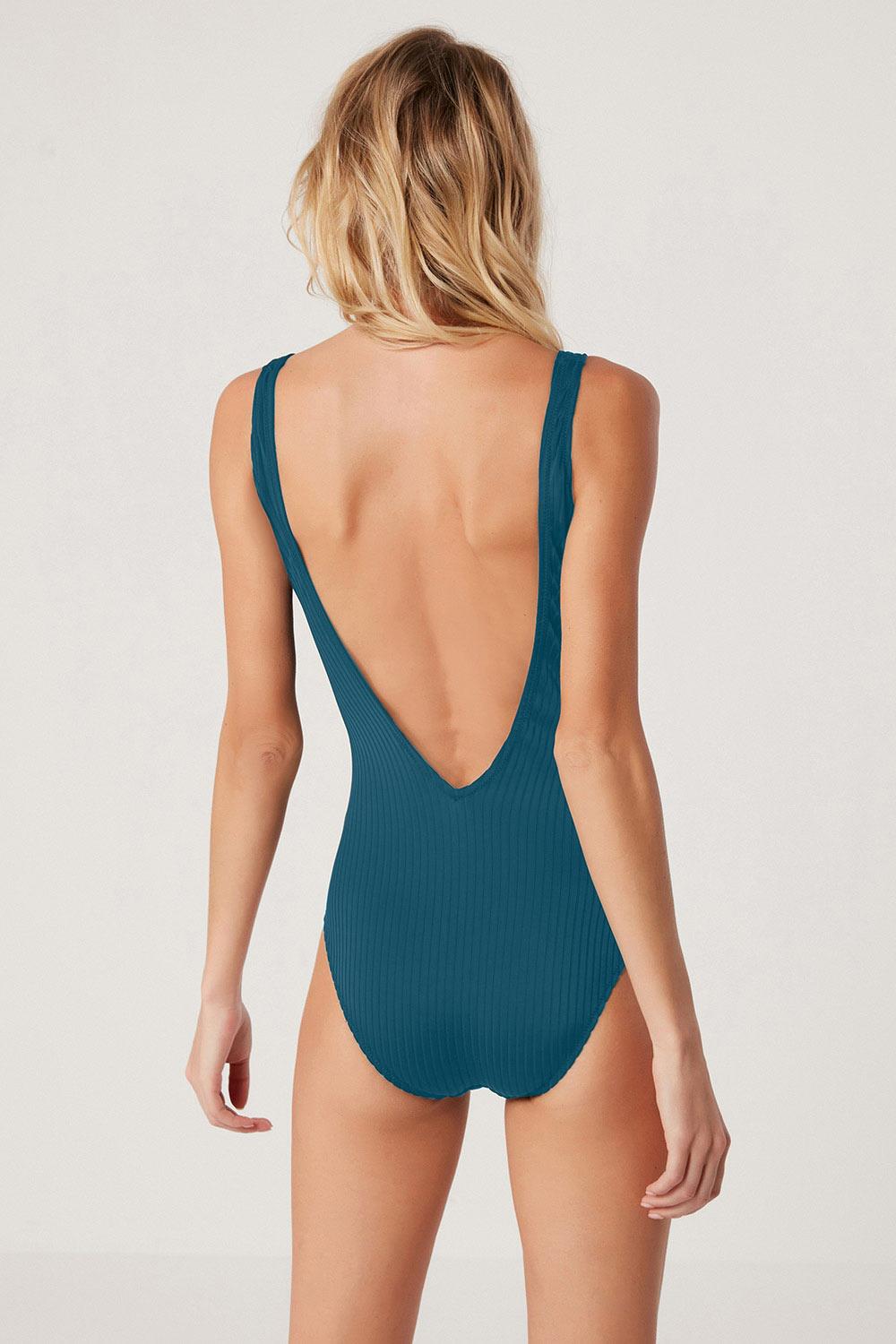 Çizgi Dokulu V Yaka Balensiz Toparlayıcı Mayo