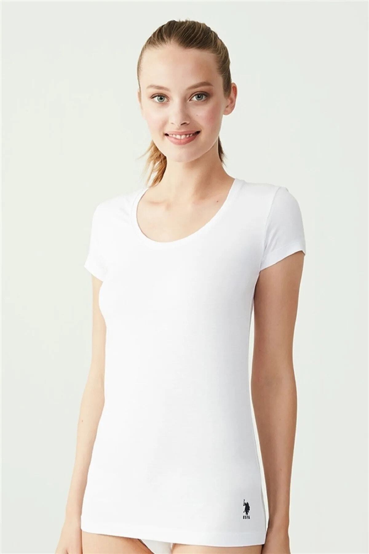 Kadın %95 Pamuk, %5 Likralı Pamuklu V Yaka Atlet