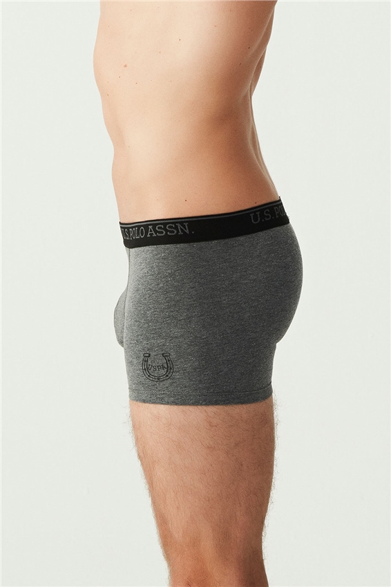 U.S. Polo Assn. 3'lü Pamuklu Likralı Erkek Boxer, Gri melanj Mürdüm ve Baskılı, %95 pamuk %5 likra