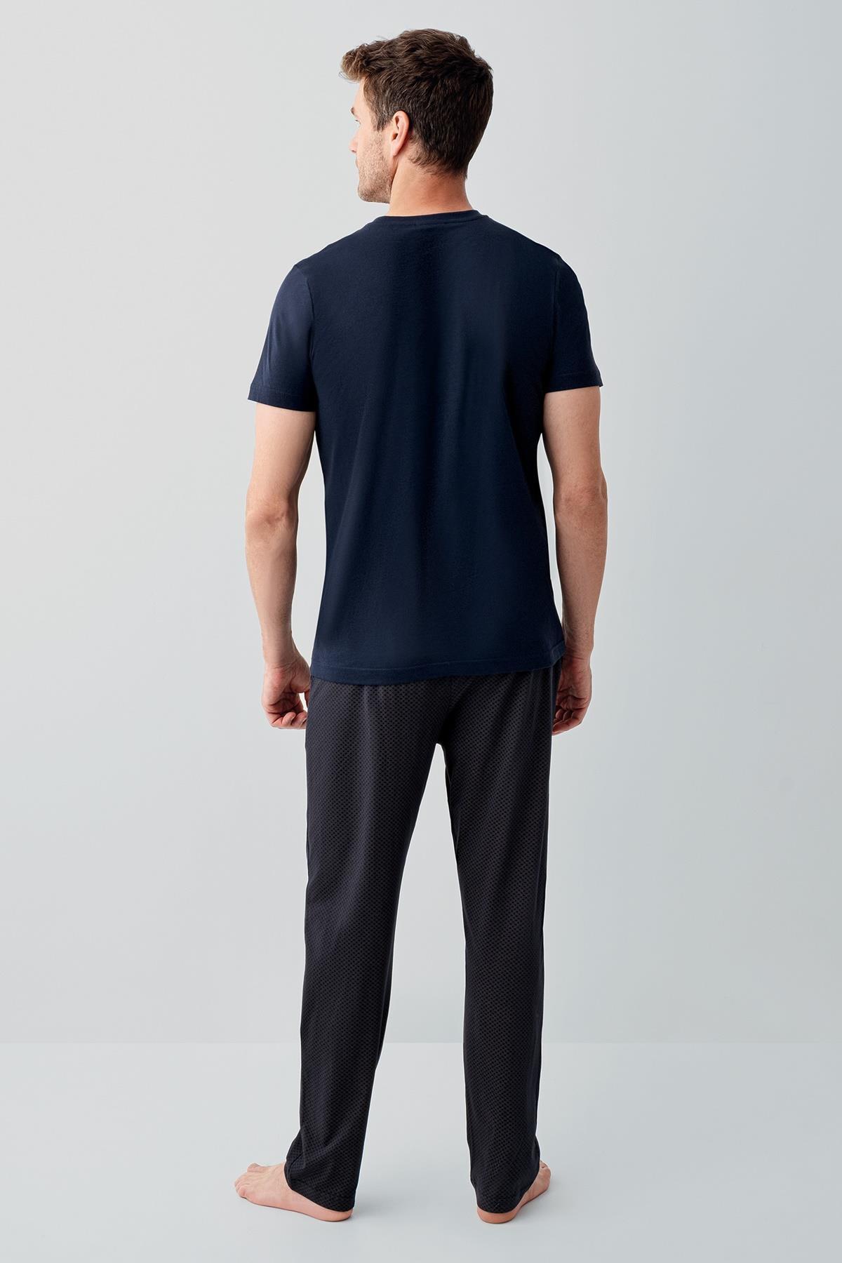 Erkek %100 Pamuk Pijama Takımı – Kısa Kollu T-Shirt & Uzun Pijama Altı