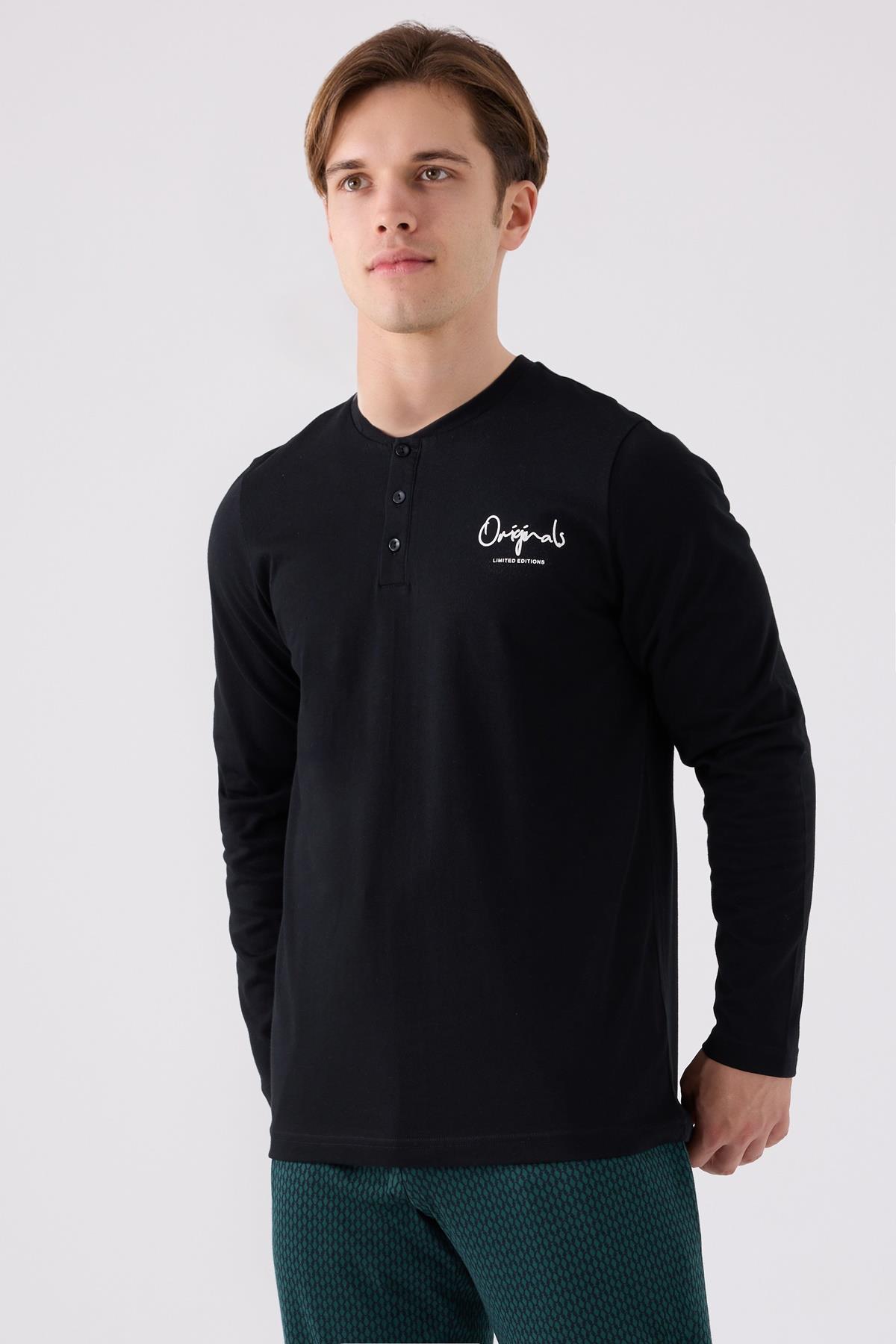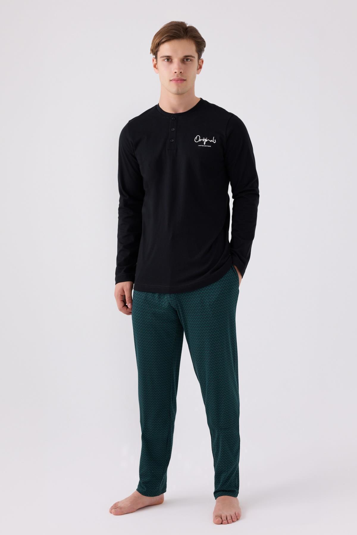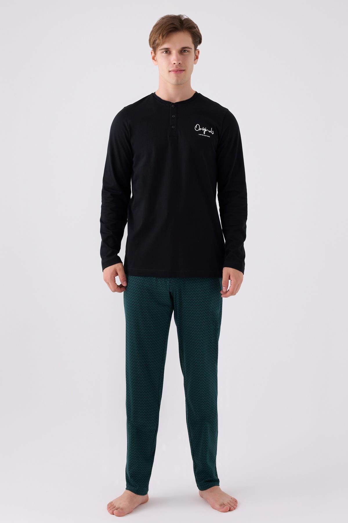 Erkek %100 Pamuklu Düğmeli Yaka Pijama Takım