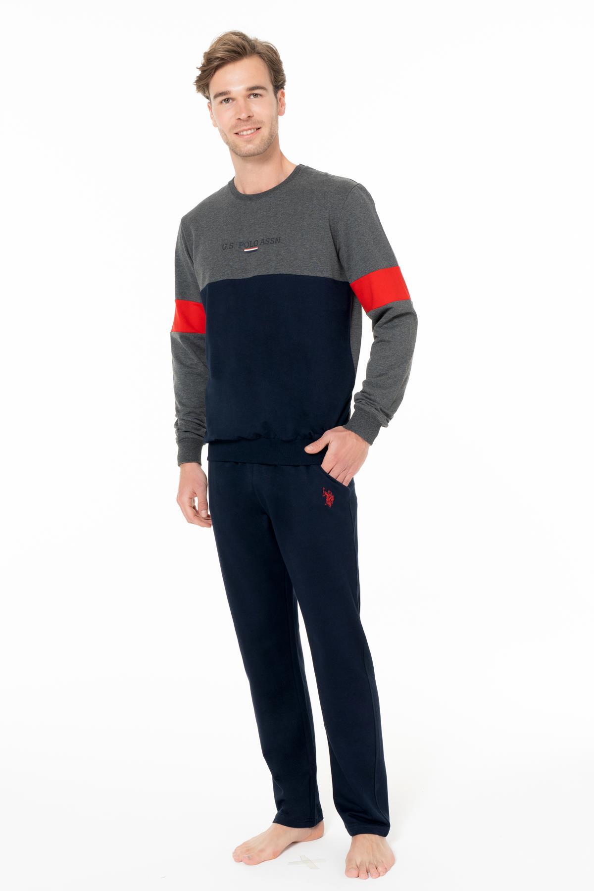 Kadın Kışlık 2 İplik Dokuma USPA Yazılı Ev Giyim Pijama Takım, Kol ve Paça Manşetli, Cepli