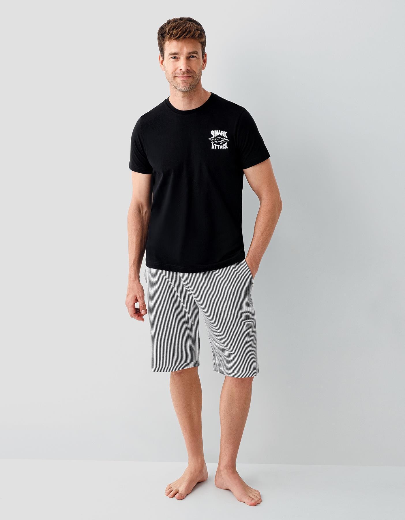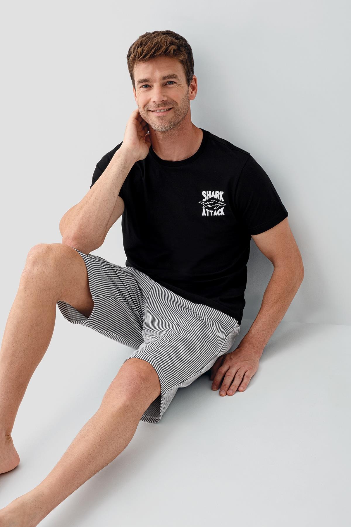 Baba ve oğul için tasarlanan Shark Attack temalı yazlık pijama kombinleriyle ev şıklığını yakalayın. Günlük kullanım ve uyku için ideal olan bu set, modern tasarımı ve rahat kalıbıyla öne çıkar.