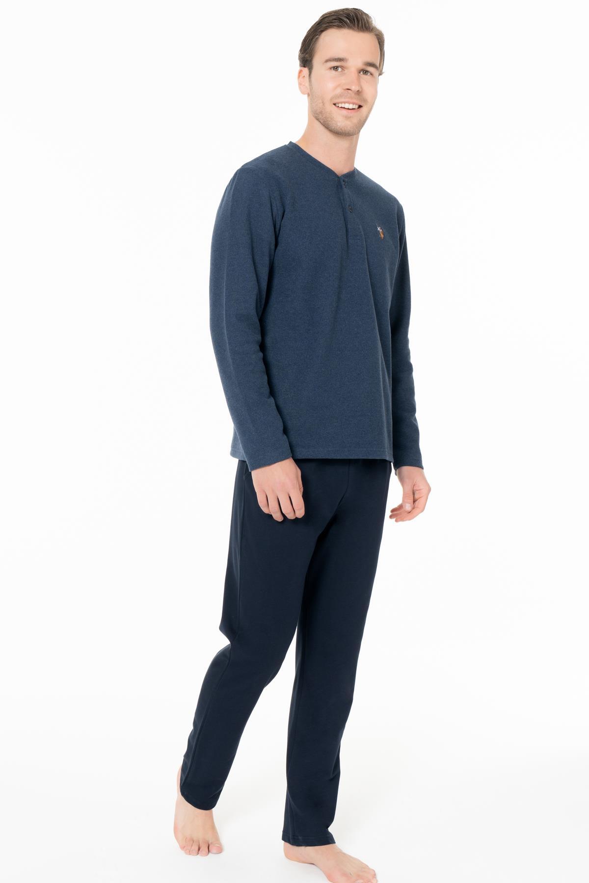 Erkek Düğmeli Yaka Uzunkol Kışlık Pijama Takım
