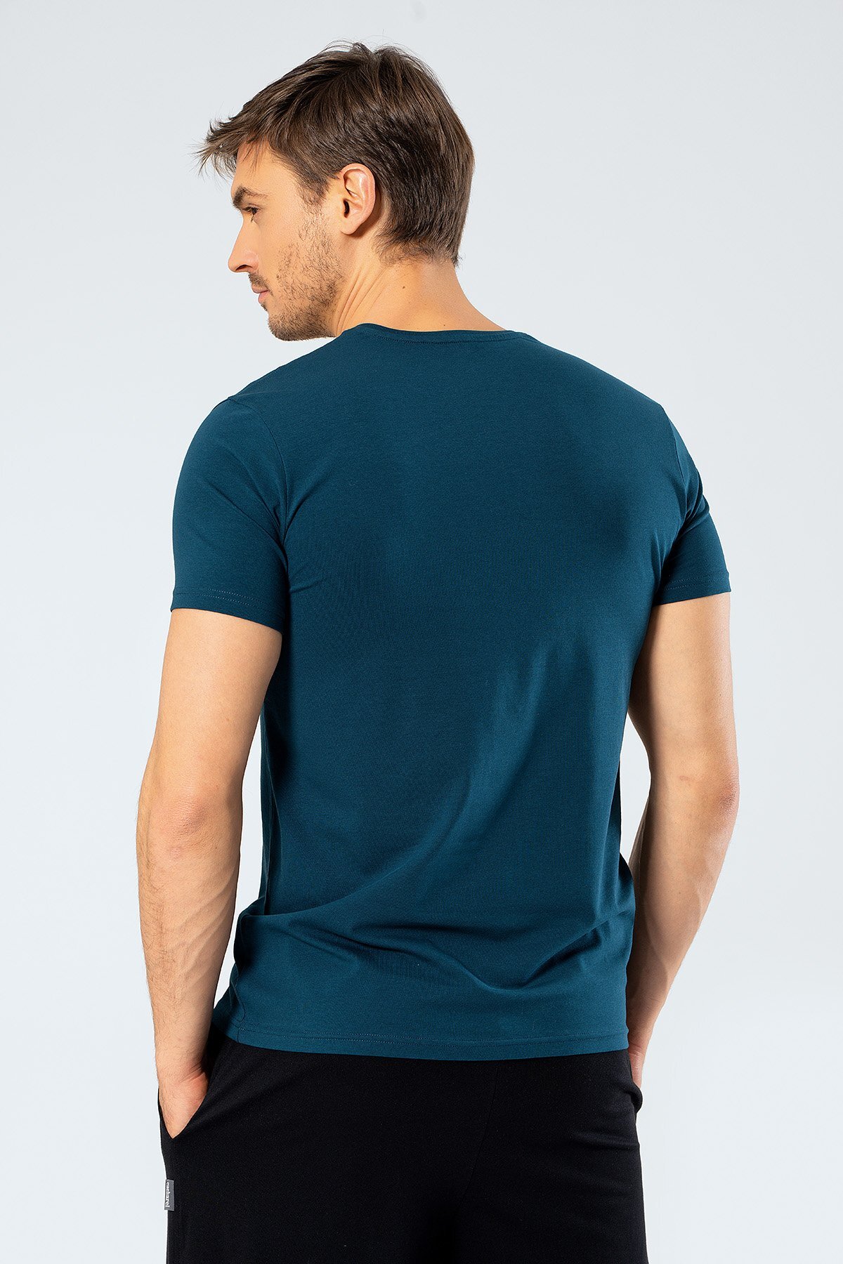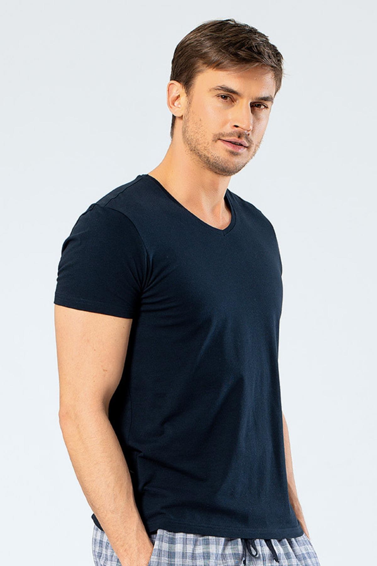 Erkek Pamuklu V Yaka Kısakol T-shirt, %95 Pamuk %5 Likra