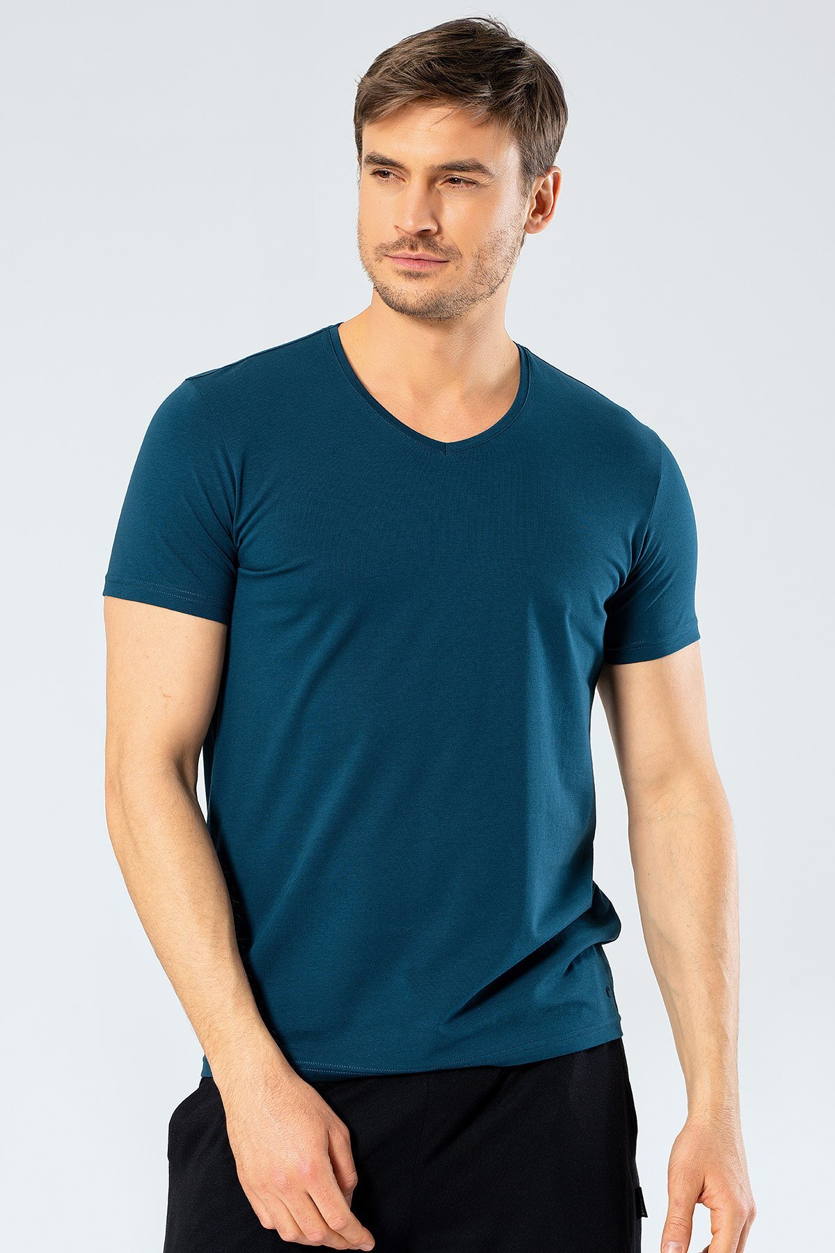 Erkek Kısakol V Yaka T-shirt, %50 Pamuk %50 Modal