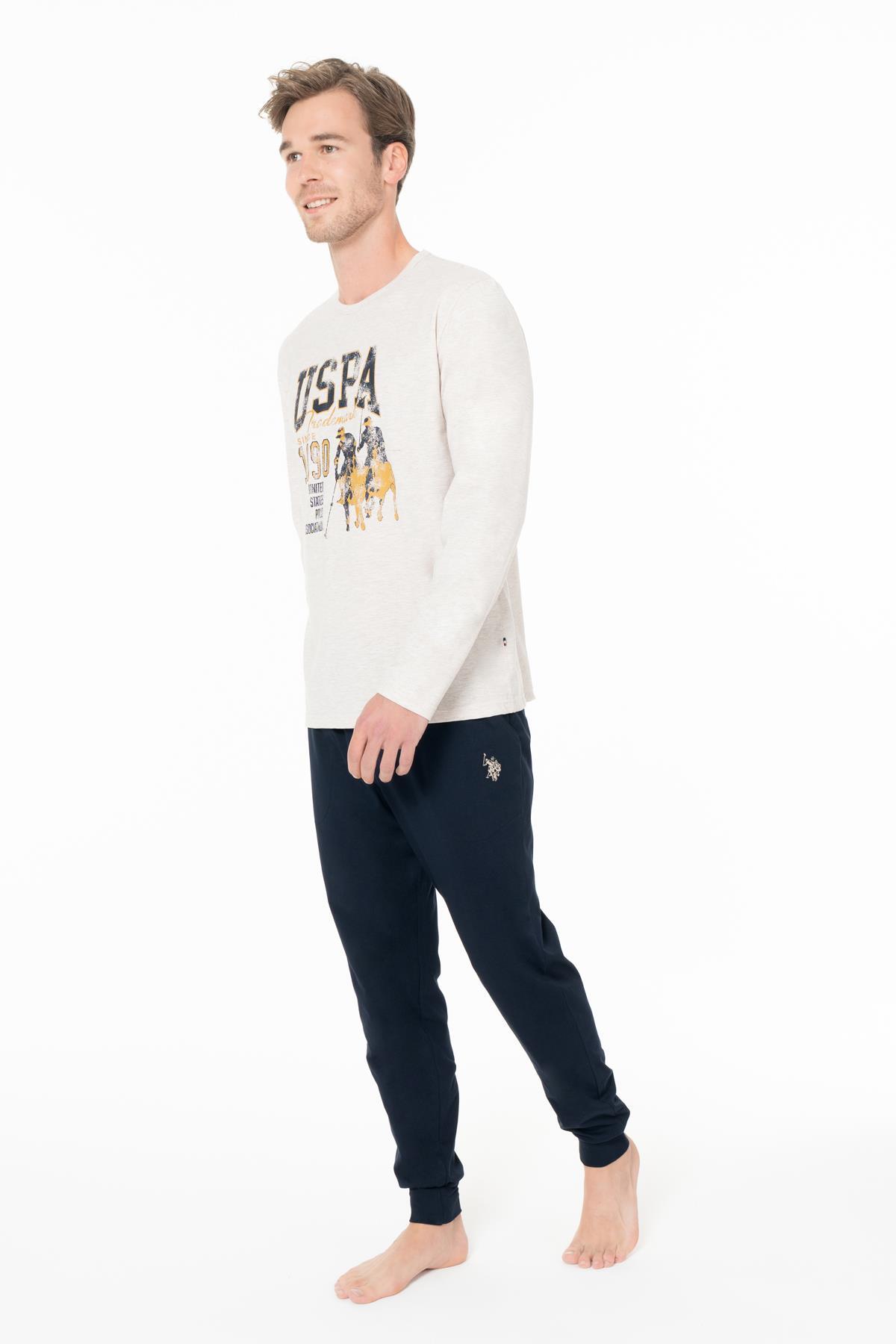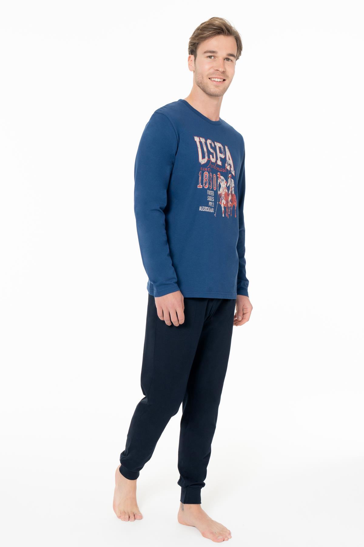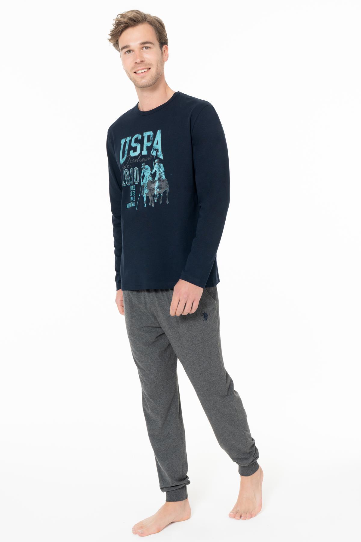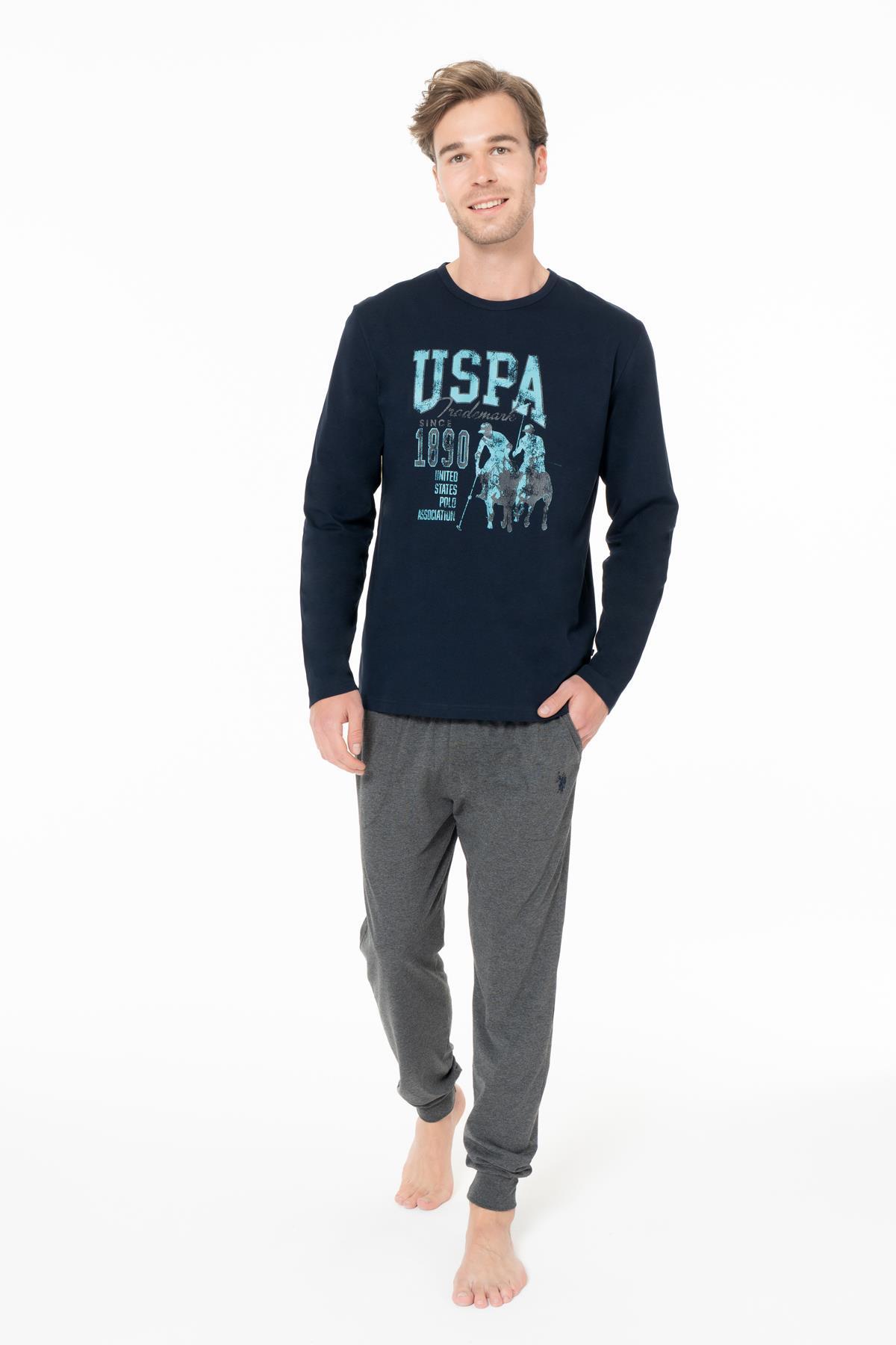 Kadın Kışlık 2 İplik Dokuma USPA Yazılı Ev Giyim Pijama Takım, Kol ve Paça Manşetli, Cepli