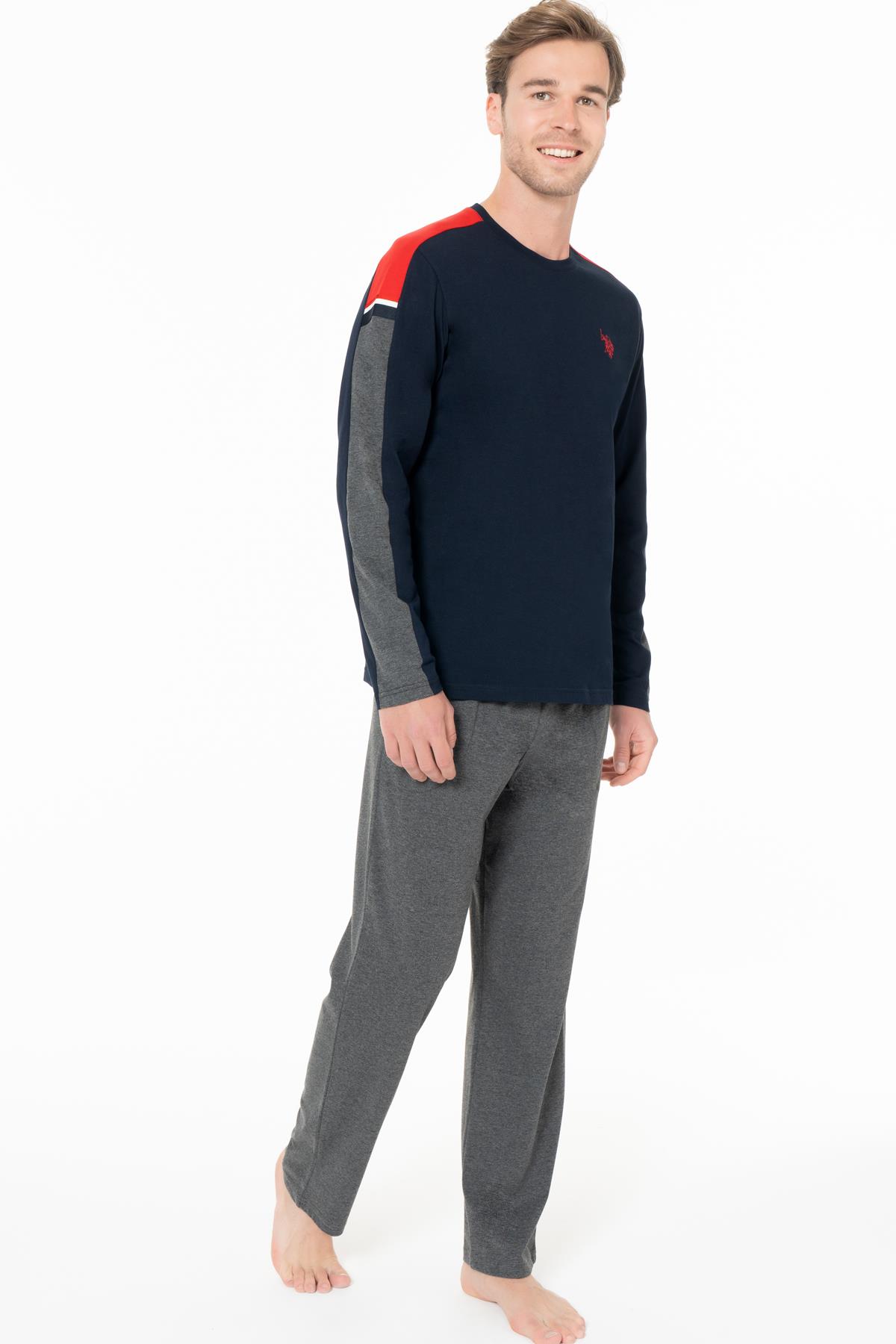 Erkek Penye Mevsimlik Ev Giyim Alt Üst Takım, kırmızı %100 pamuk, antrasit alt %100 pamuk üst %50 pamuk %50 polyamid, lacivert üst %100 pamuk, alt %50 pamuk %50 polyamid
