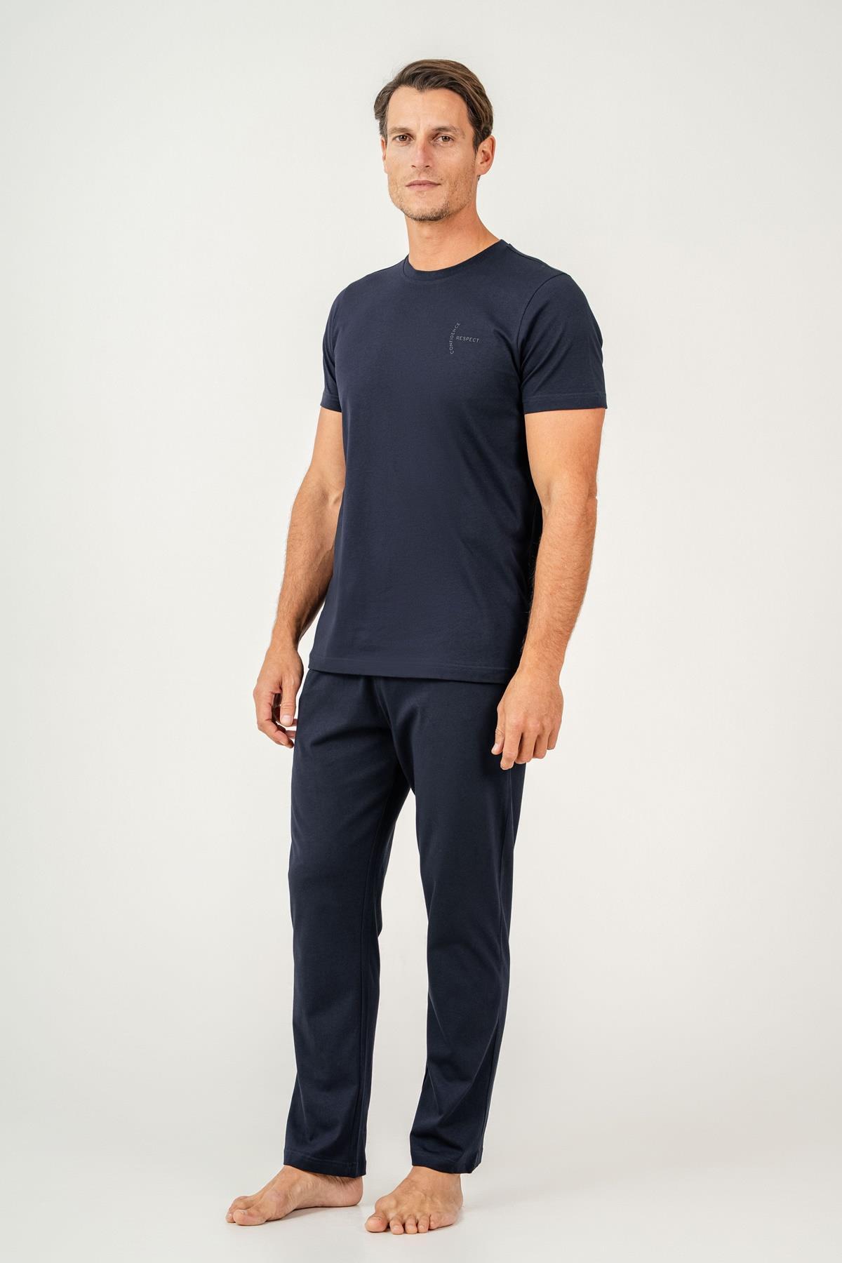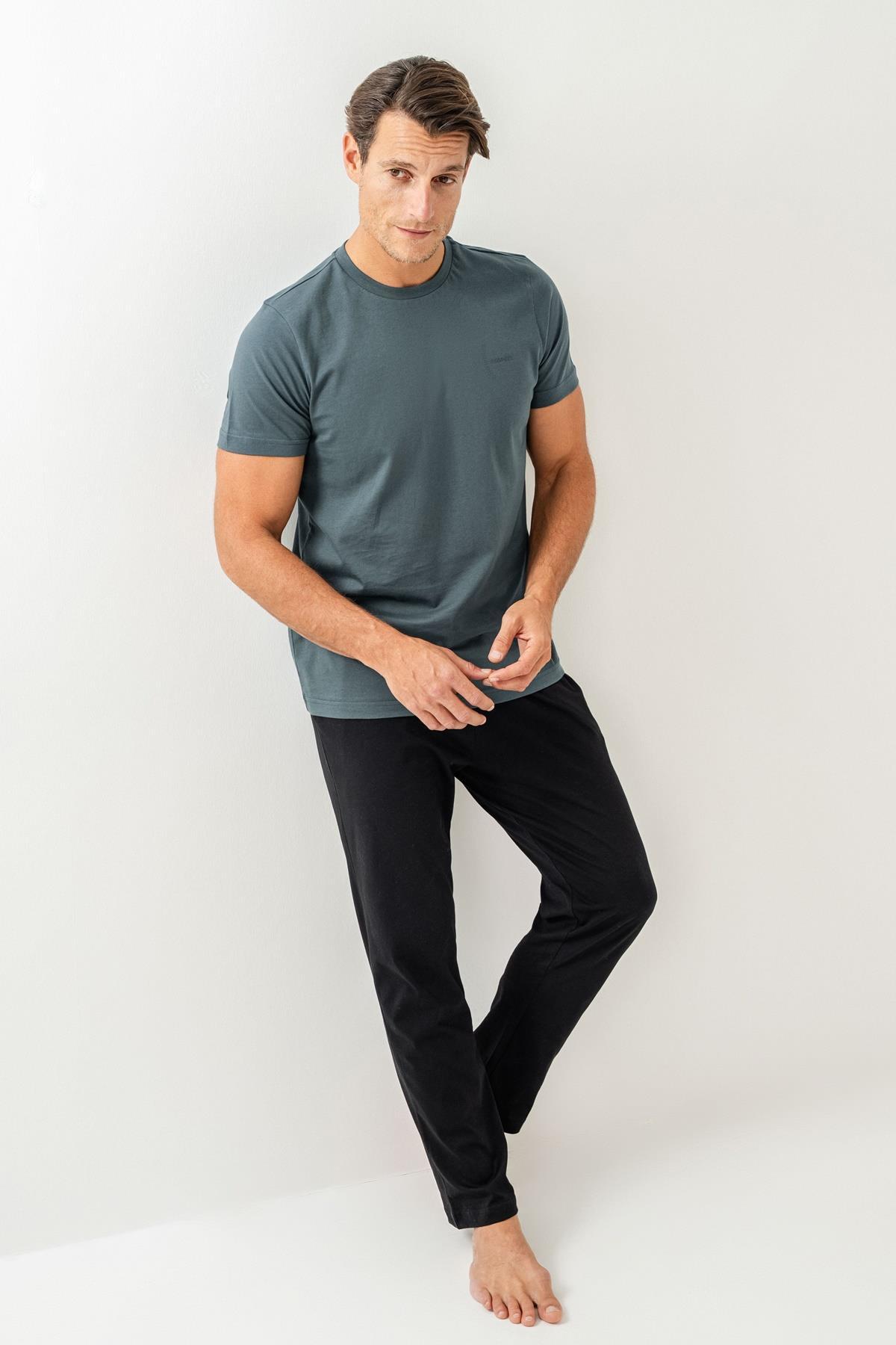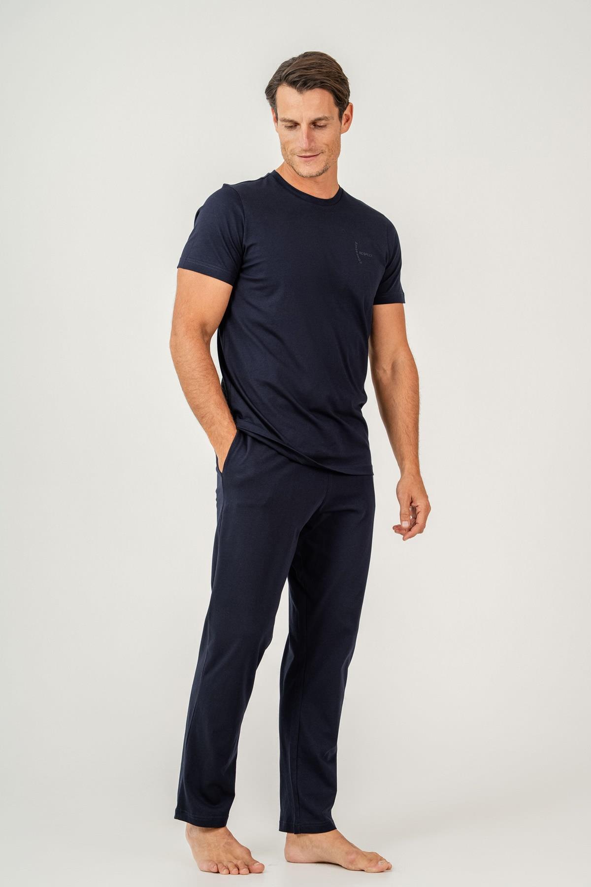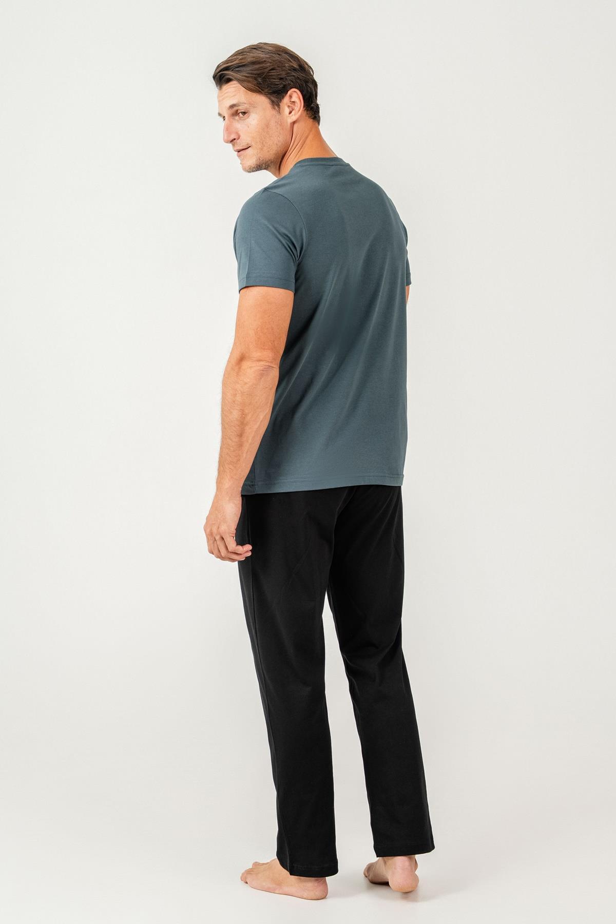 Erkek Pijama Takımı %100 Pamuk – Kısa Kollu Üst & Cepli Uzun Alt Rahat Ev Giyimi