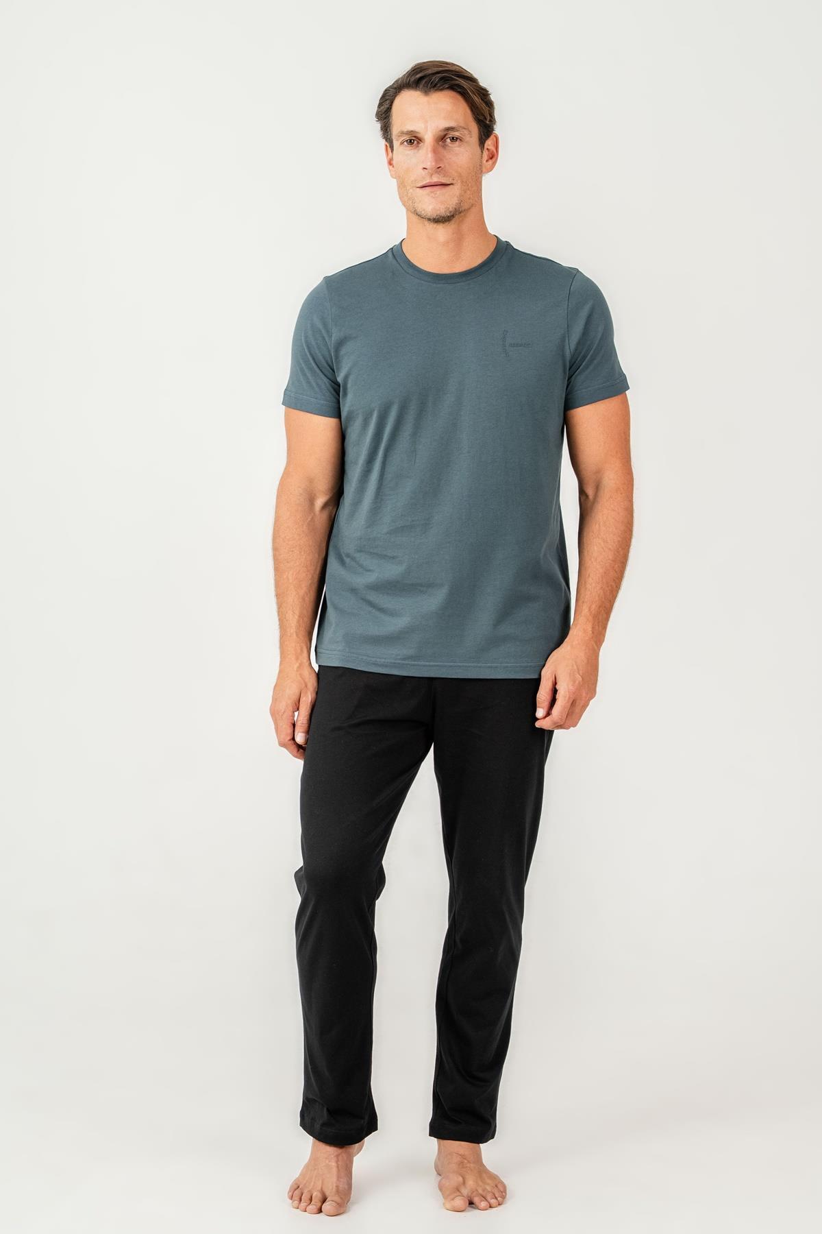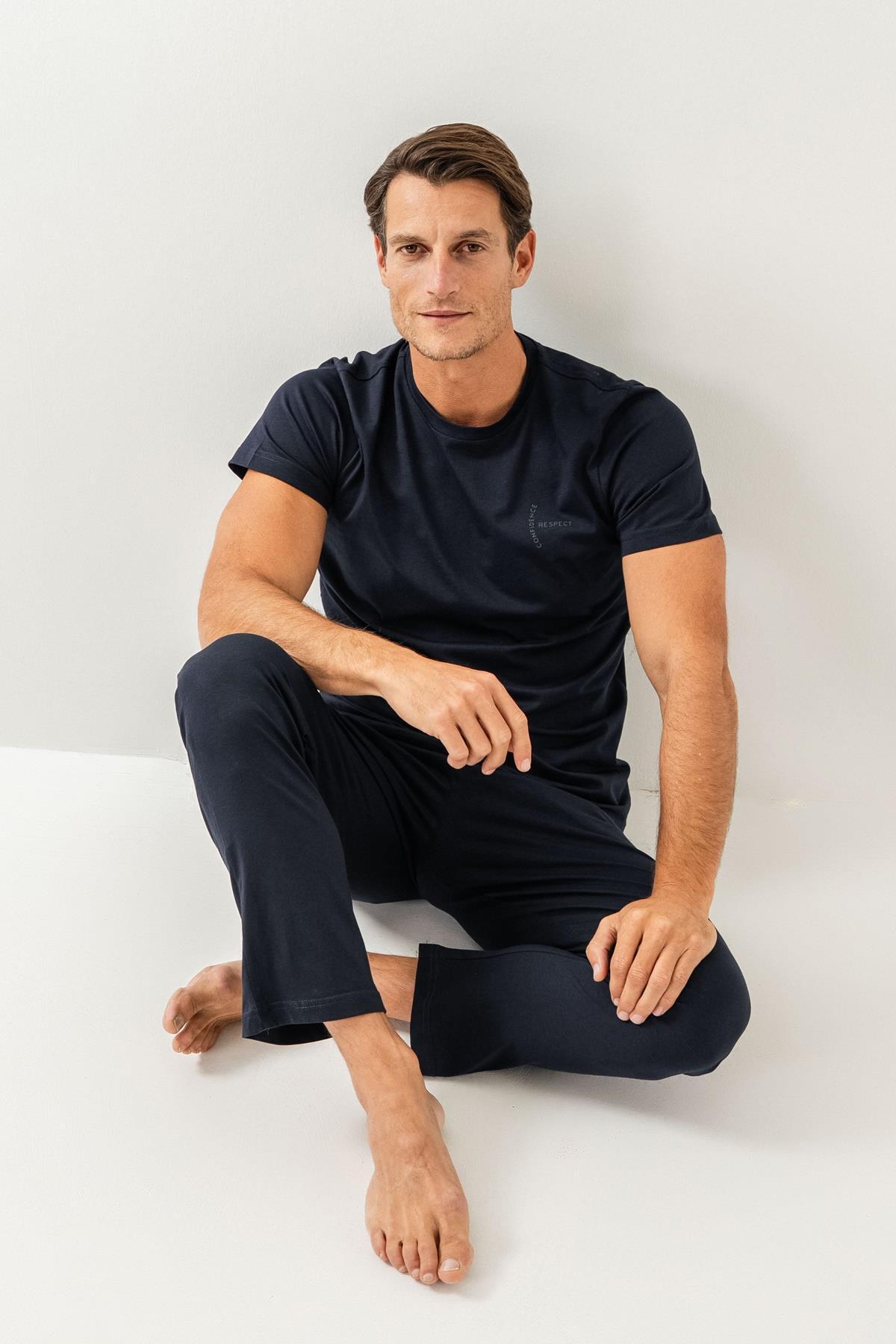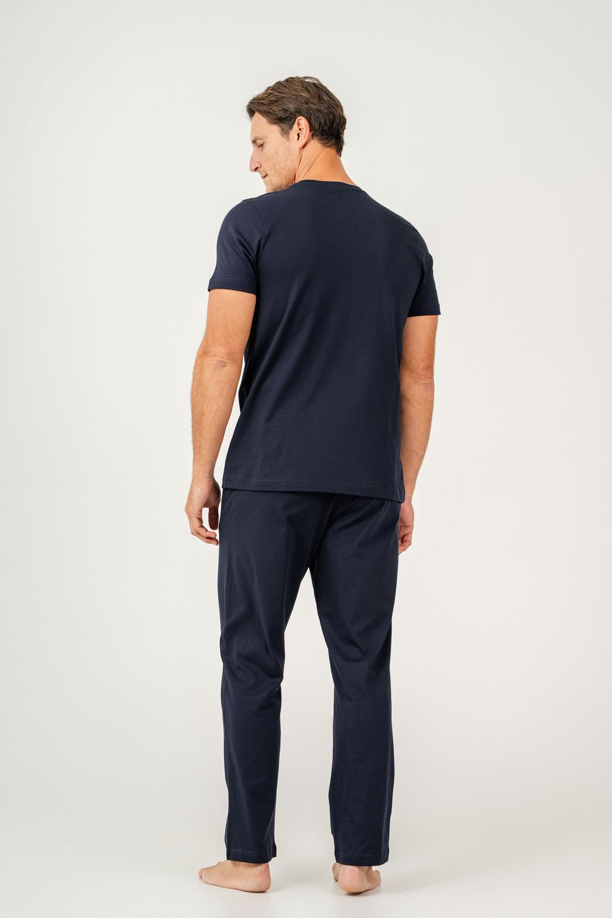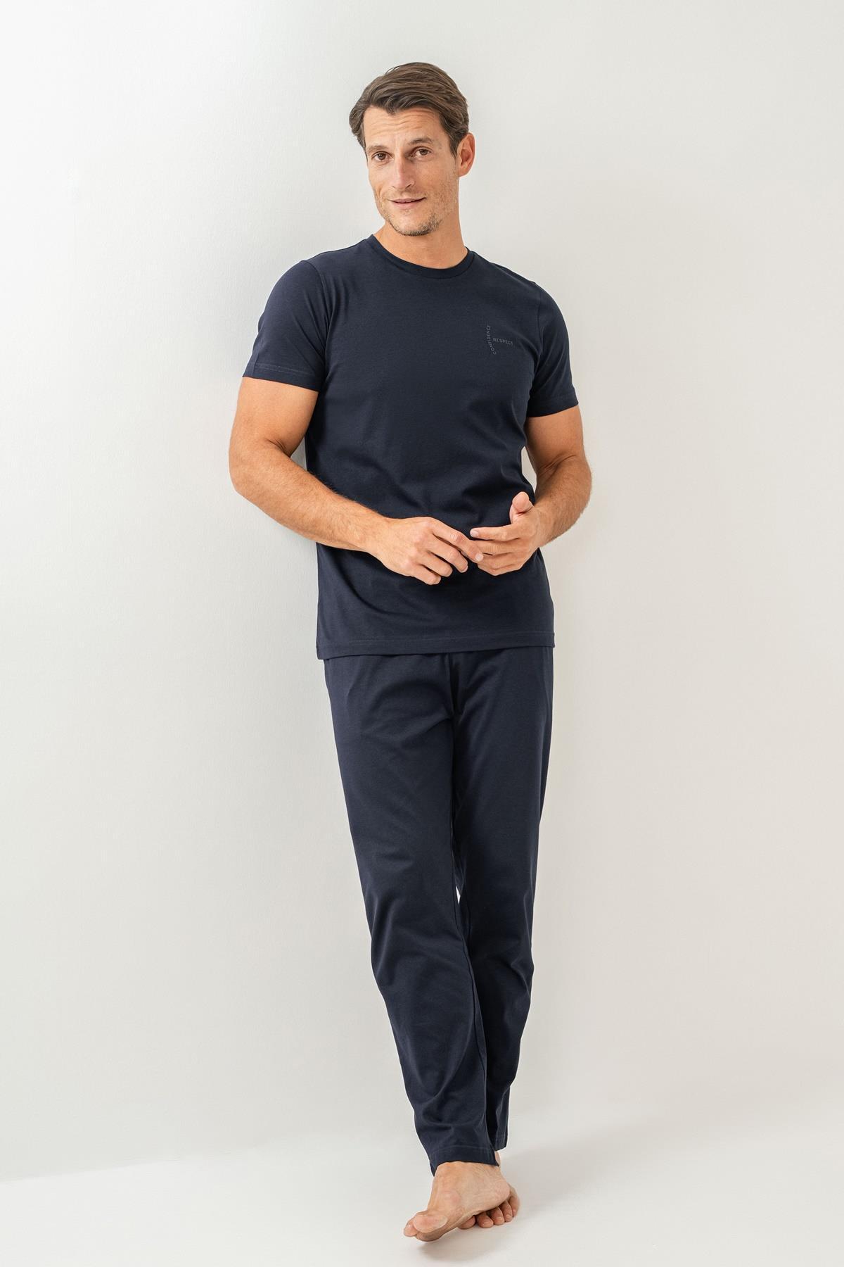 Erkek Pijama Takımı %100 Pamuk – Kısa Kollu Üst & Cepli Uzun Alt Rahat Ev Giyimi