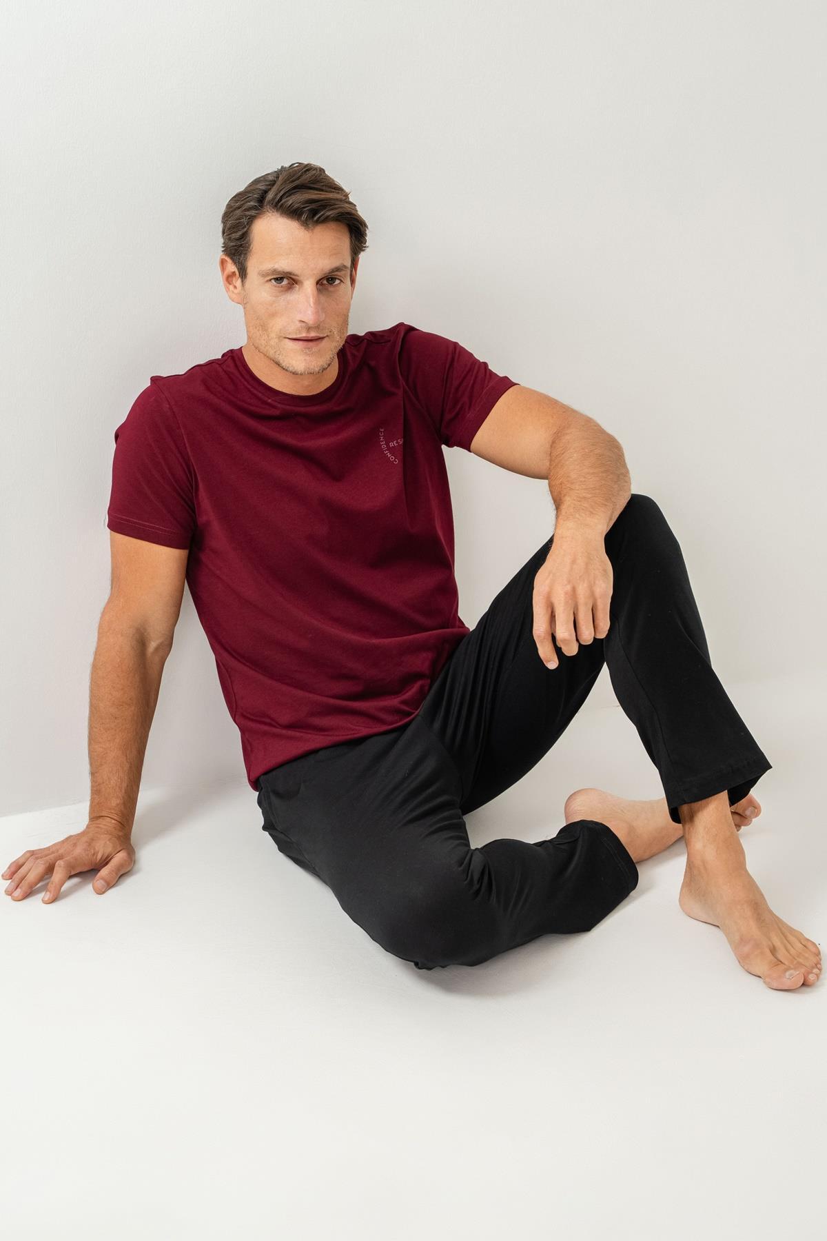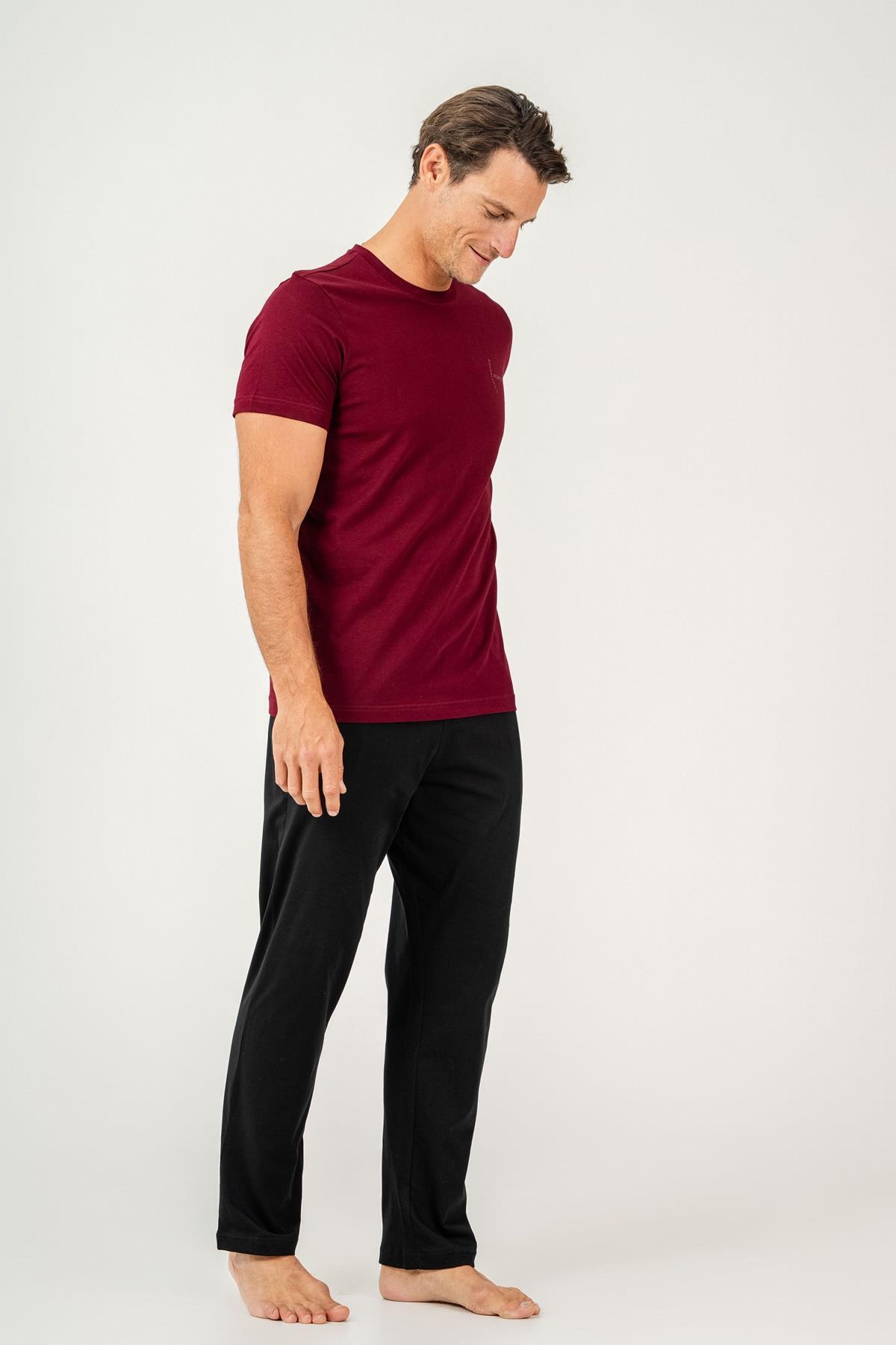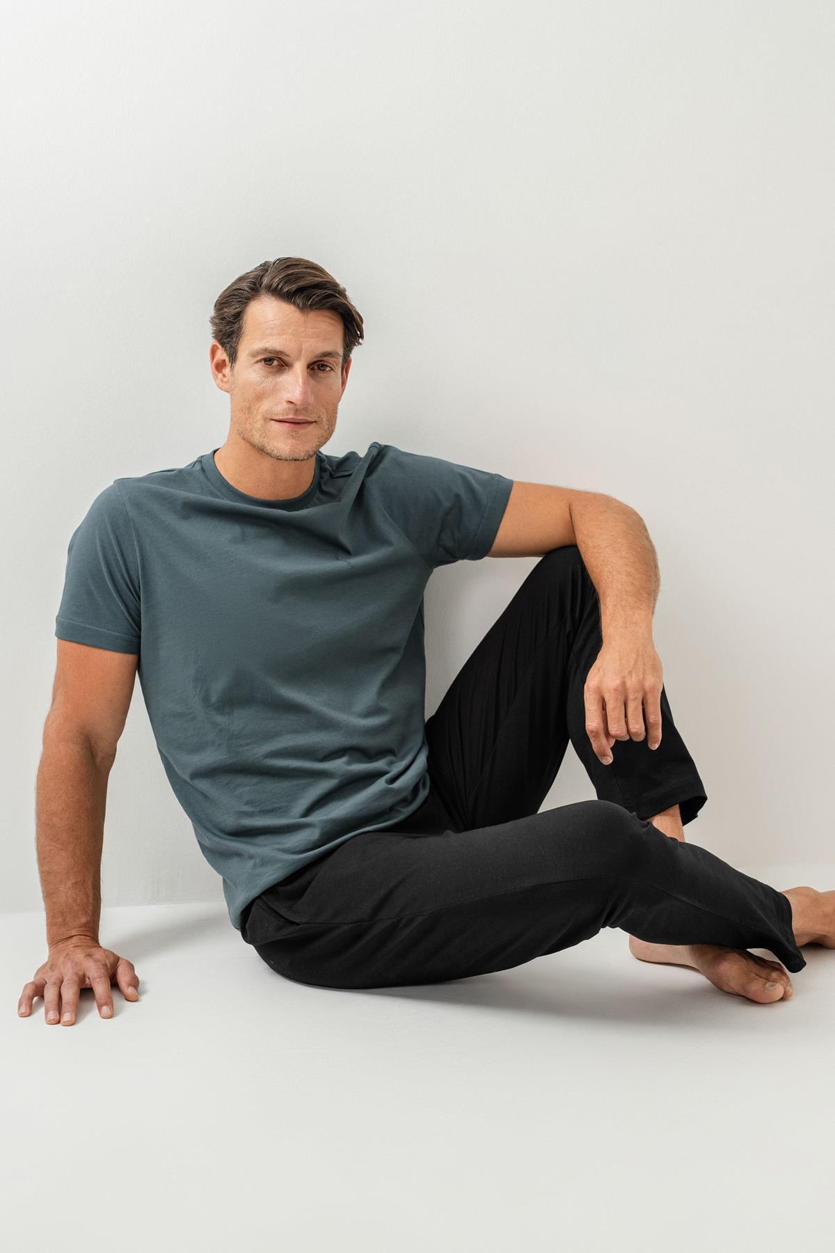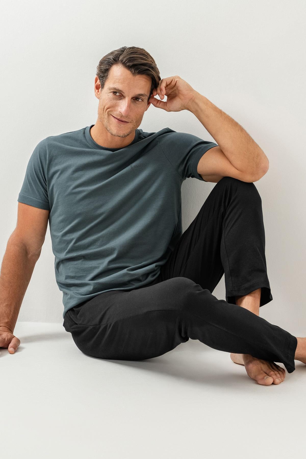 Erkek Pijama Takımı %100 Pamuk – Kısa Kollu Üst & Cepli Uzun Alt Rahat Ev Giyimi