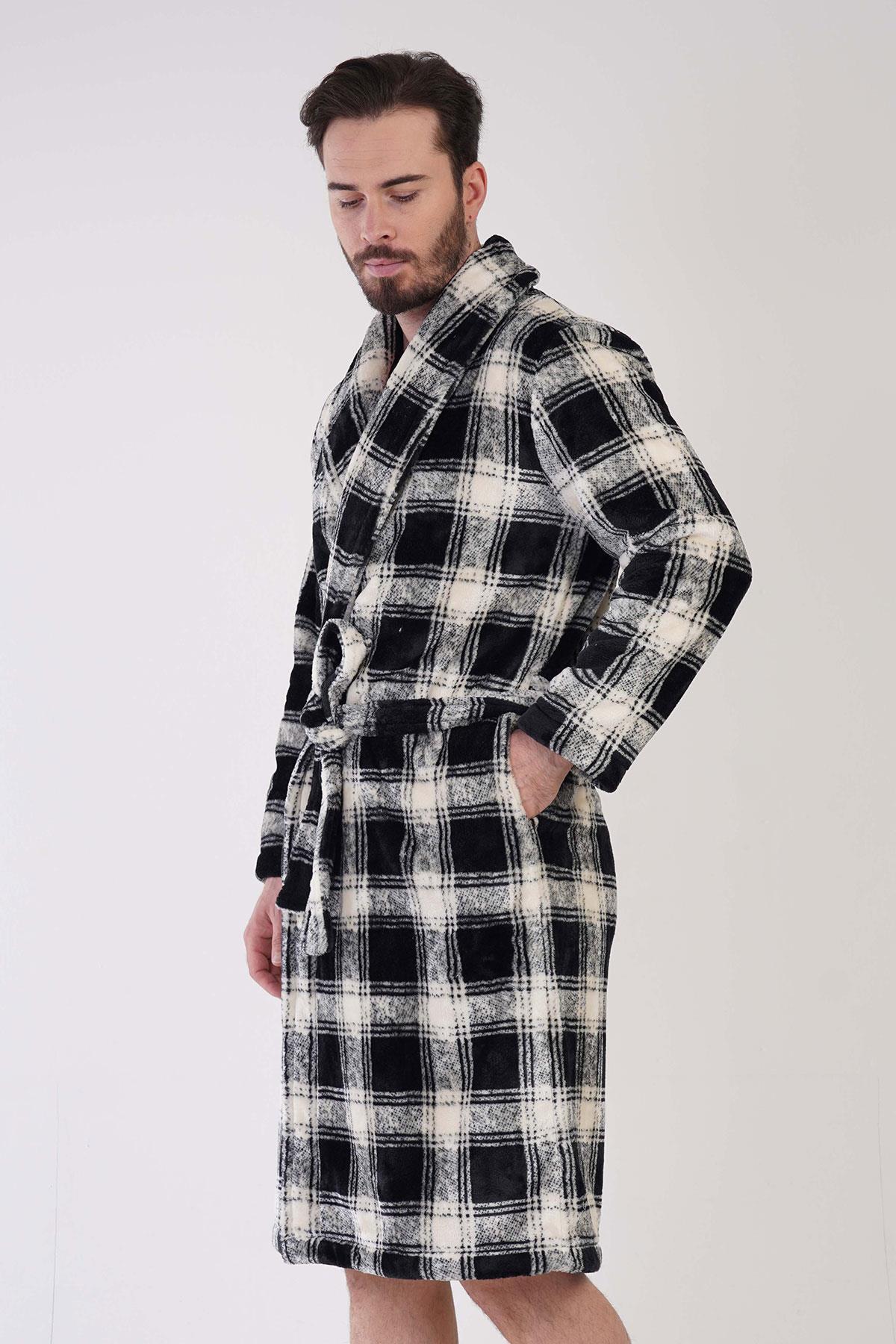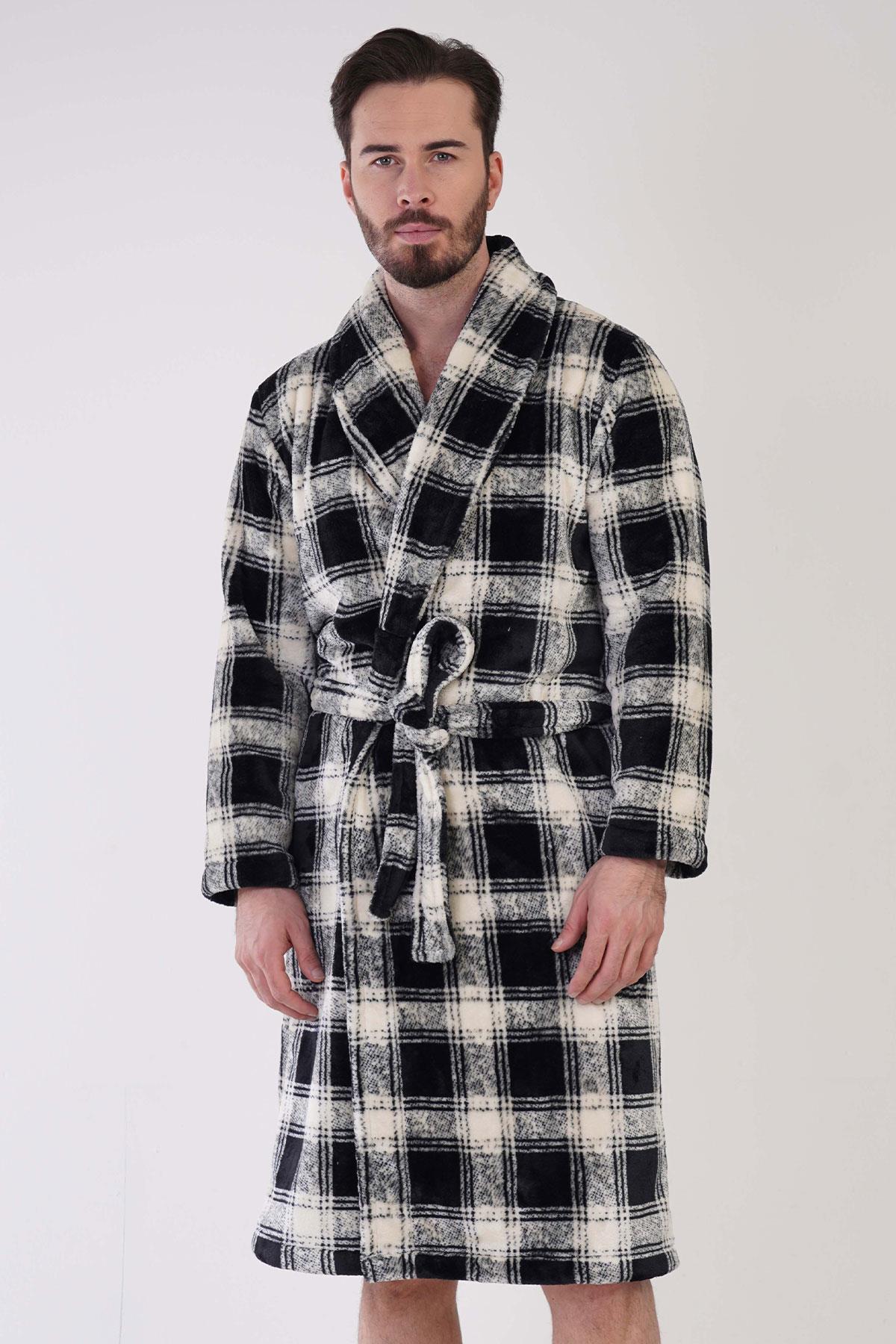 Erkek Süper Yumuşak Ekoseli Vienetta Welsoft Şal Yaka Uzun Kol Cepli Polar Sabahlık